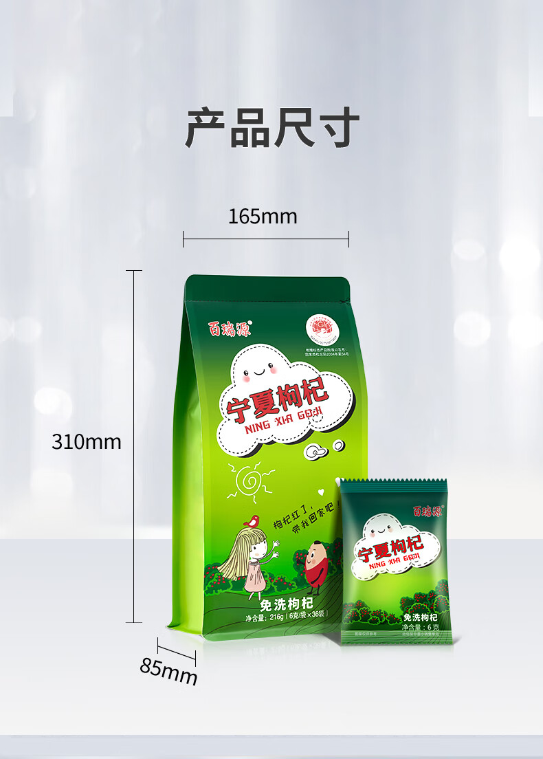 百瑞源枸杞 宁夏枸杞 特级优枸杞子中宁红枸杞216g*2袋 年货节过年礼品