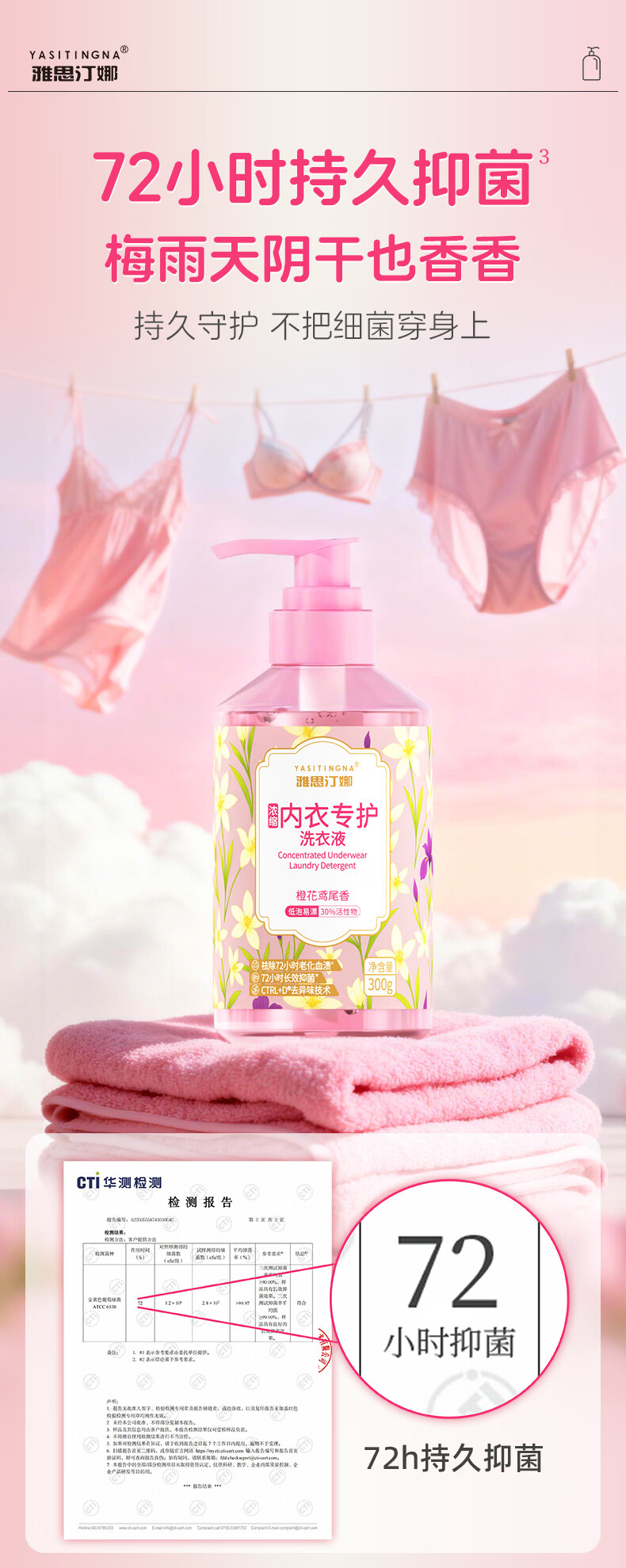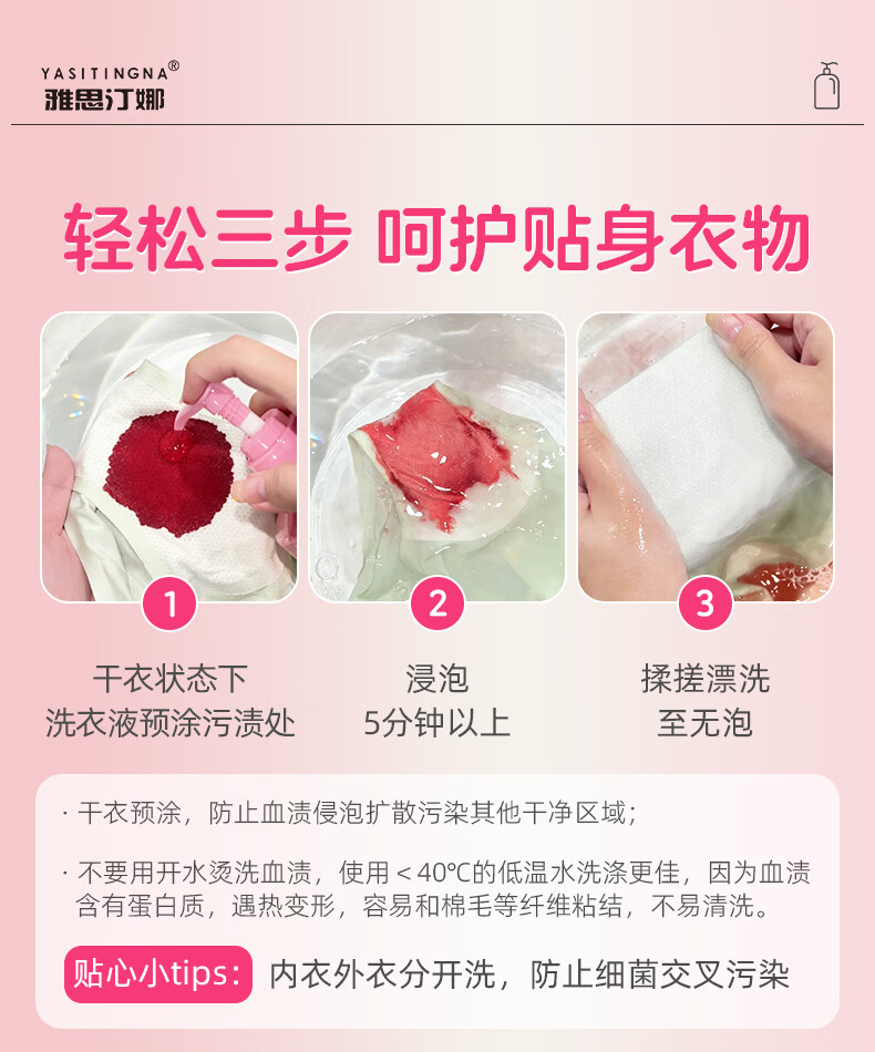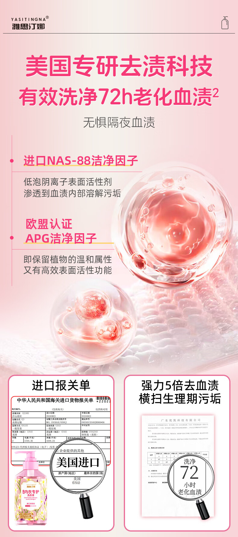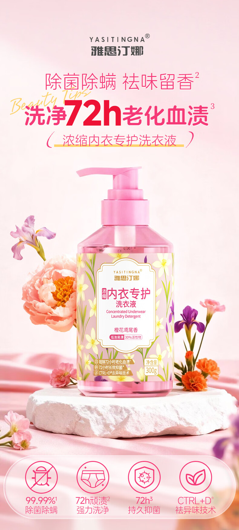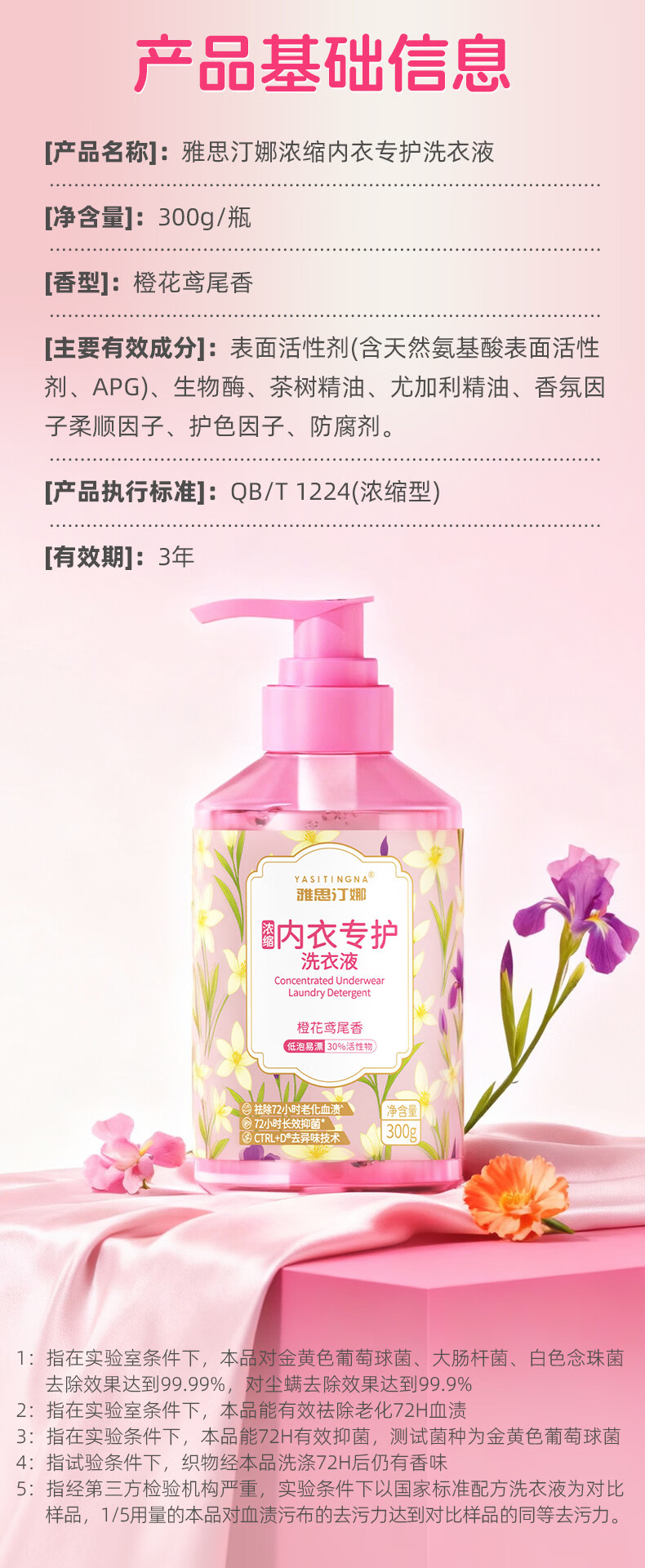 雅思汀娜内衣裤洗衣液洗净老化血渍祛味留香持久抑菌洗内衣裤专用液 300g*1瓶【洗净72H血渍】