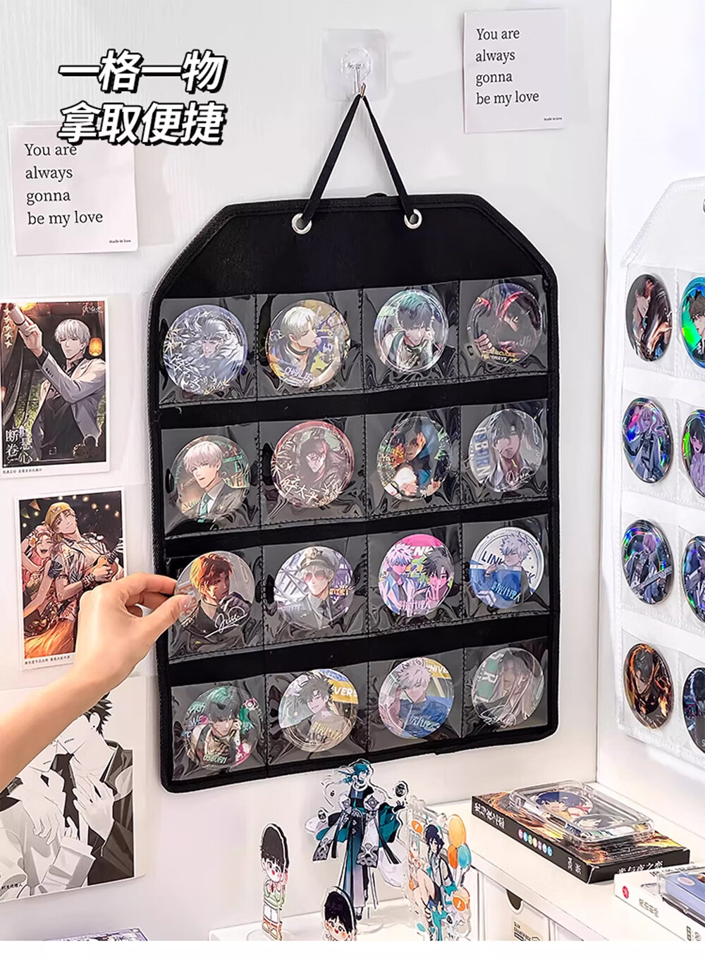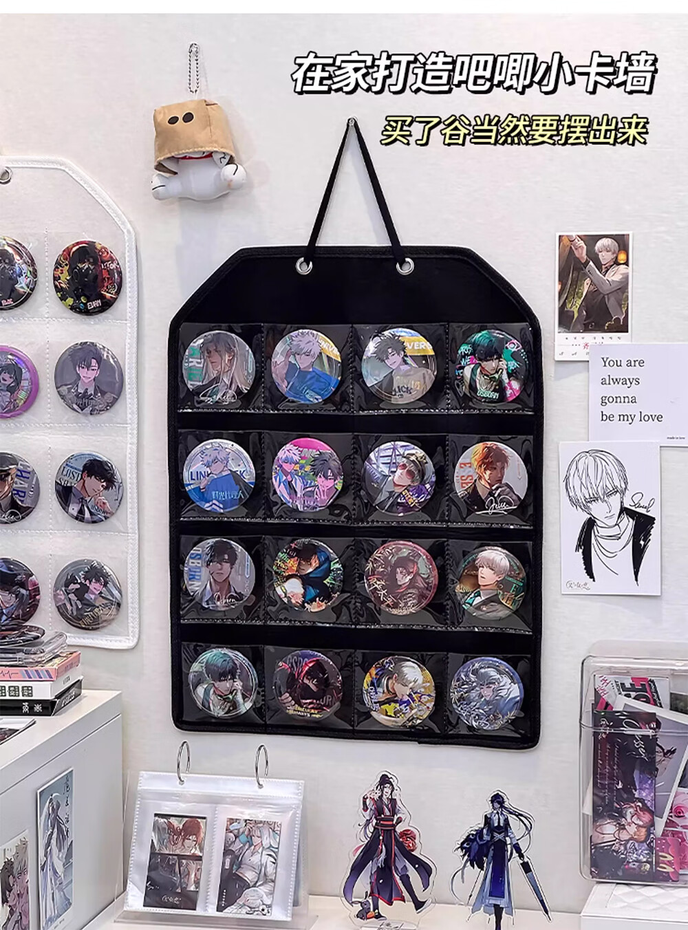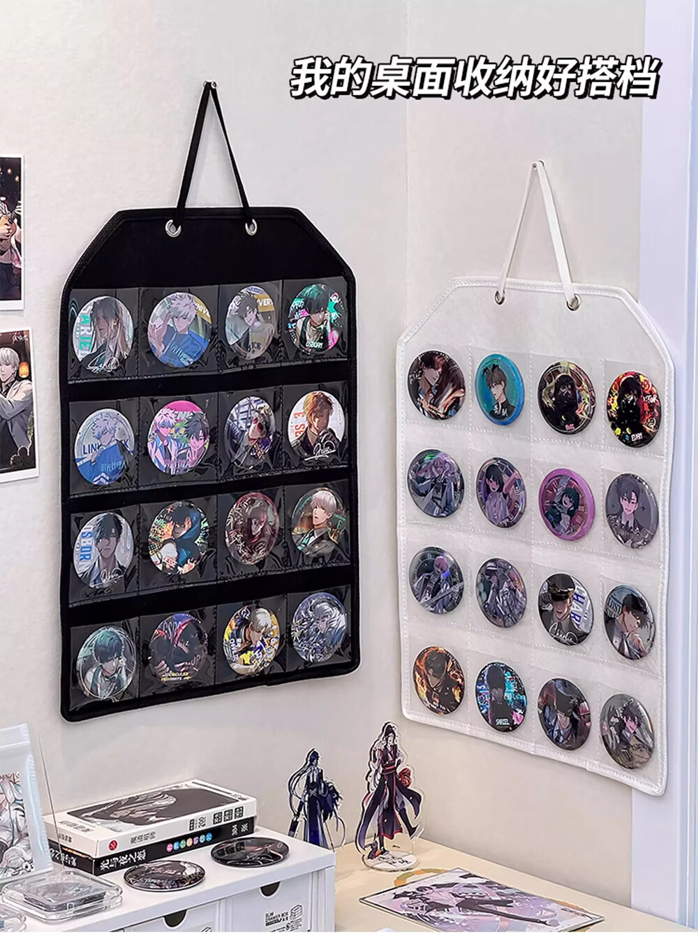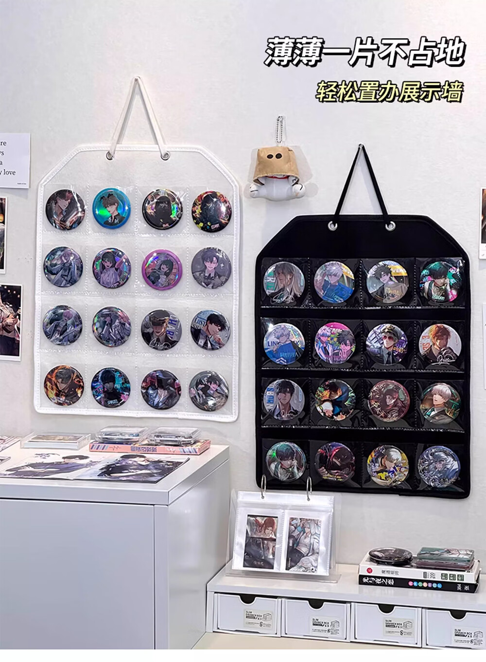 吧唧展示架壁挂式防尘挂墙谷美卡片小马宝利徽章谷子分格收纳挂袋 米白16格毛毡展示挂袋