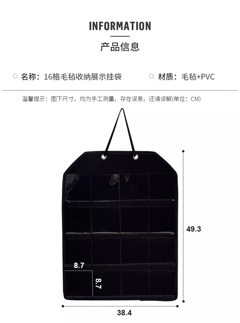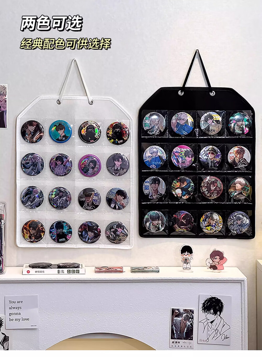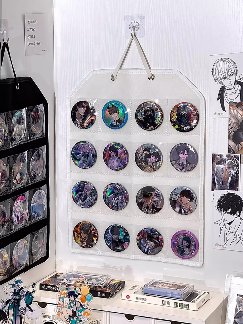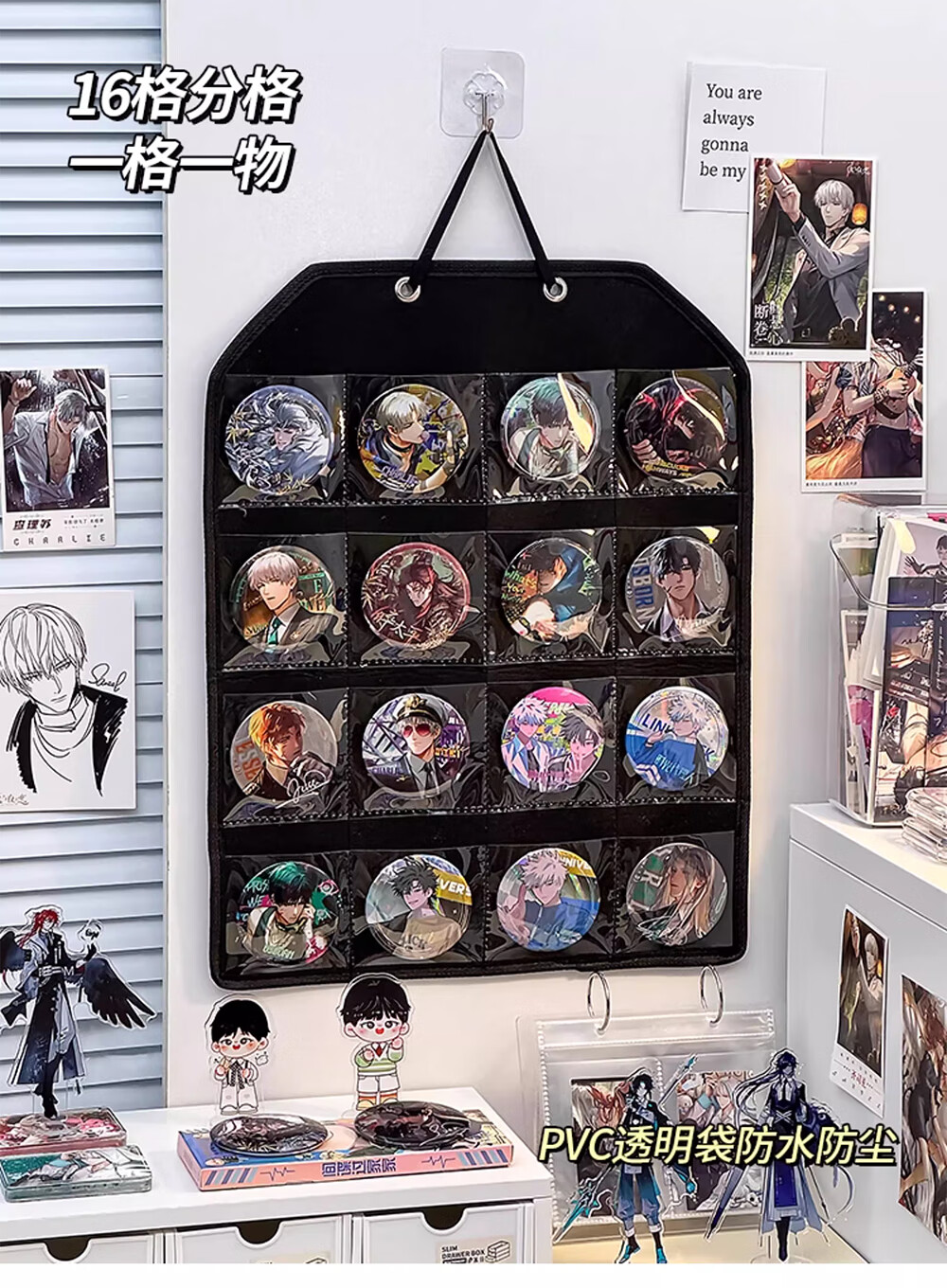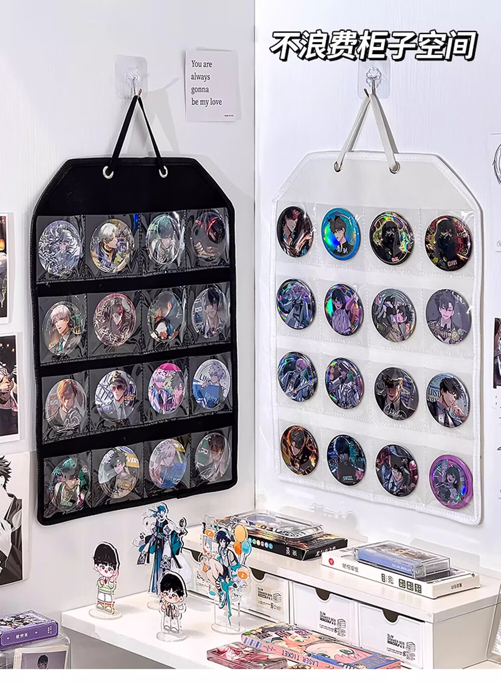 吧唧展示架壁挂式防尘挂墙谷美卡片小马宝利徽章谷子分格收纳挂袋 米白16格毛毡展示挂袋