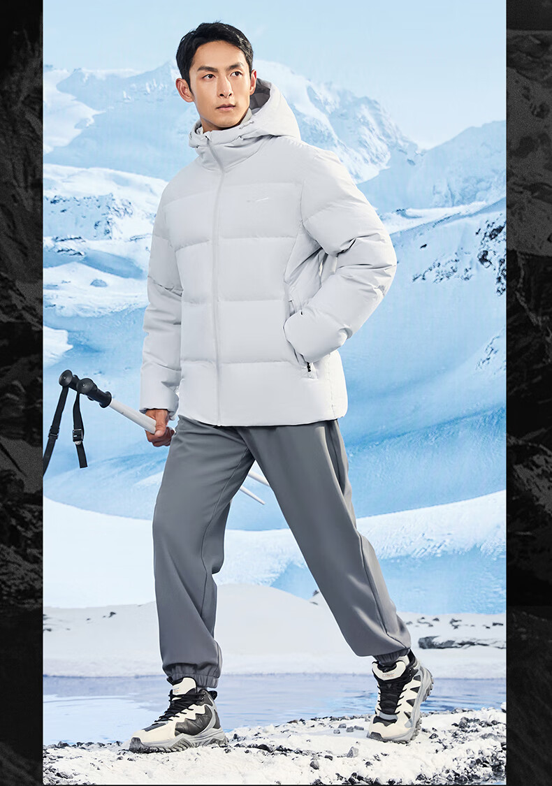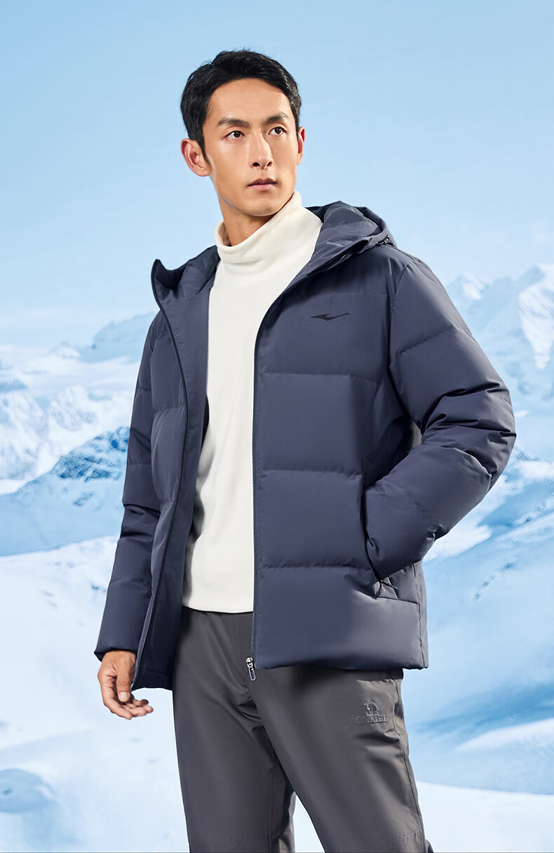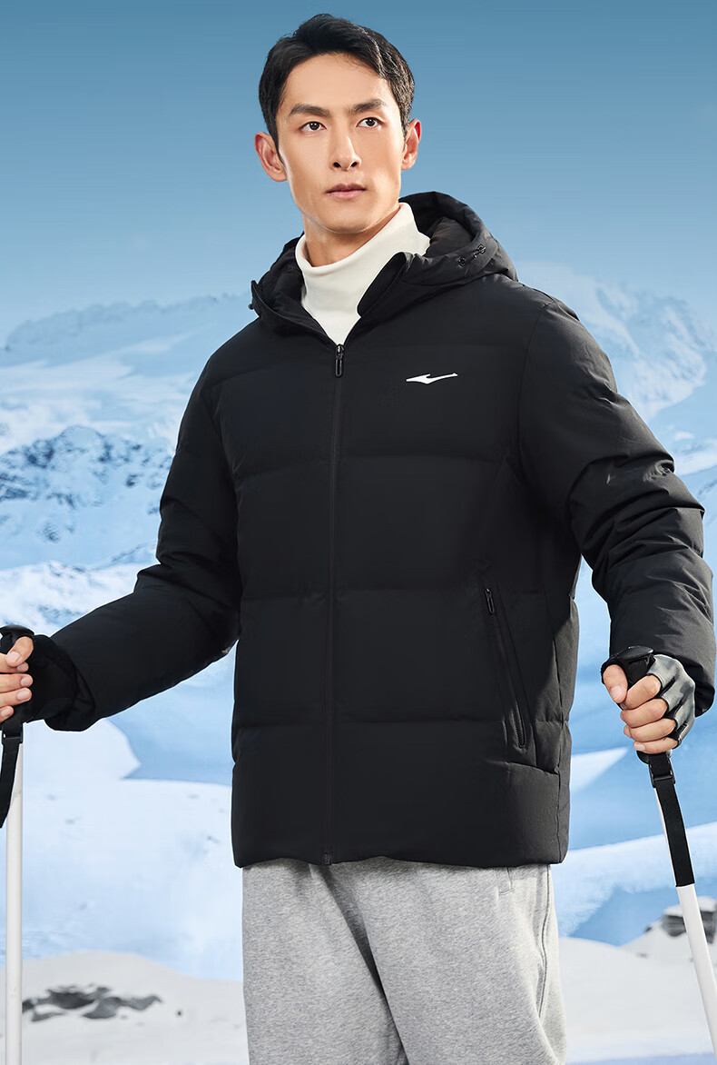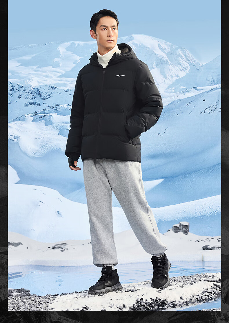 鸿星尔克羽绒服男冬季加厚保暖防泼水科技连帽外套通勤时尚泡芙面包服上衣