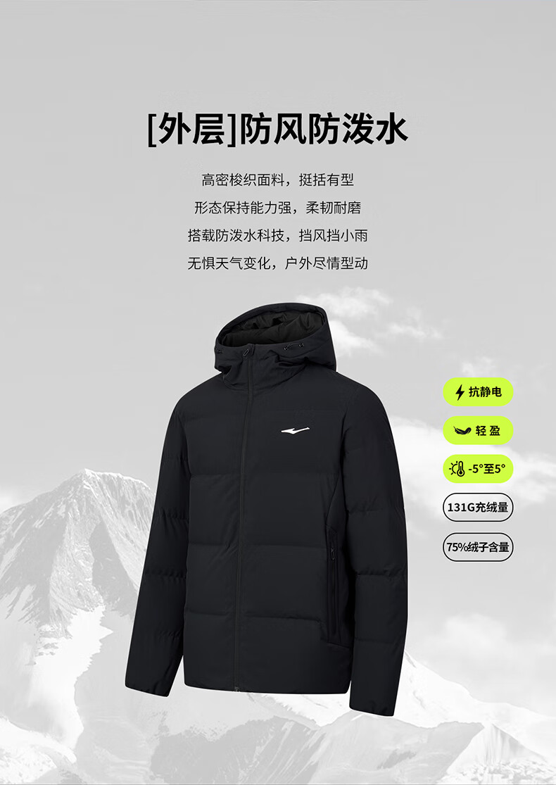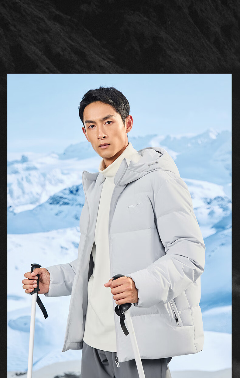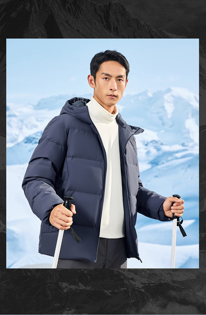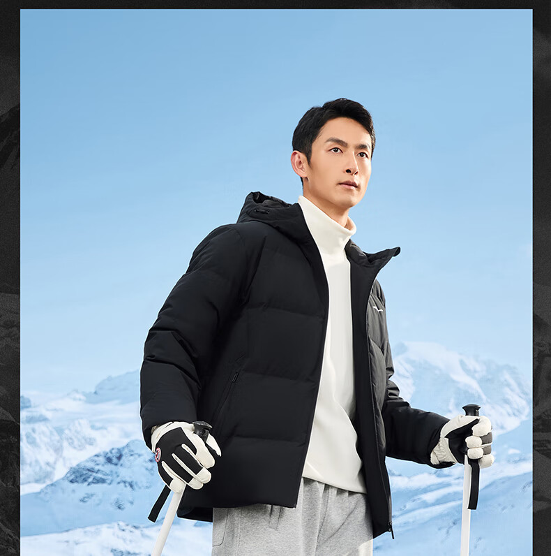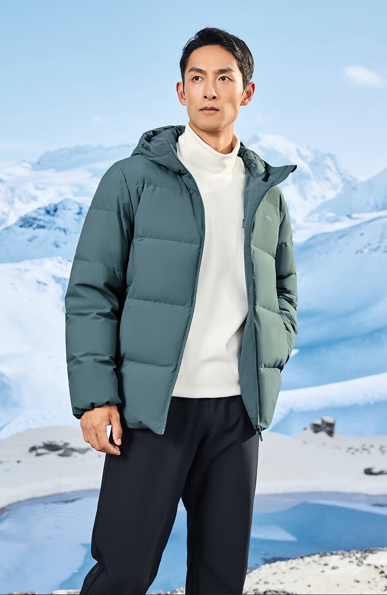 鸿星尔克羽绒服男冬季加厚保暖防泼水科技连帽外套通勤时尚泡芙面包服上衣