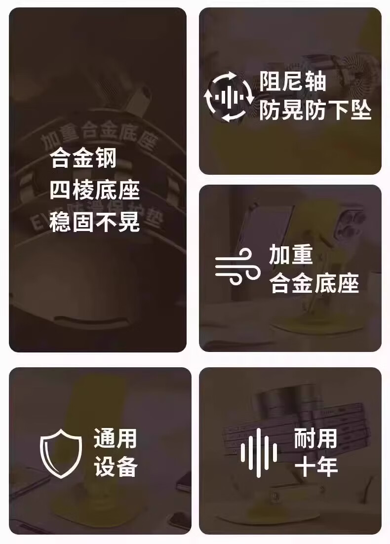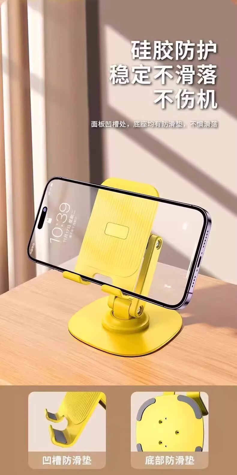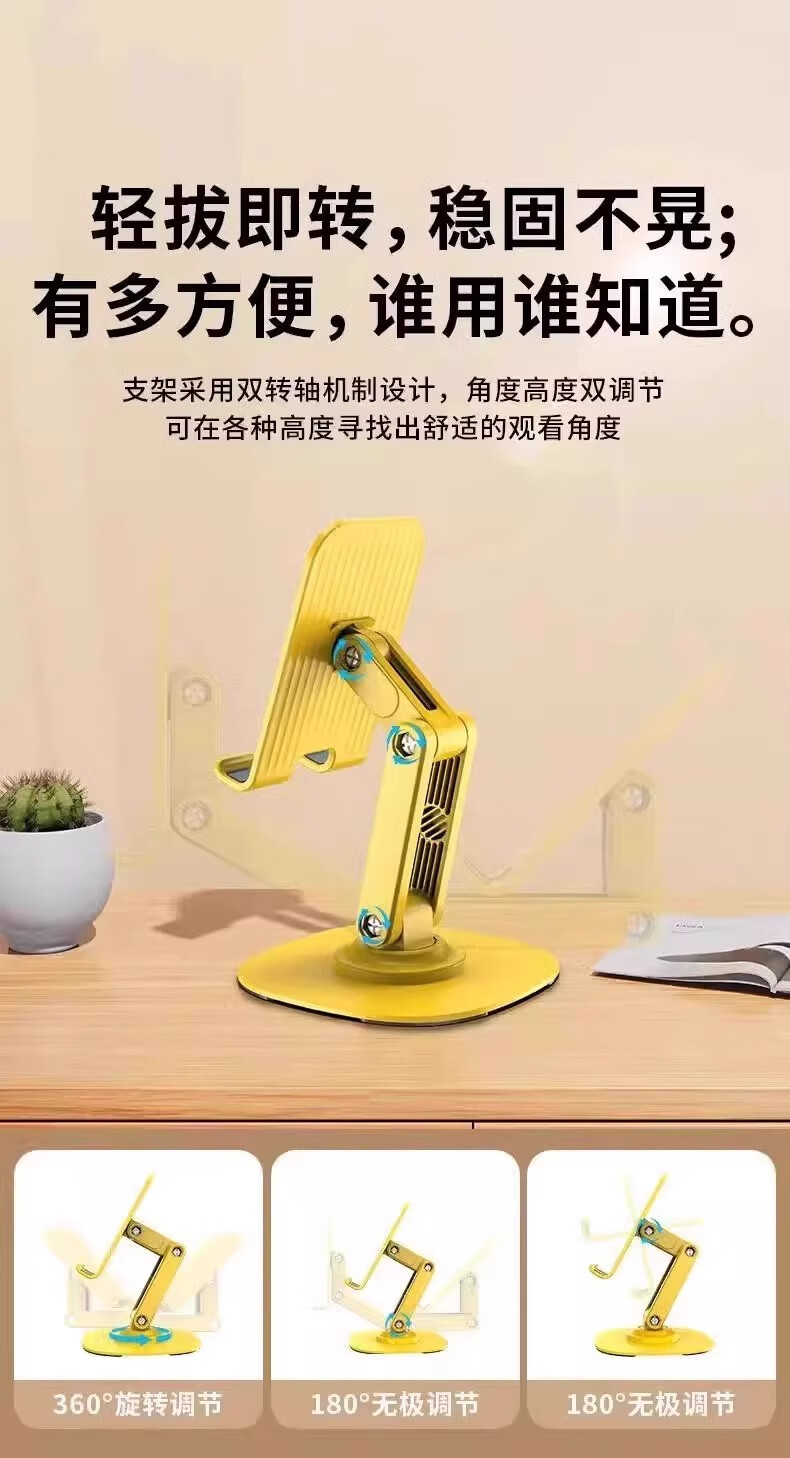 360°旋转手机支架桌面金属升降平板支架直播懒人双轴多功能便携可折叠可调节iPad支架网课神器 【1个装】黄色