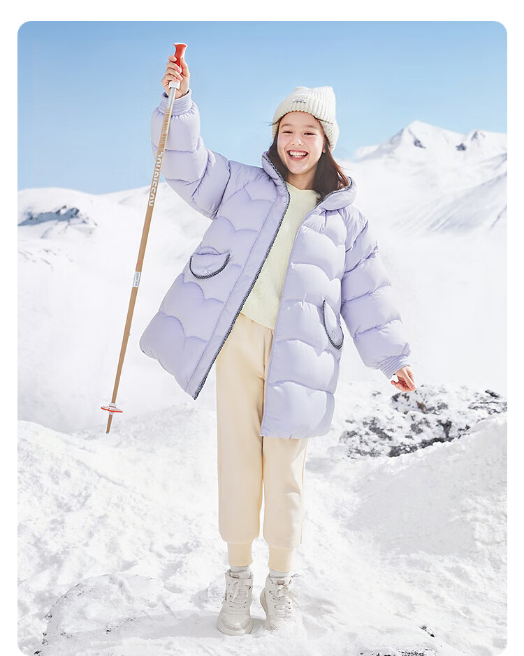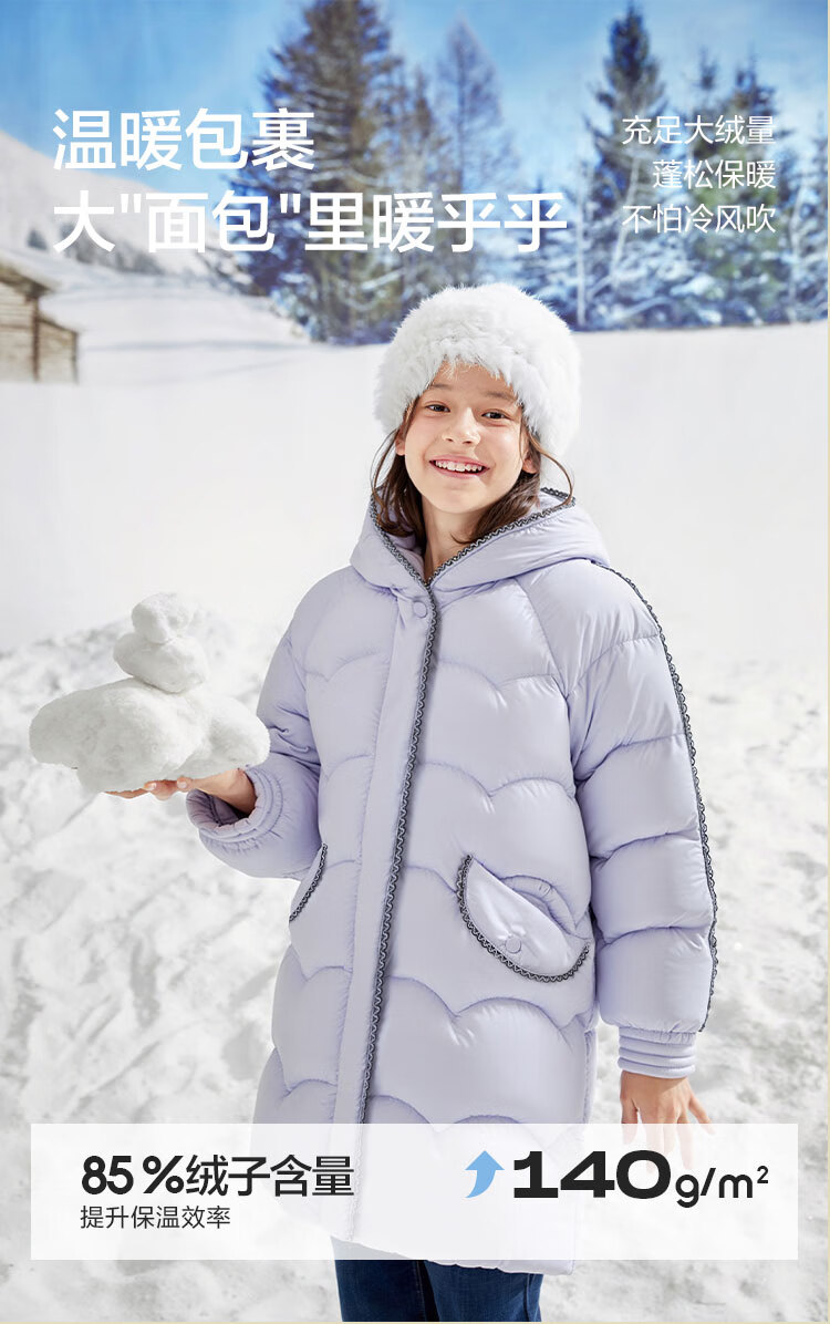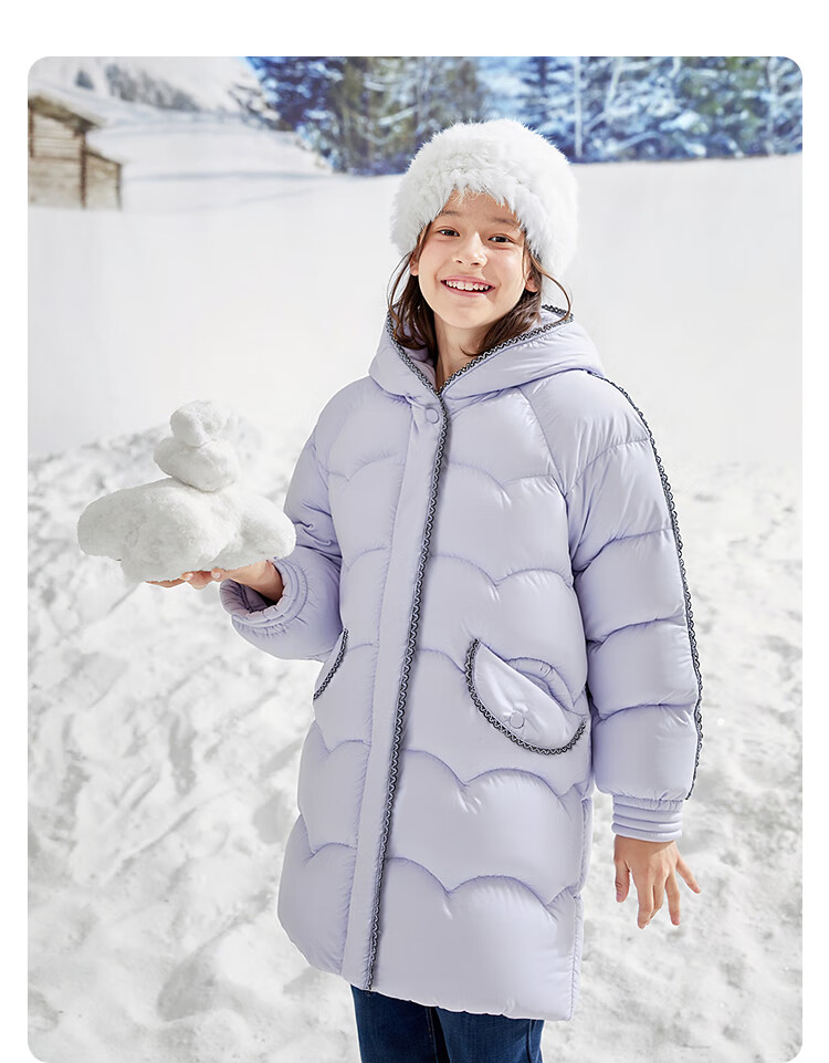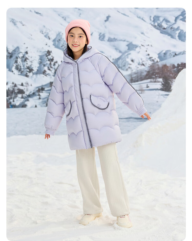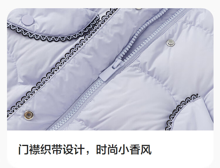 巴拉巴拉balaOne儿童羽绒服女童防风保暖冬连帽小香风上衣2025新 紫色调00377-白鸭绒 -208425107010 150