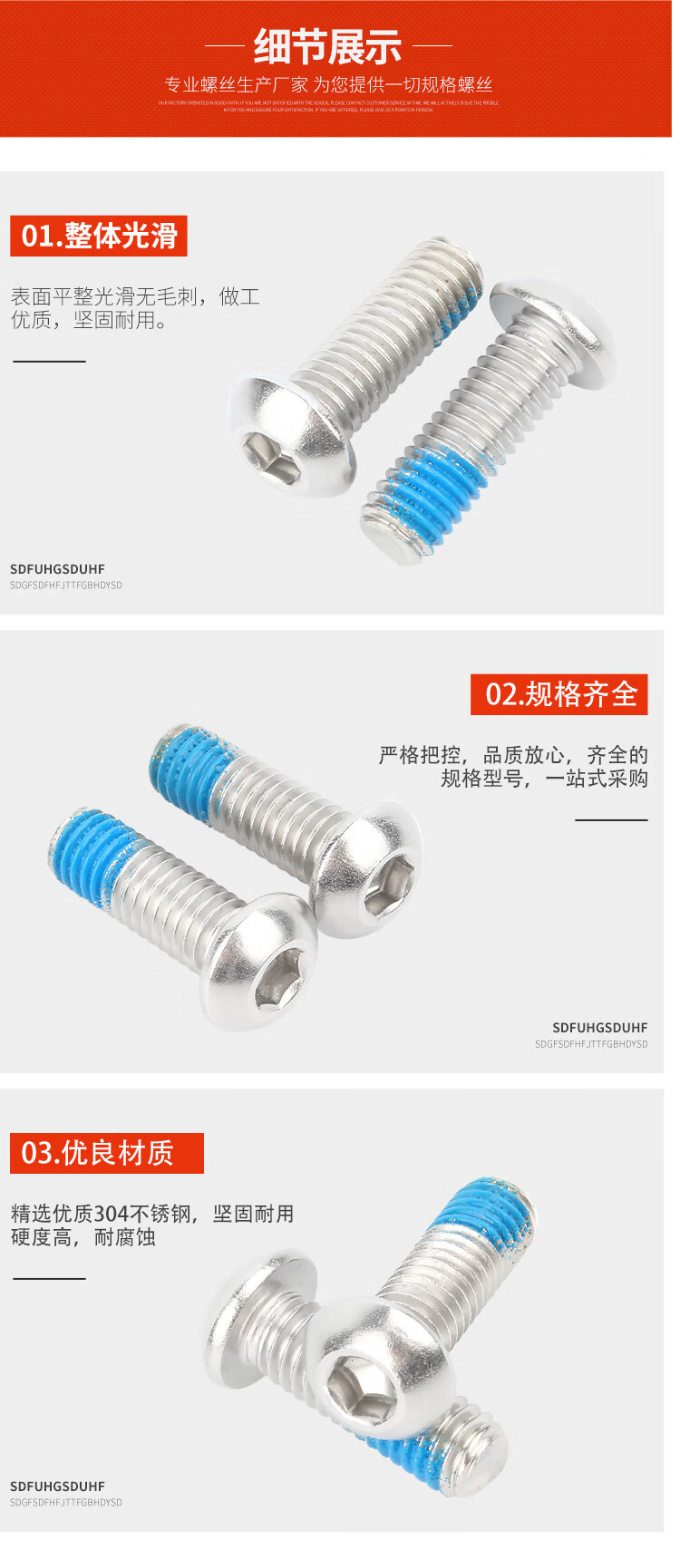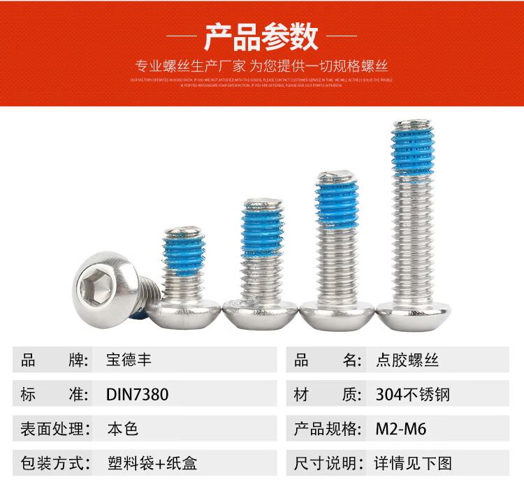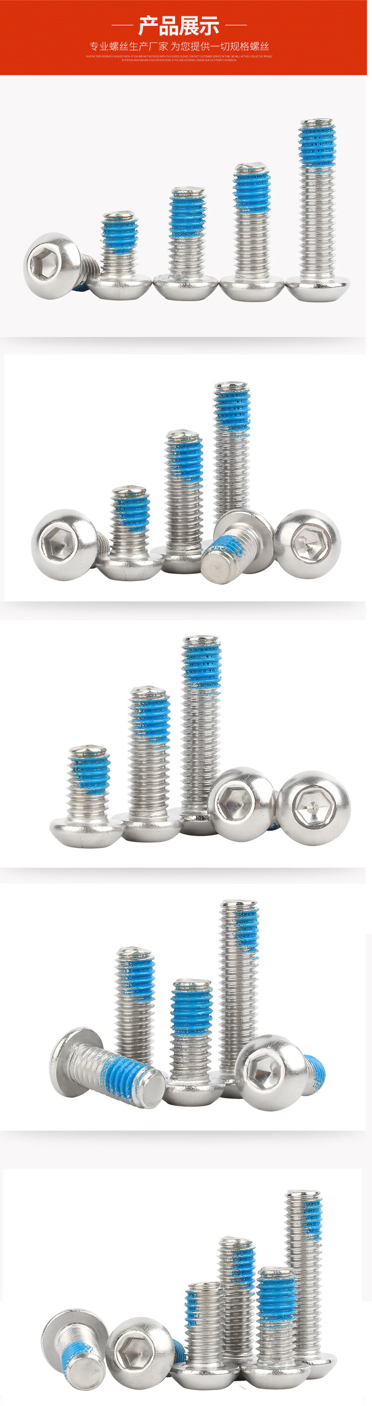 宝德丰304不锈钢圆头内六角点胶螺丝涂胶防松防滑耐脱螺丝钉国标大全 M2x4[100粒]