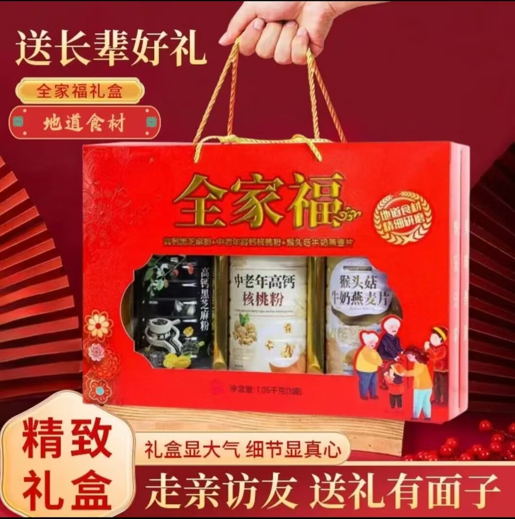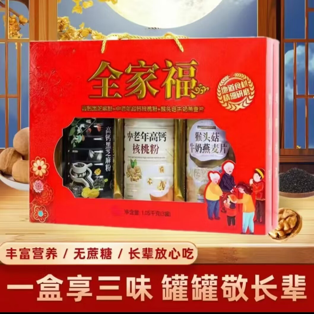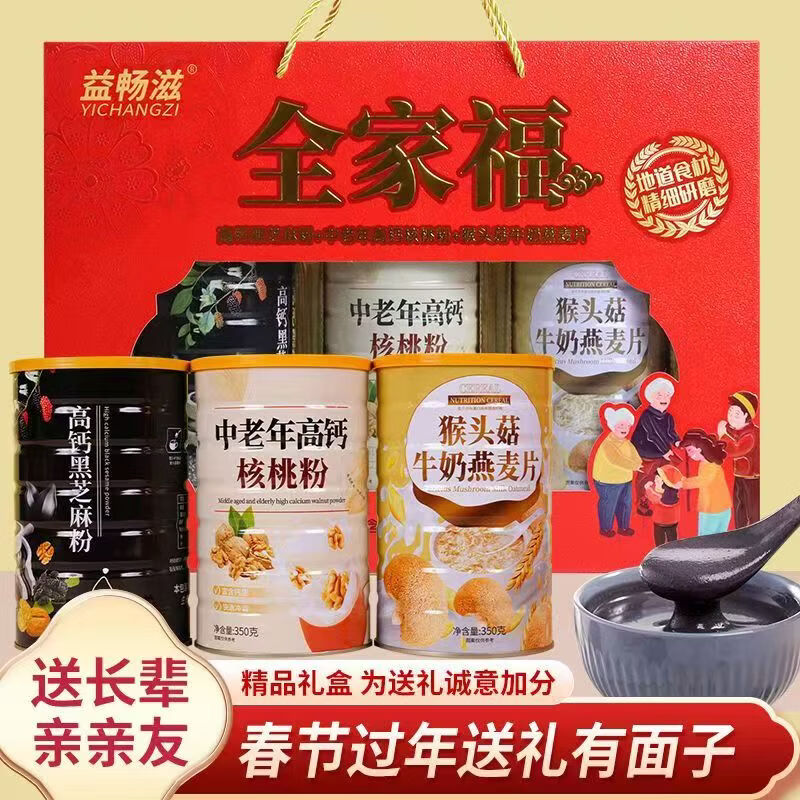 【年货礼盒】黑芝麻糊猴头菇牛奶燕麦片中老年高钙核桃粉过年送礼 1盒装 1盒*3罐
