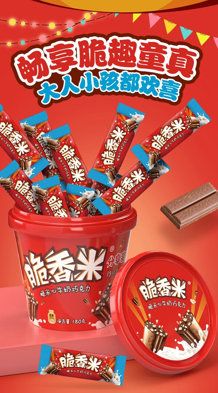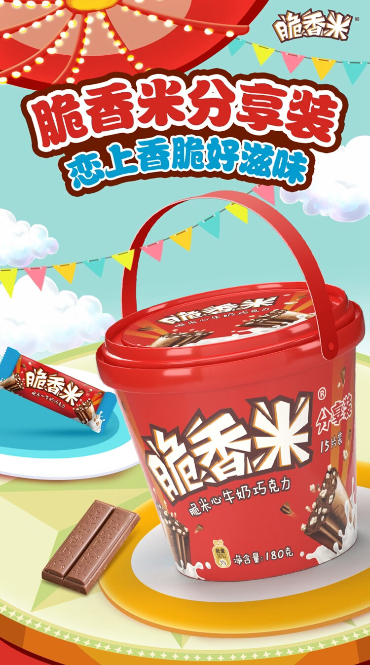 脆香米 脆米心夹心牛奶巧克力 手提桶180g 礼盒装 休闲网红零食 送礼
