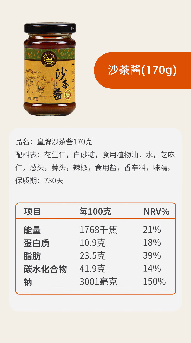 皇牌沙茶酱170g 火锅蘸料底料沙爹酱沙茶面酱 汕头市非物质文化遗产
