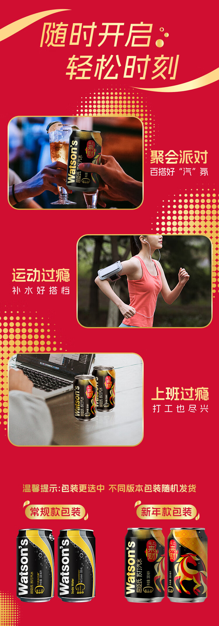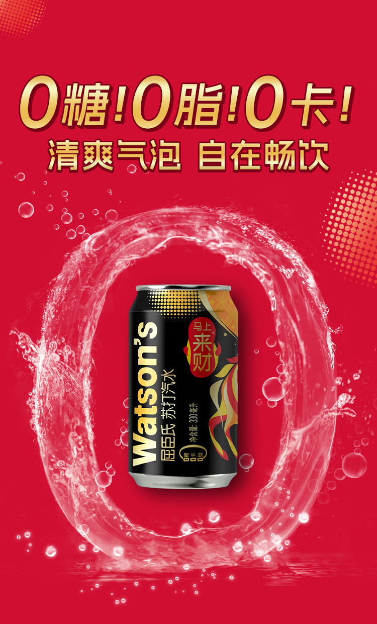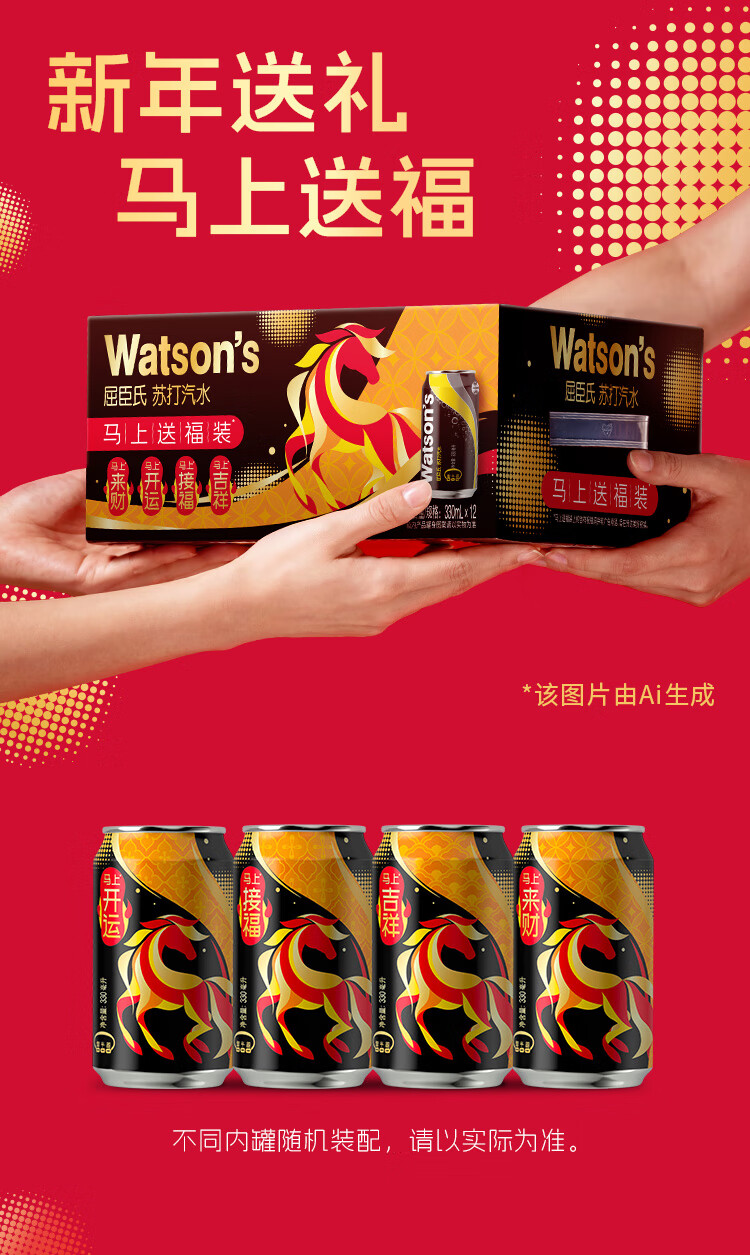 屈臣氏(Watsons)马年礼盒原味苏打水0糖0卡0脂健康饮料年货节过新年礼品330ml*12