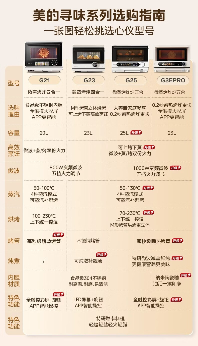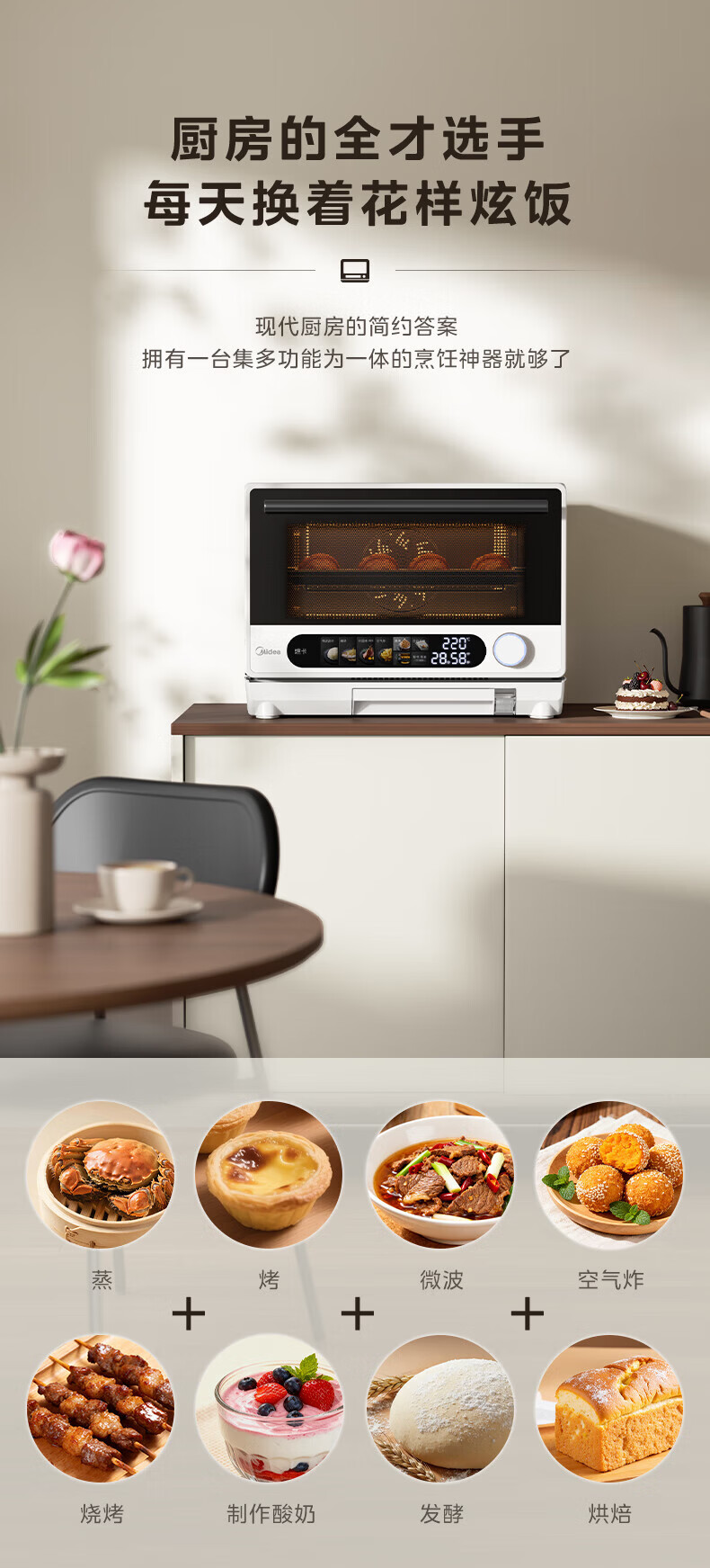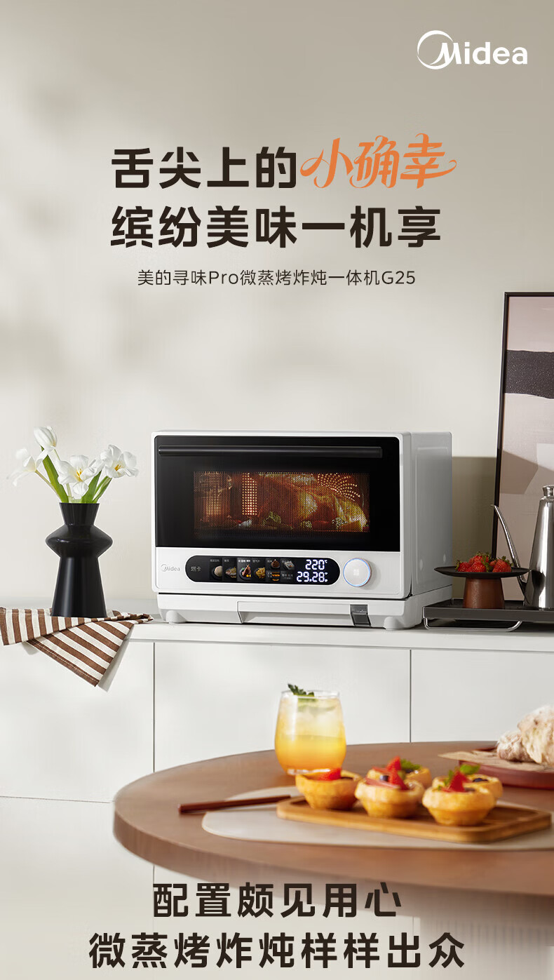 美的(Midea)寻味pro微蒸烤炸炖一体机G25智能微波炉烤箱蒸箱空气炸多功能大容量燃卡变频一级能效 G25