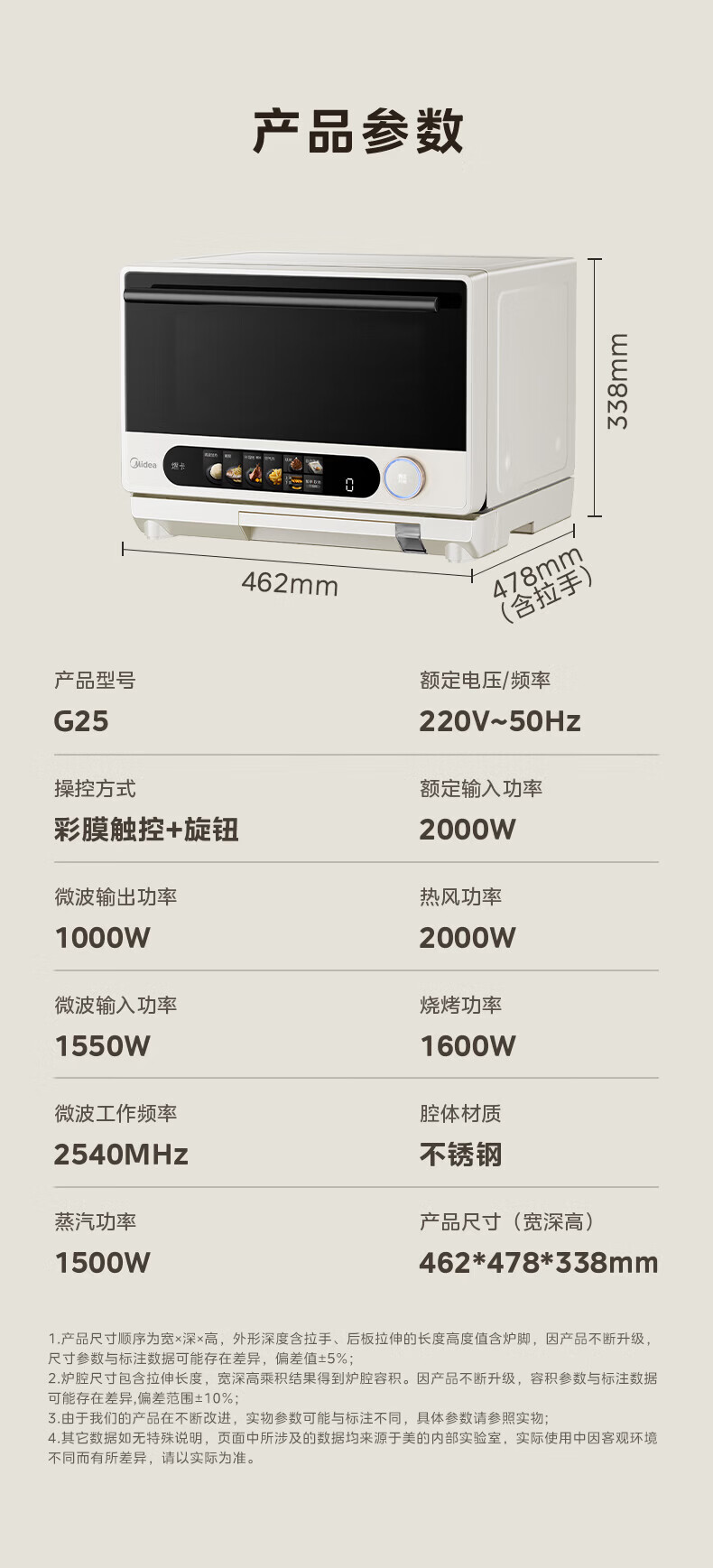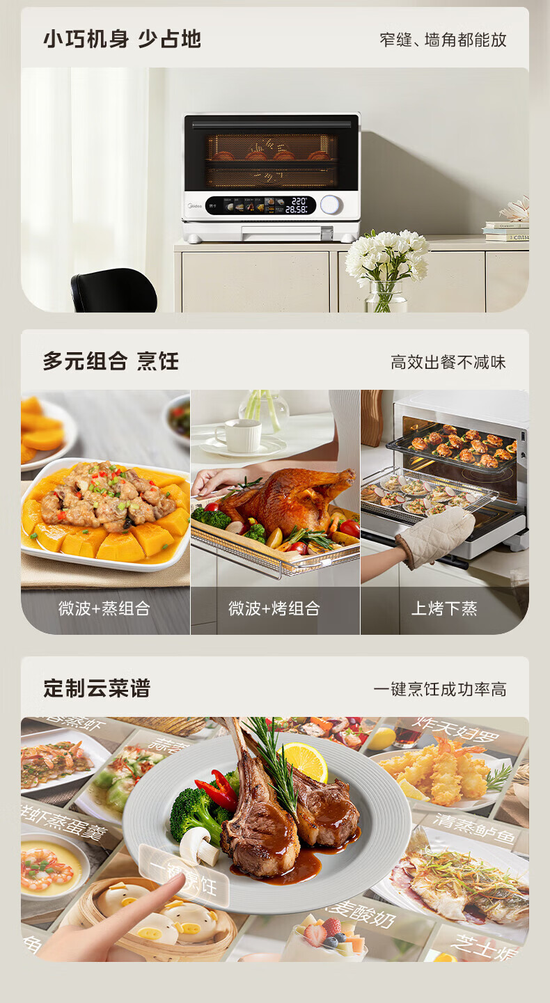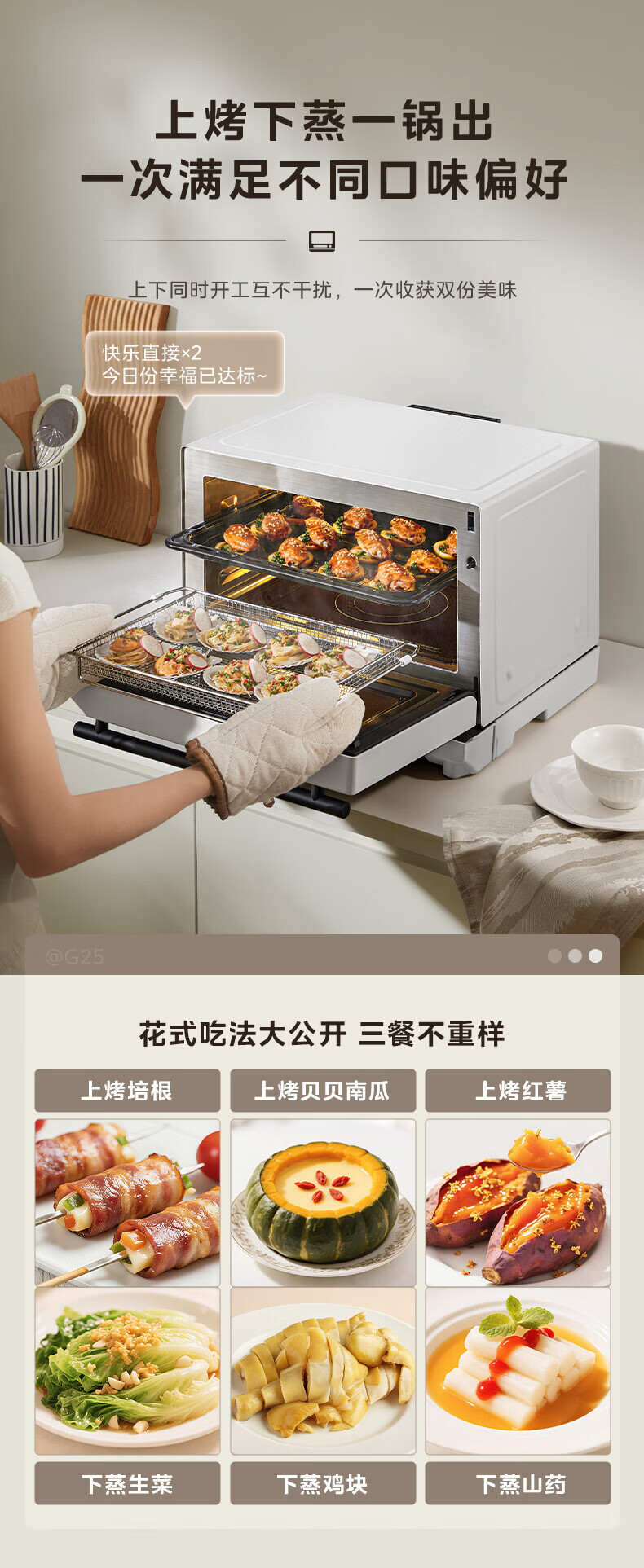 美的(Midea)寻味pro微蒸烤炸炖一体机G25智能微波炉烤箱蒸箱空气炸多功能大容量燃卡变频一级能效 G25