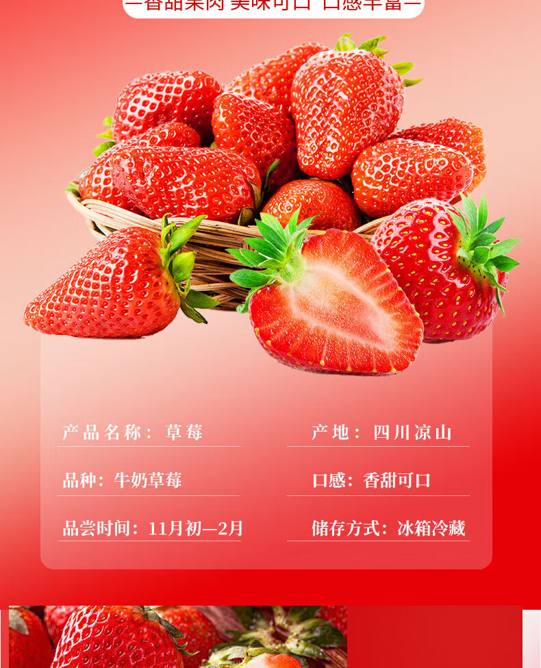 勿语大凉山高山露天种植新鲜草莓现摘现发 农家草莓产地直发采销推荐 4盒中大果单果12g+ (44-80枚)净重2.1-2.6斤