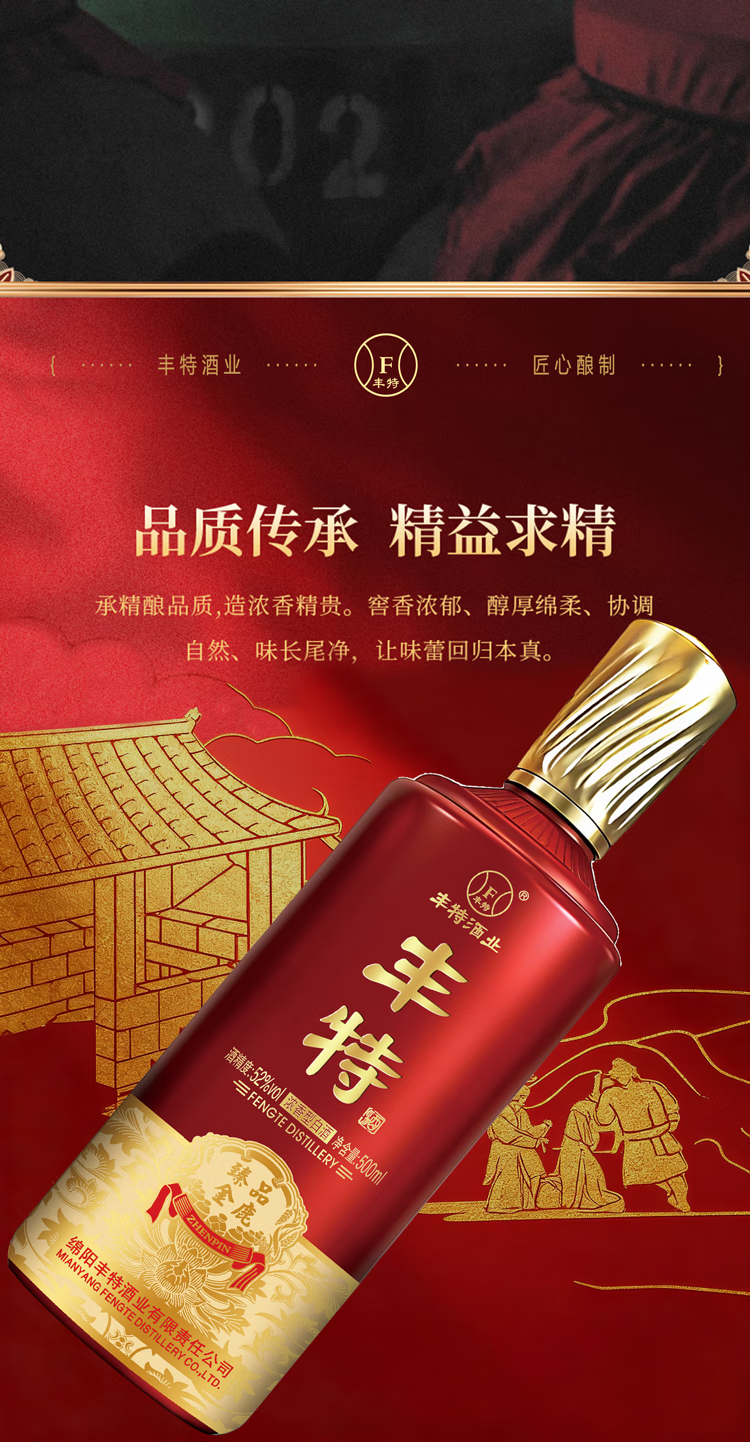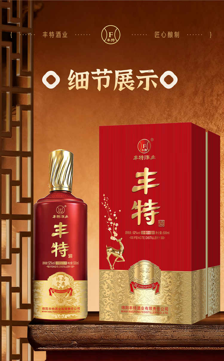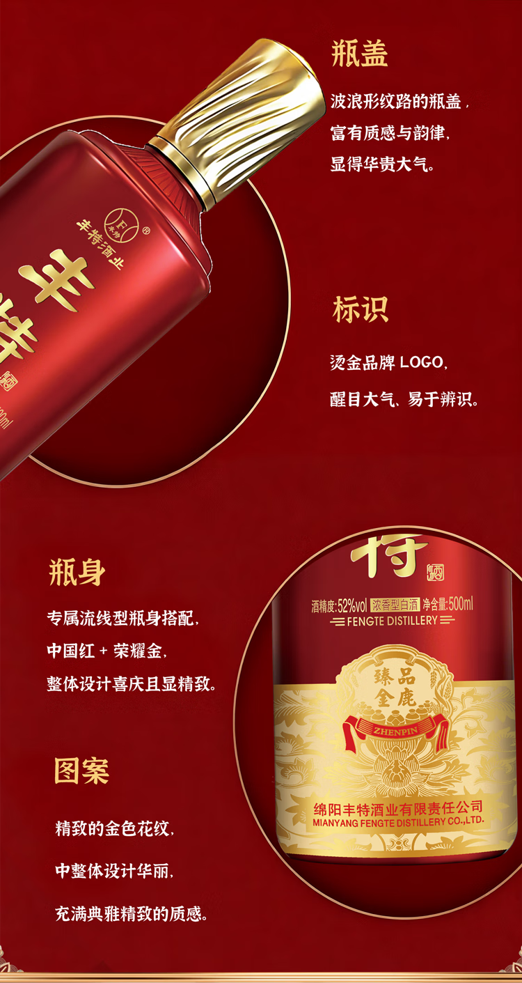 丰特浓香型白酒52度纯粮食酒口粮酒四川白酒宴请中秋送礼 52度 500mL 4盒 整箱装 丰特臻品周鼎