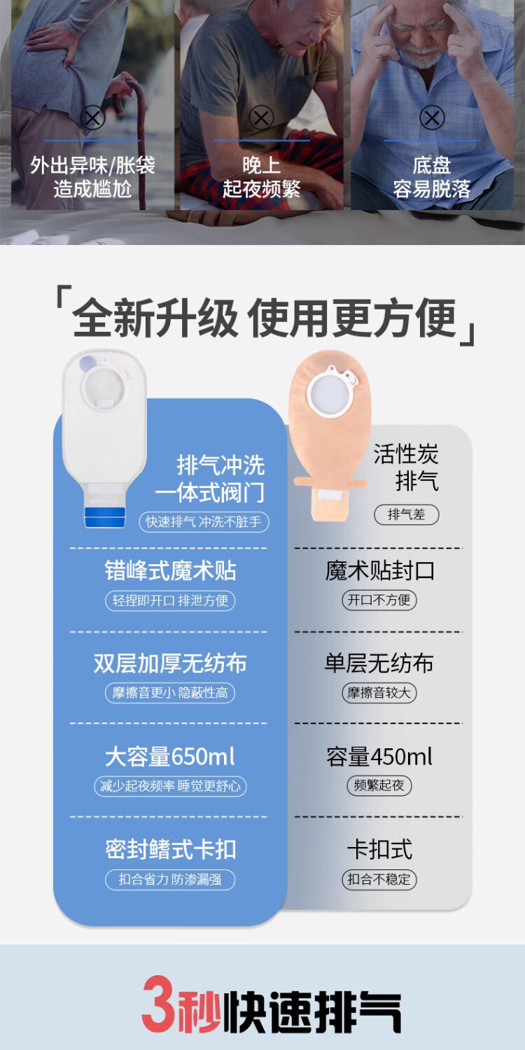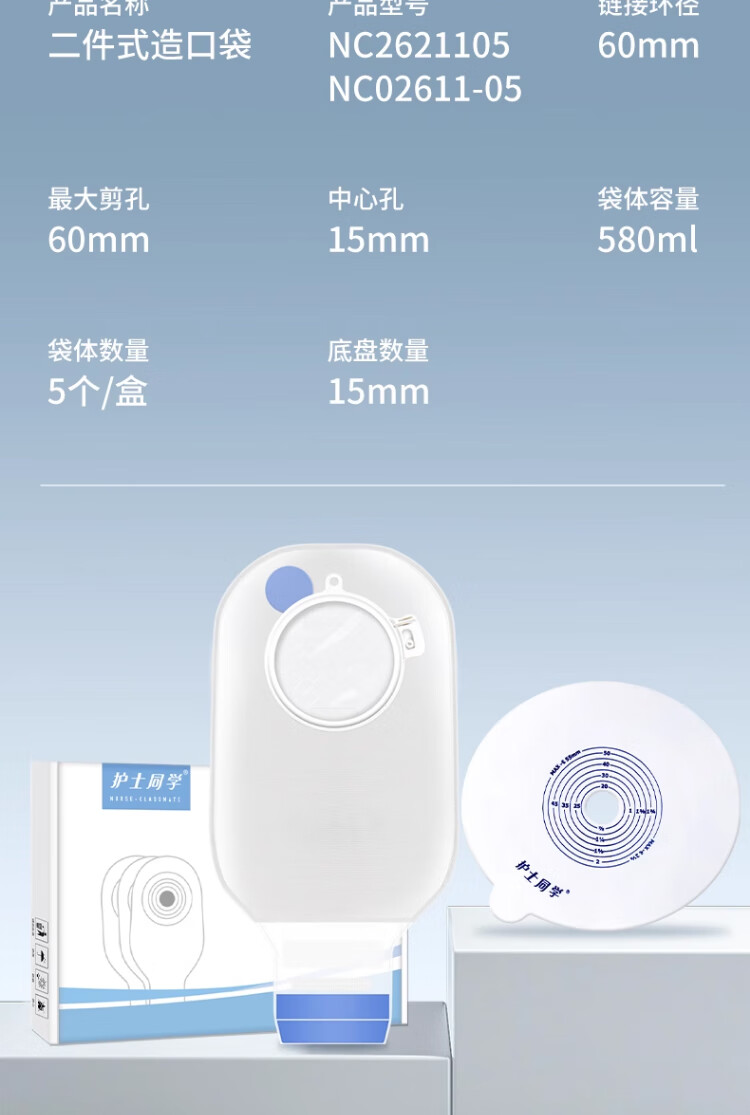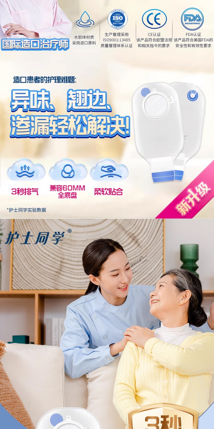 护士同学可排气造口袋二件式10386康L保两件式直肠医用一次性造口袋造瘘袋 秒排气可冲洗袋体【10个】兼容60底盘-送冲洗壶
