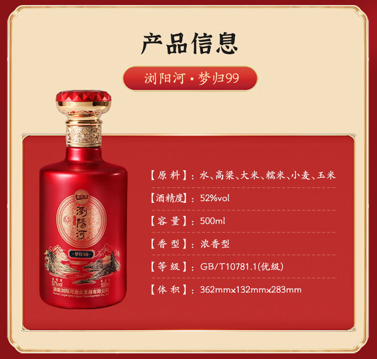 瀏陽河酒浏阳河酒梦归99浓香型白酒52度2瓶礼盒装送礼自饮浏阳河官方正品 52%vol 500mL 1盒
