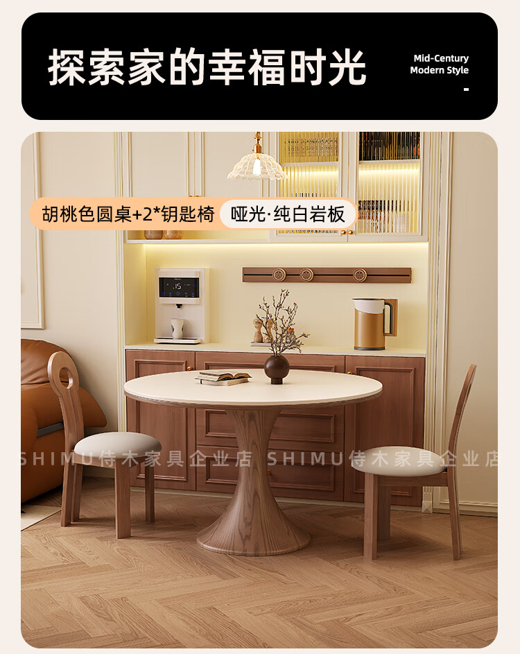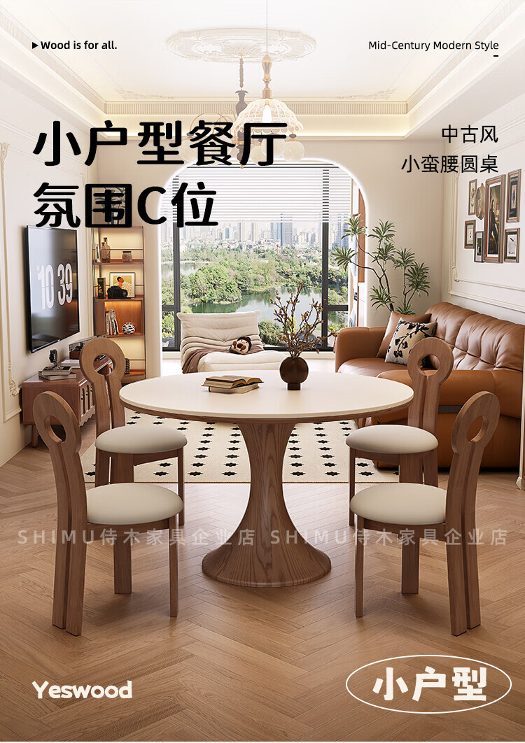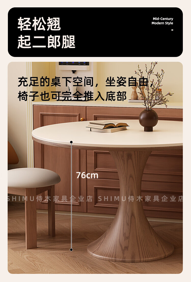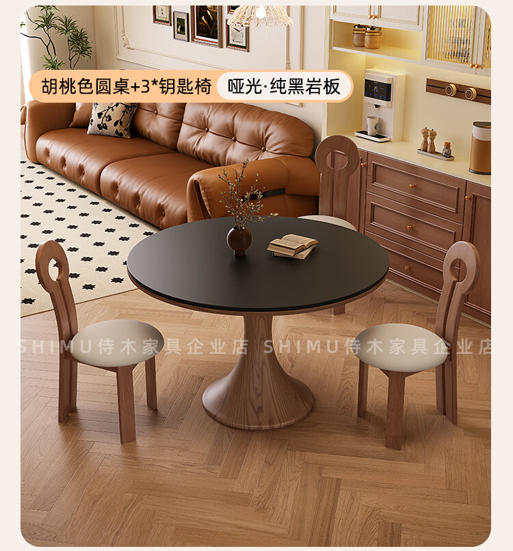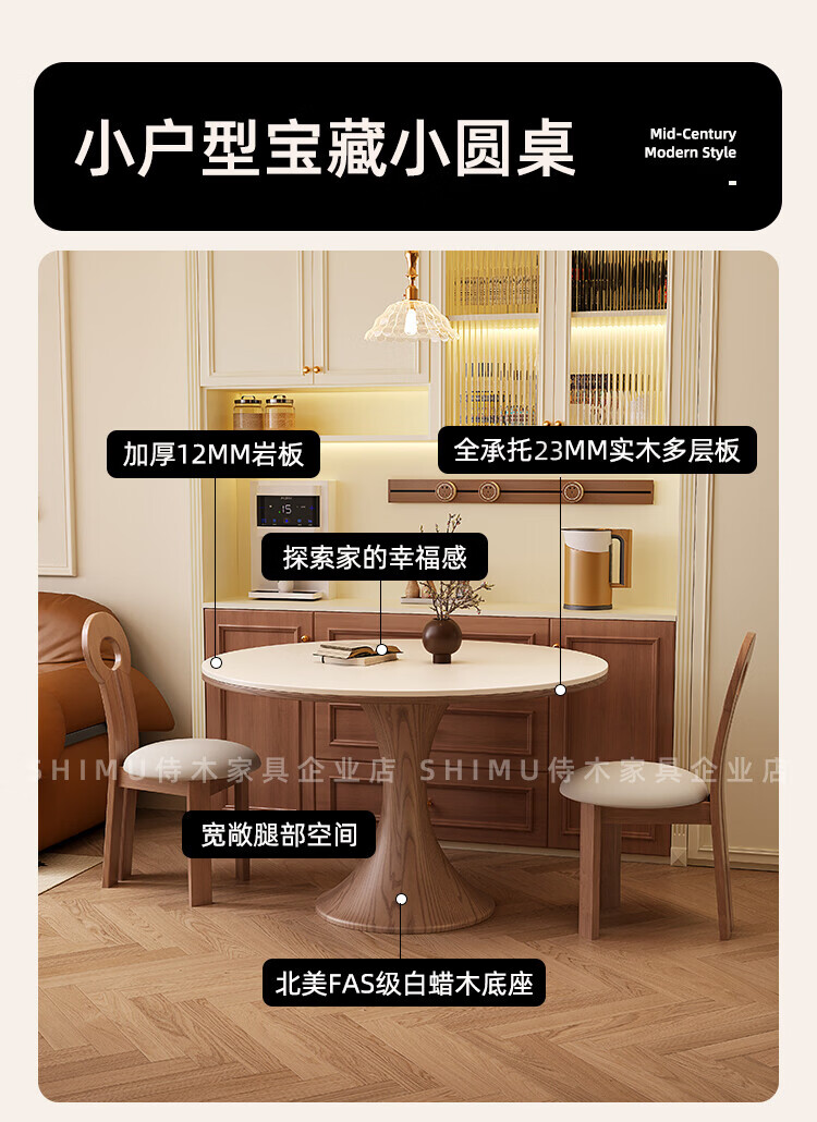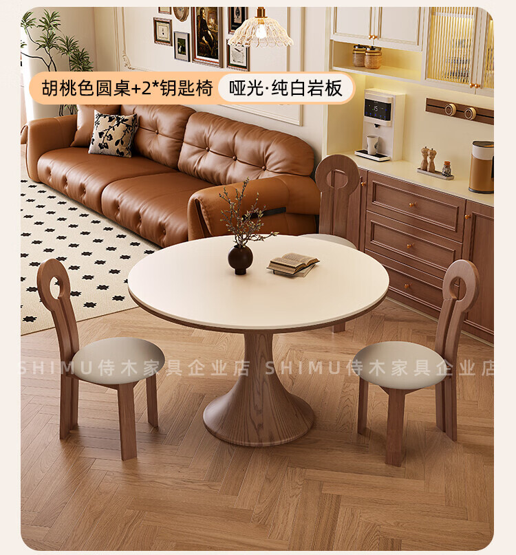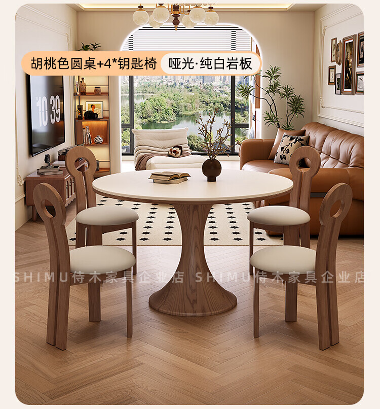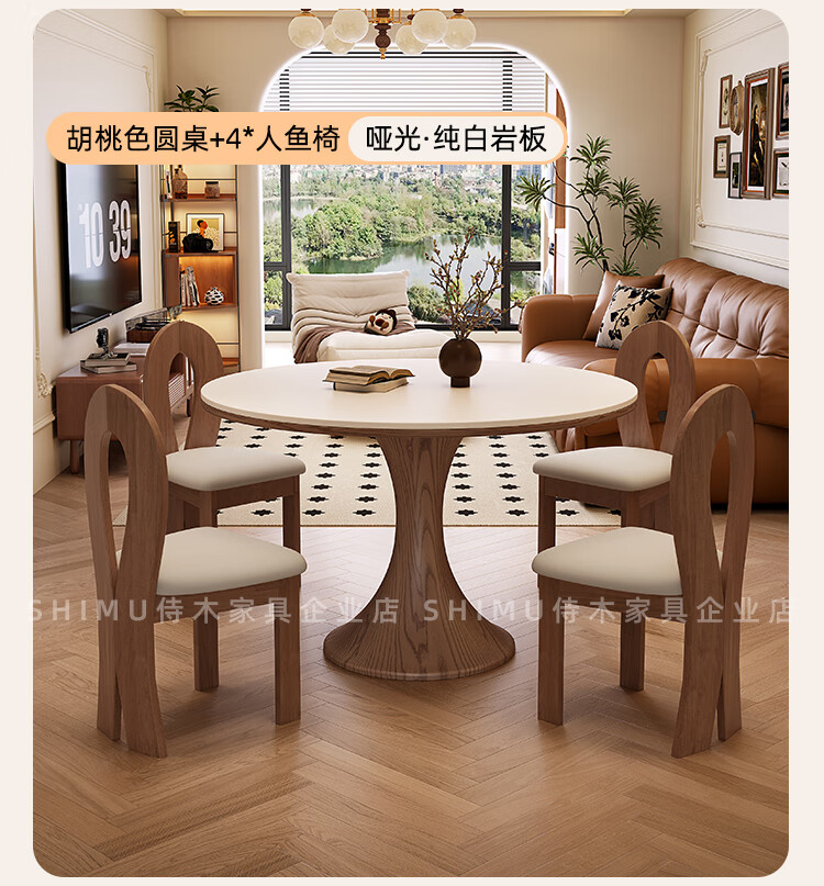 侍木岩板小圆桌中古风简约圆形餐桌小户型家用圆桌白蜡木1.2米圆餐桌 小蛮腰岩板圆桌/全承托板+6*人鱼椅 120x120x76cm