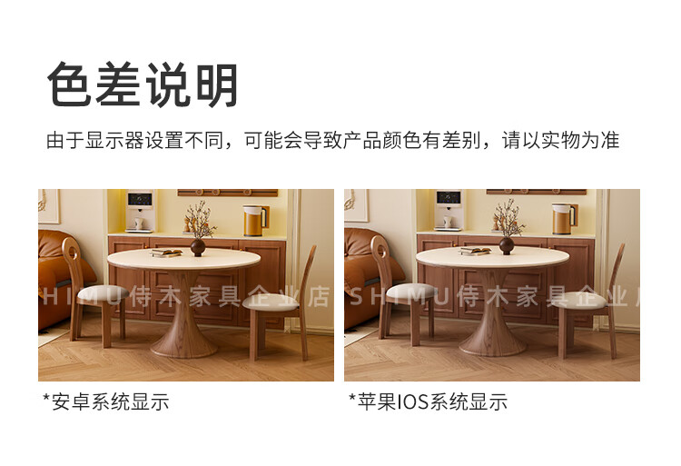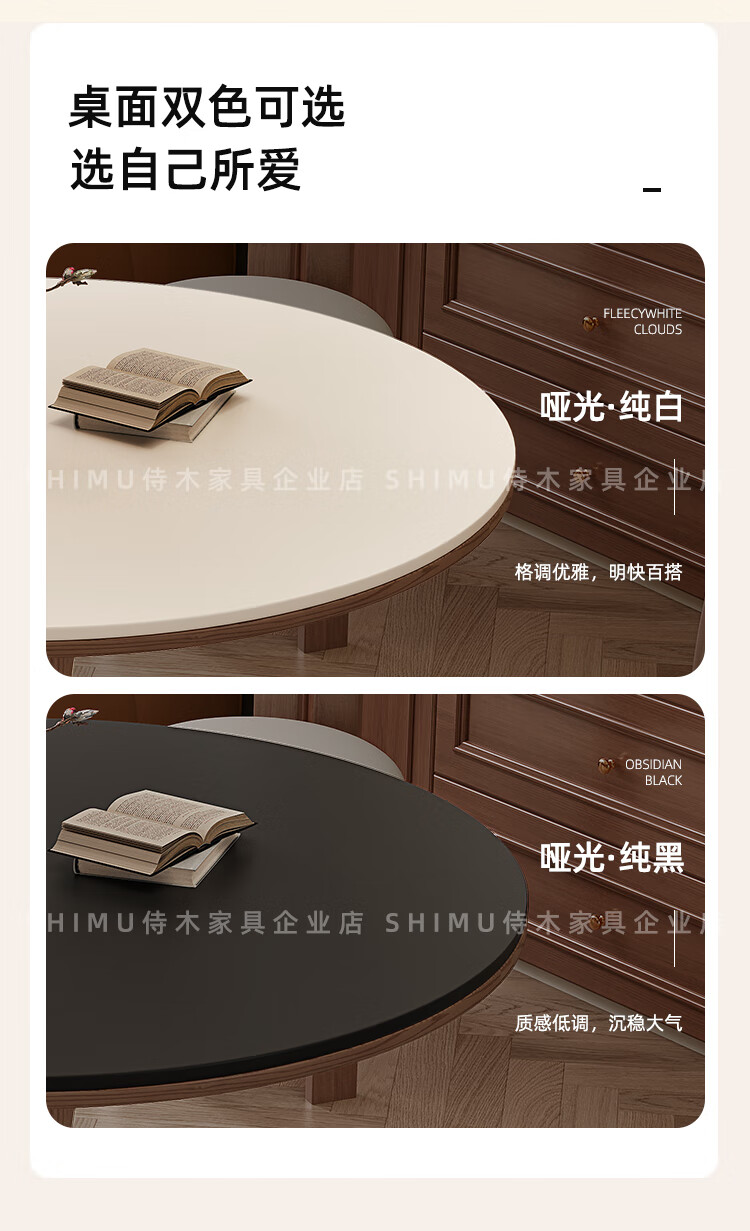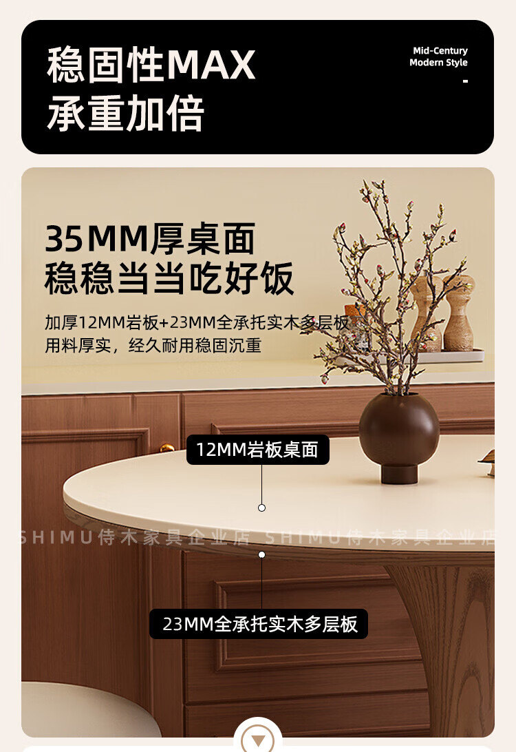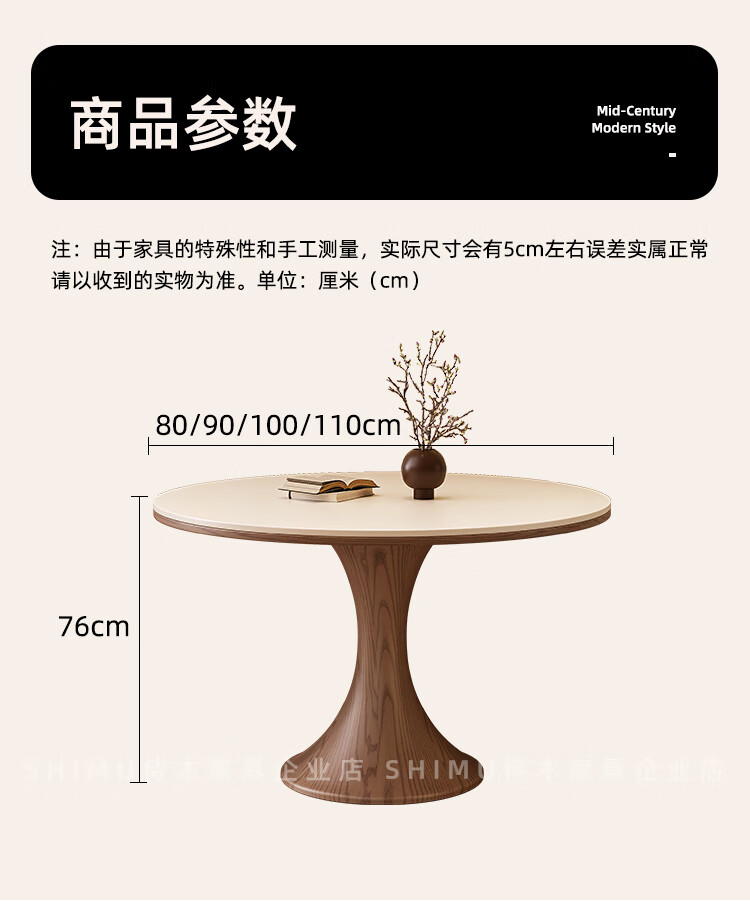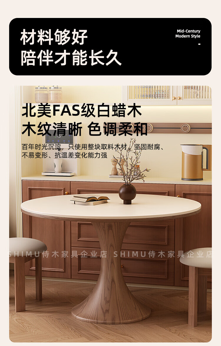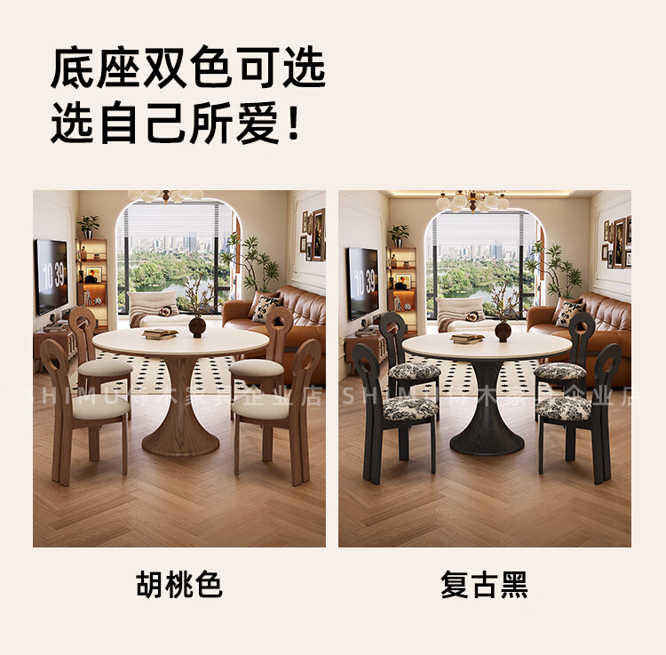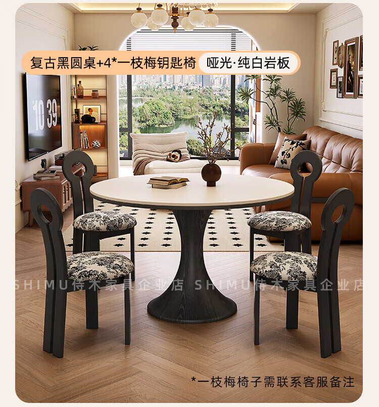 侍木岩板小圆桌中古风简约圆形餐桌小户型家用圆桌白蜡木1.2米圆餐桌 小蛮腰岩板圆桌/全承托板+6*人鱼椅 120x120x76cm