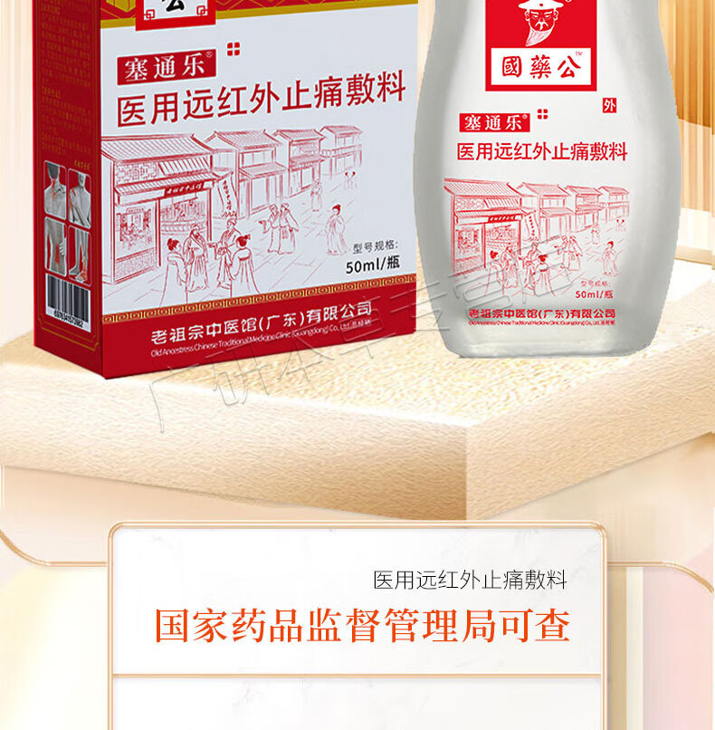 老祖宗中医館国药公风湿关节手足麻跌打损伤腰椎间盘突出颈椎病肩周炎止痛敷料 国药公/塞通乐(50ml/1盒装)