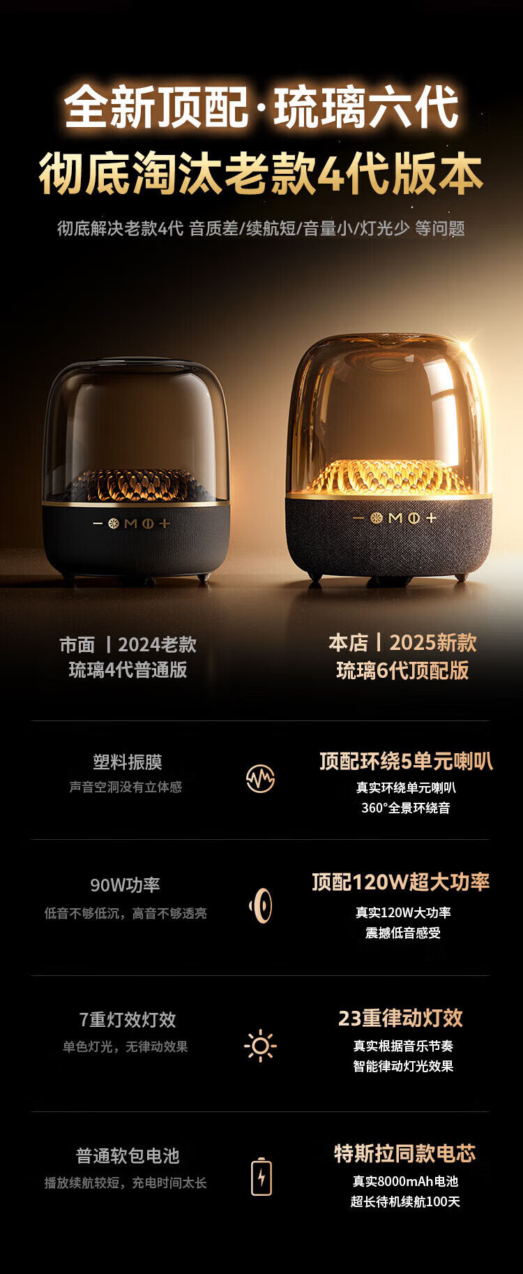 AEU【热销100W+|新款琉璃8代】大哈曼蓝牙音响琉璃6代音箱5代华强北低音炮家用桌面台式电脑 【黑金琉璃|新款6代】Pro顶配版 律动灯效+支持试听+全国联保