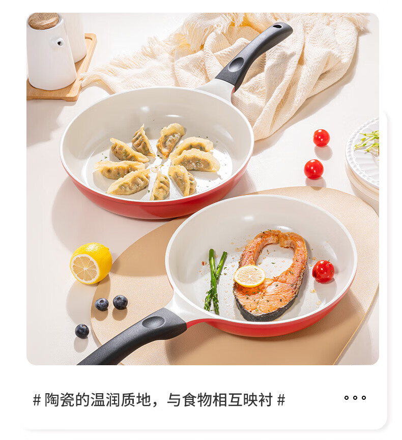 乐扣乐扣(LOCK&LOCK) 陶瓷不粘平底锅煎锅牛排锅无烟煎蛋煎饼电磁炉通用煎炒两用锅 26cm红色【升级款】