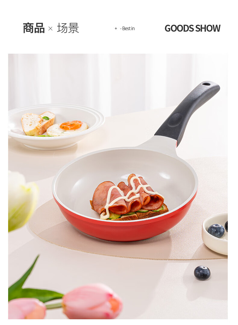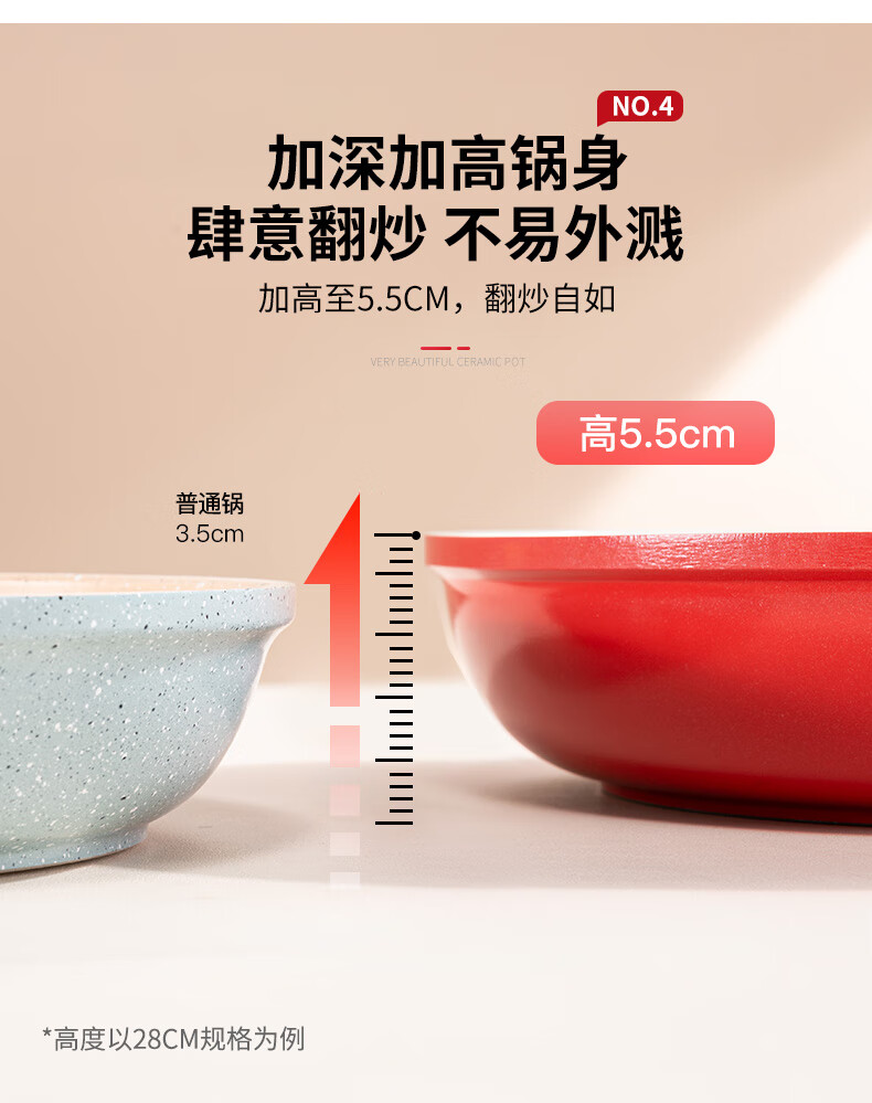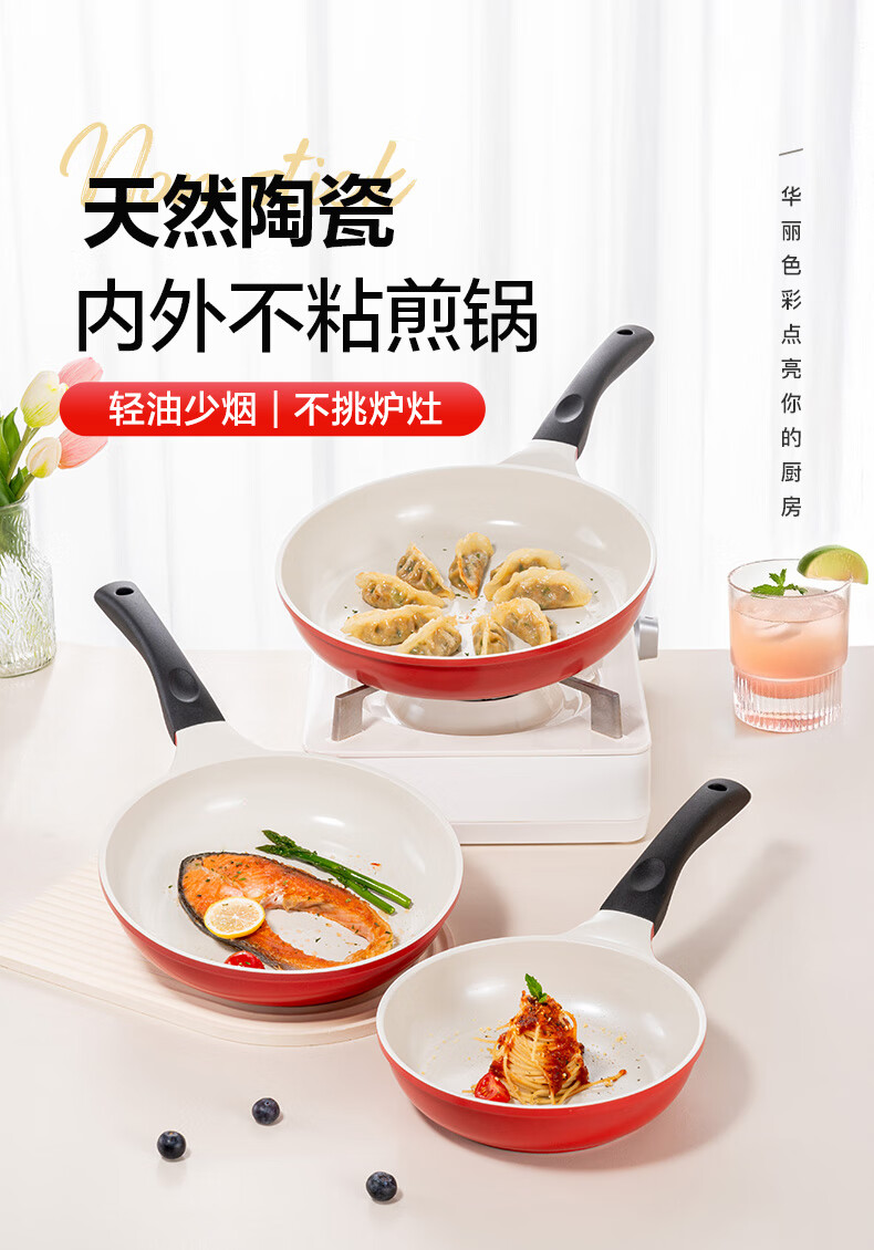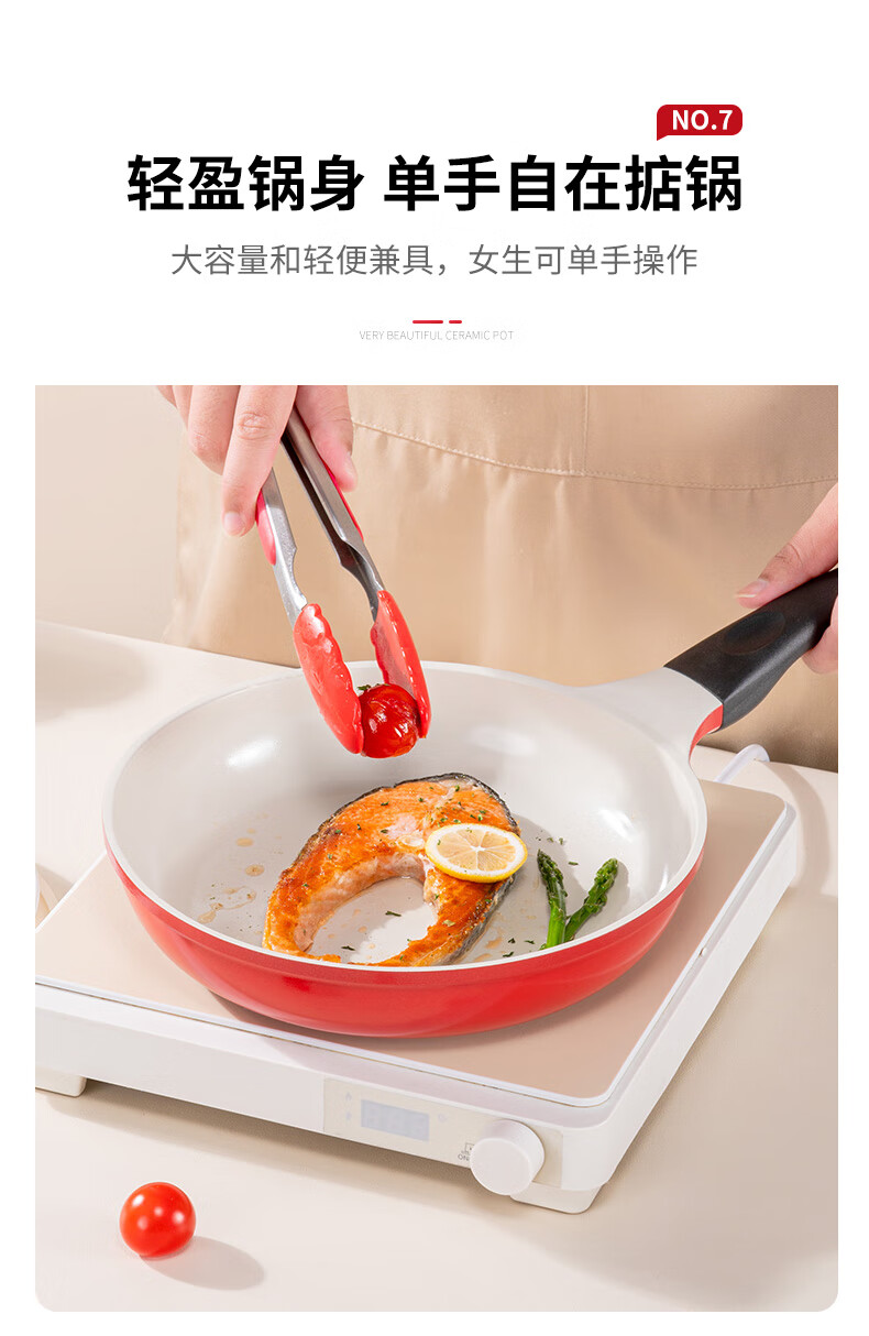 乐扣乐扣(LOCK&LOCK) 陶瓷平底锅不粘锅煎锅炫彩煎饼锅明火电磁炉通用 28cm红色【升级款】