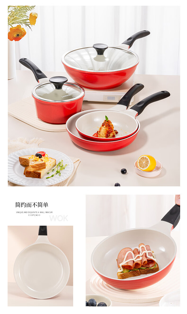 乐扣乐扣(LOCK&LOCK) 奶锅不粘锅陶瓷不沾辅食锅泡面锅电磁炉通用18cm复底燃气炉 红色【升级款】 18cm 18cm