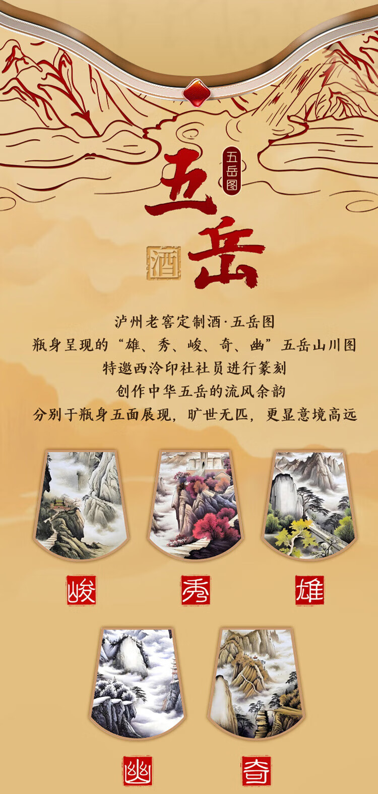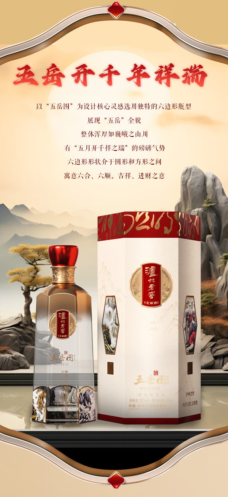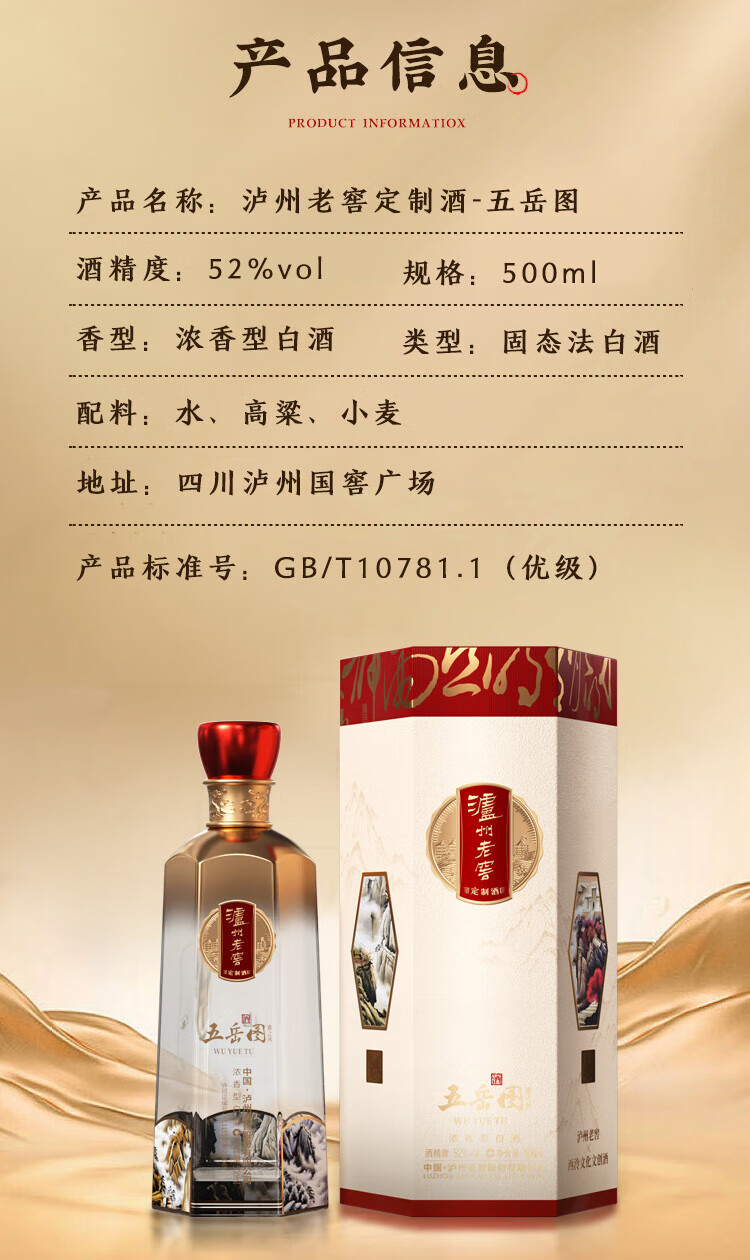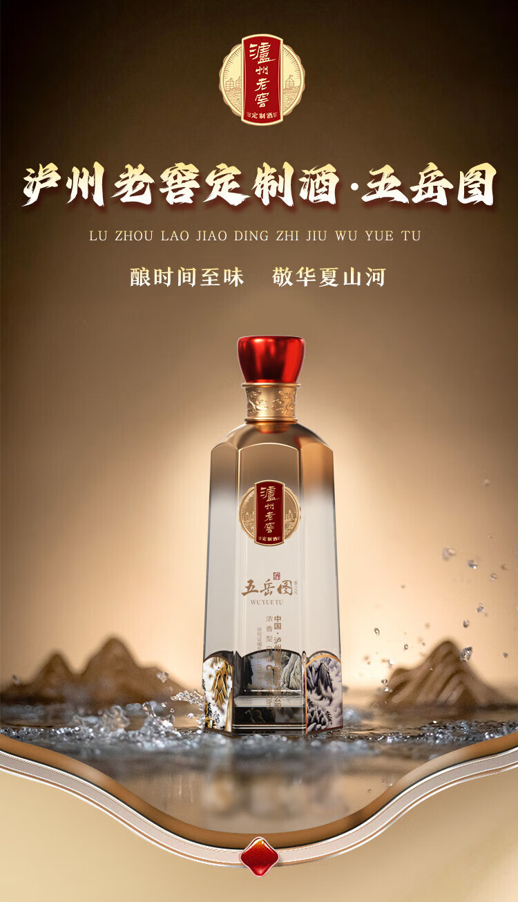 瀘州老窖定制酒五岳图雅之风浓香白酒52度固态法纯粮高度白酒 礼盒商务礼品收藏 52度 500mL 2瓶 五岳图雅之风 礼盒装