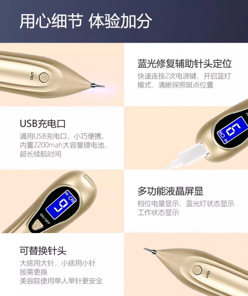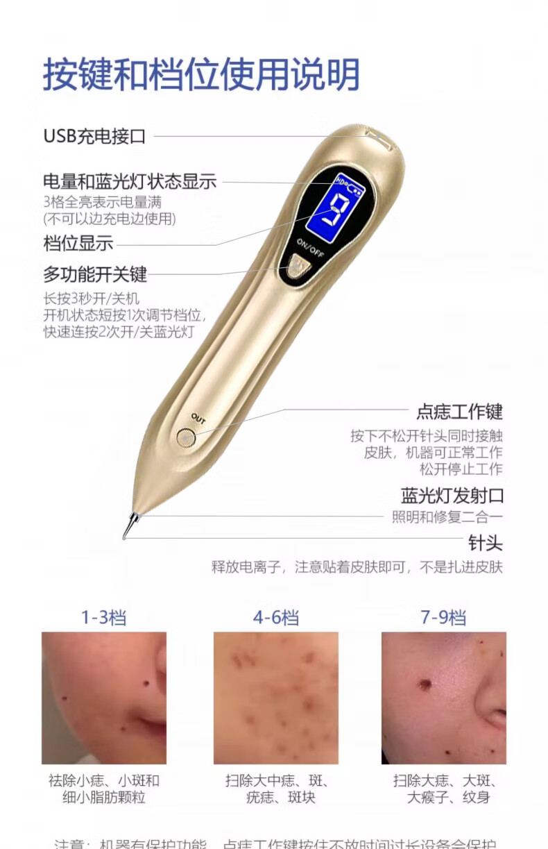 DIKTT【德国】扫斑去斑点痣笔2025新款小白激光祛斑美容院用点痔去痣点斑笔美容仪器女士女生节日礼物 玫瑰金【旗舰款-带防伪】9档蓝光修复+15重豪礼 旗舰