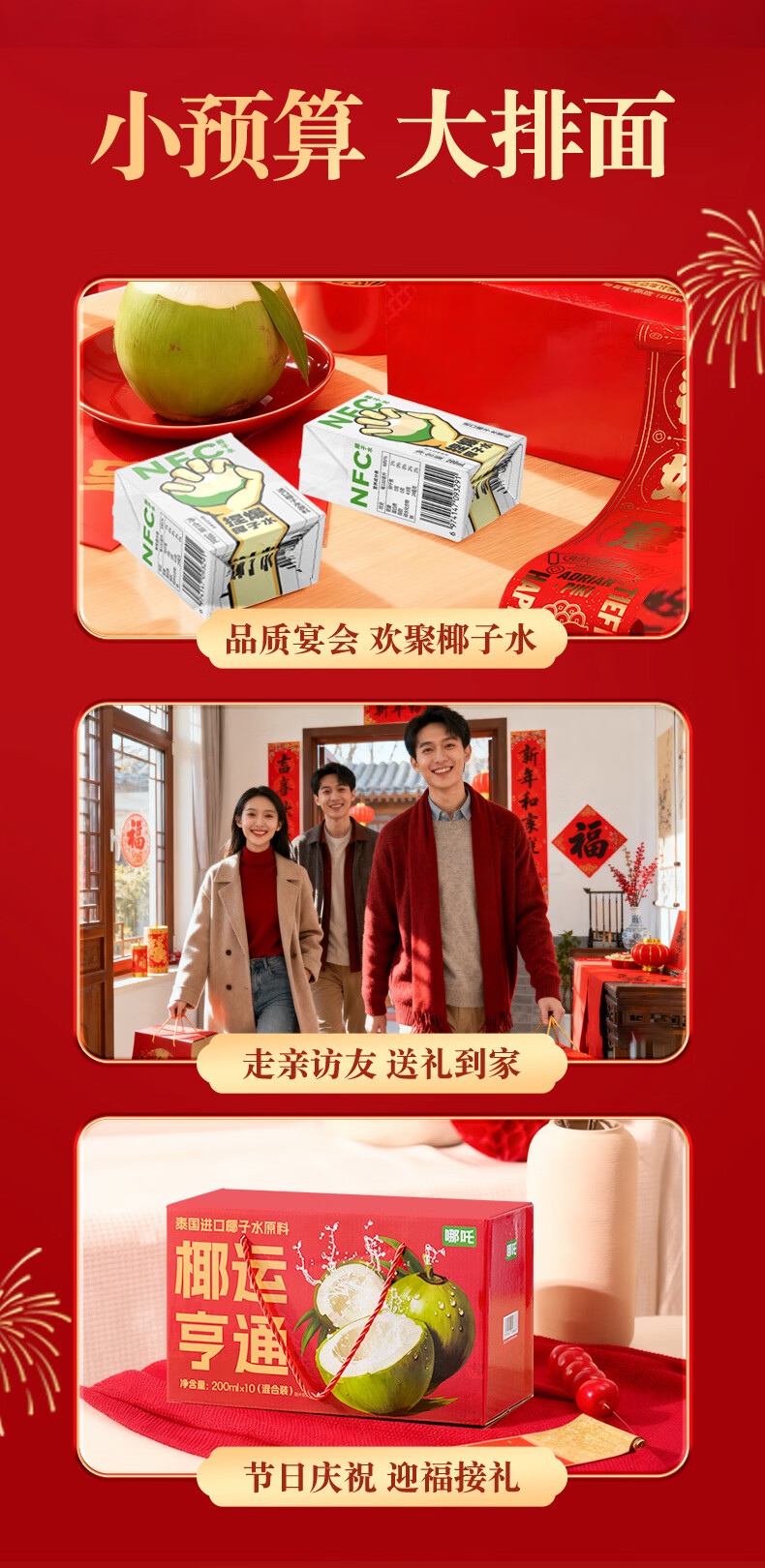 豪园【年货送礼】100%苹果汁整箱装红富士果汁饮料0脂肪清爽解腻饮料 椰子水1.25L*2瓶【喜庆版】
