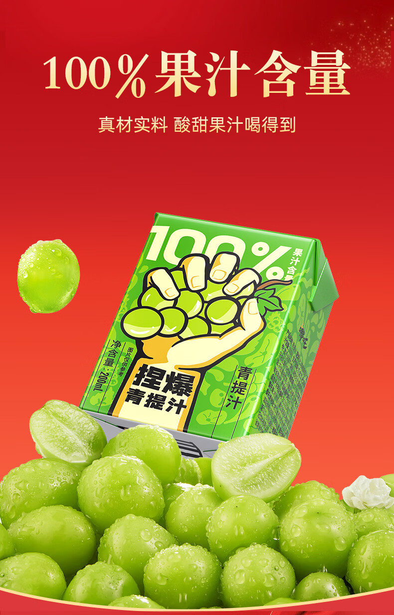 哪吒甜橙雪梨苹果青提青柠白桦树西梅汁椰子水年货送礼盒饮料品含维C 捏爆100%青柠汁2L*2瓶 哪吒捏爆果汁