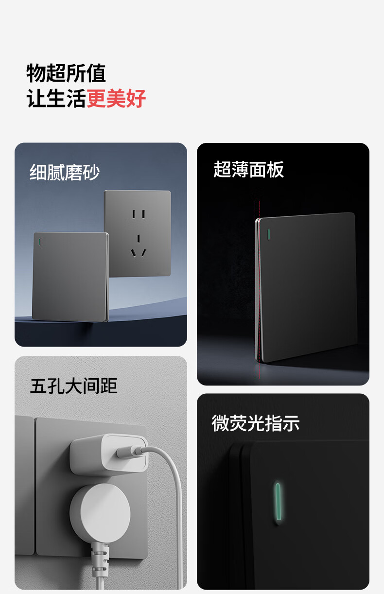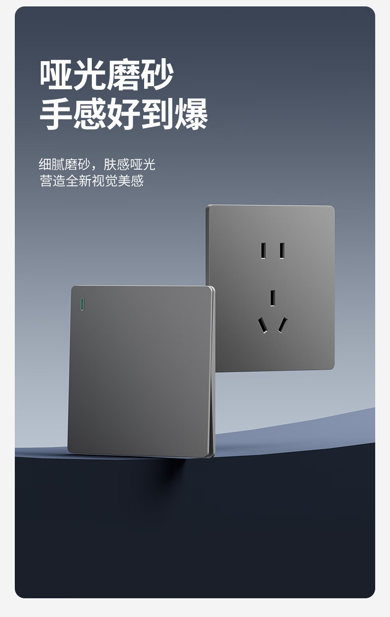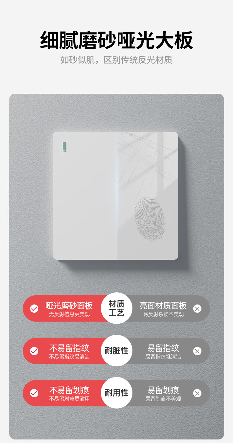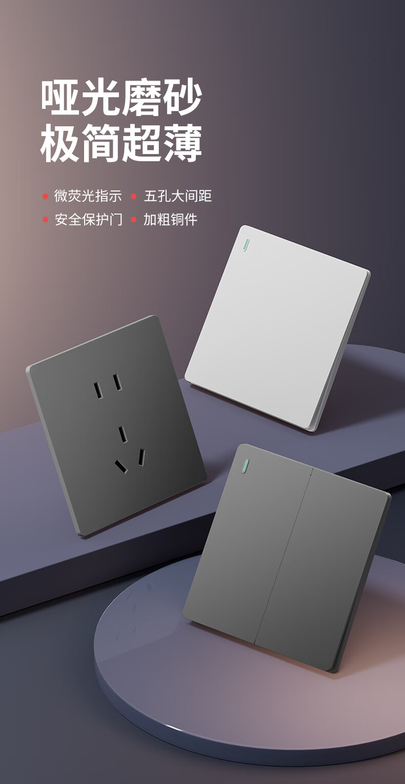国际电工(FDD)86型超薄开关插座暗装家用一开五孔双控磨砂白色面板二开电源开关 三开单控-哑光白