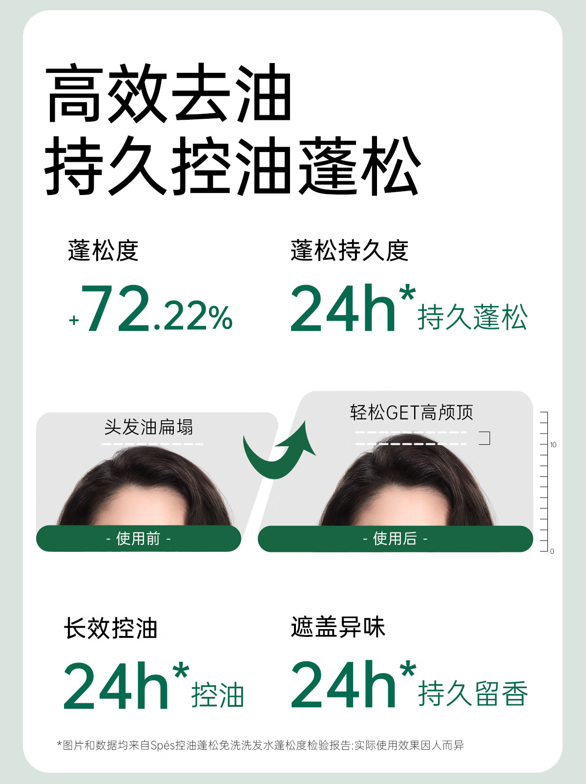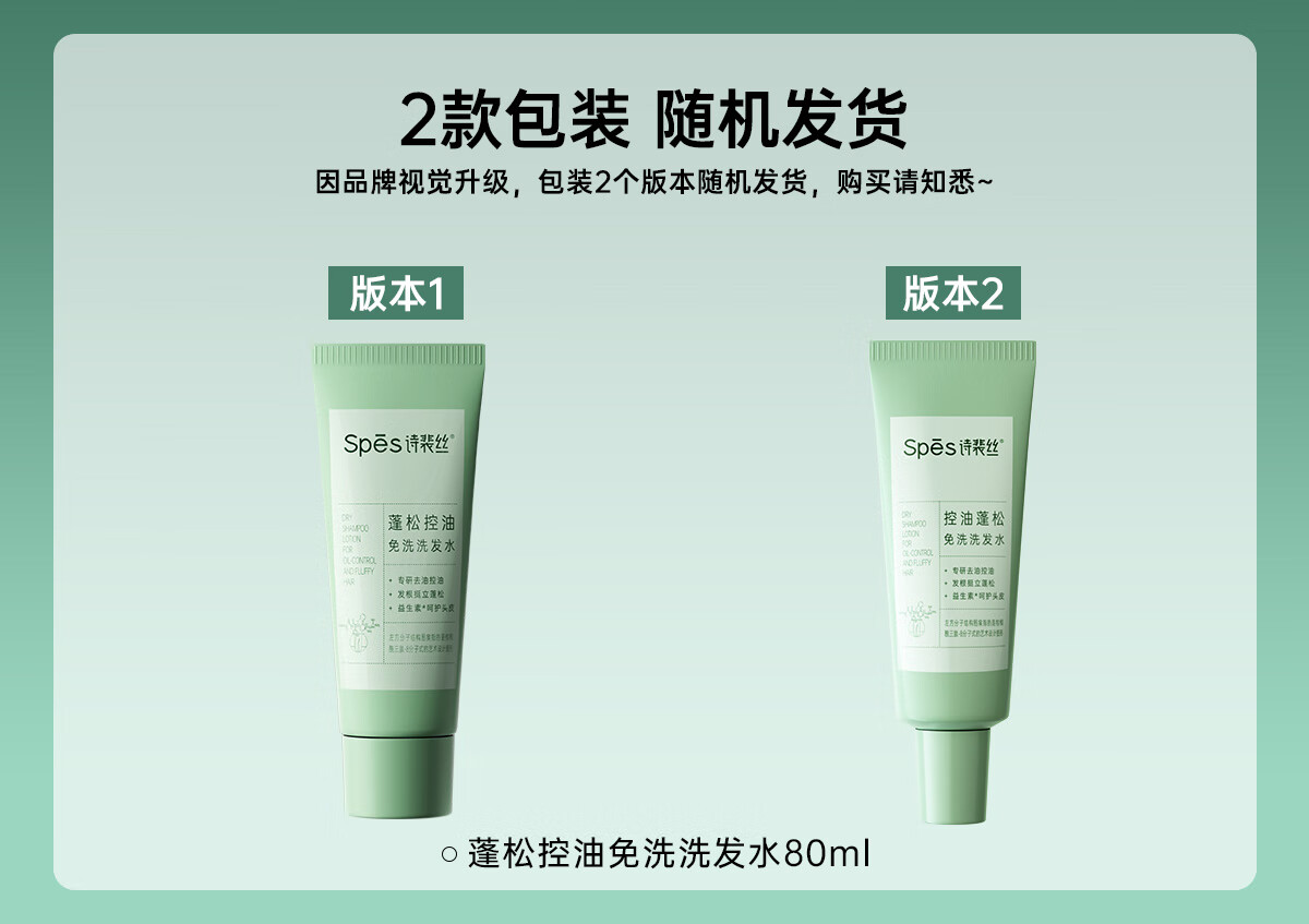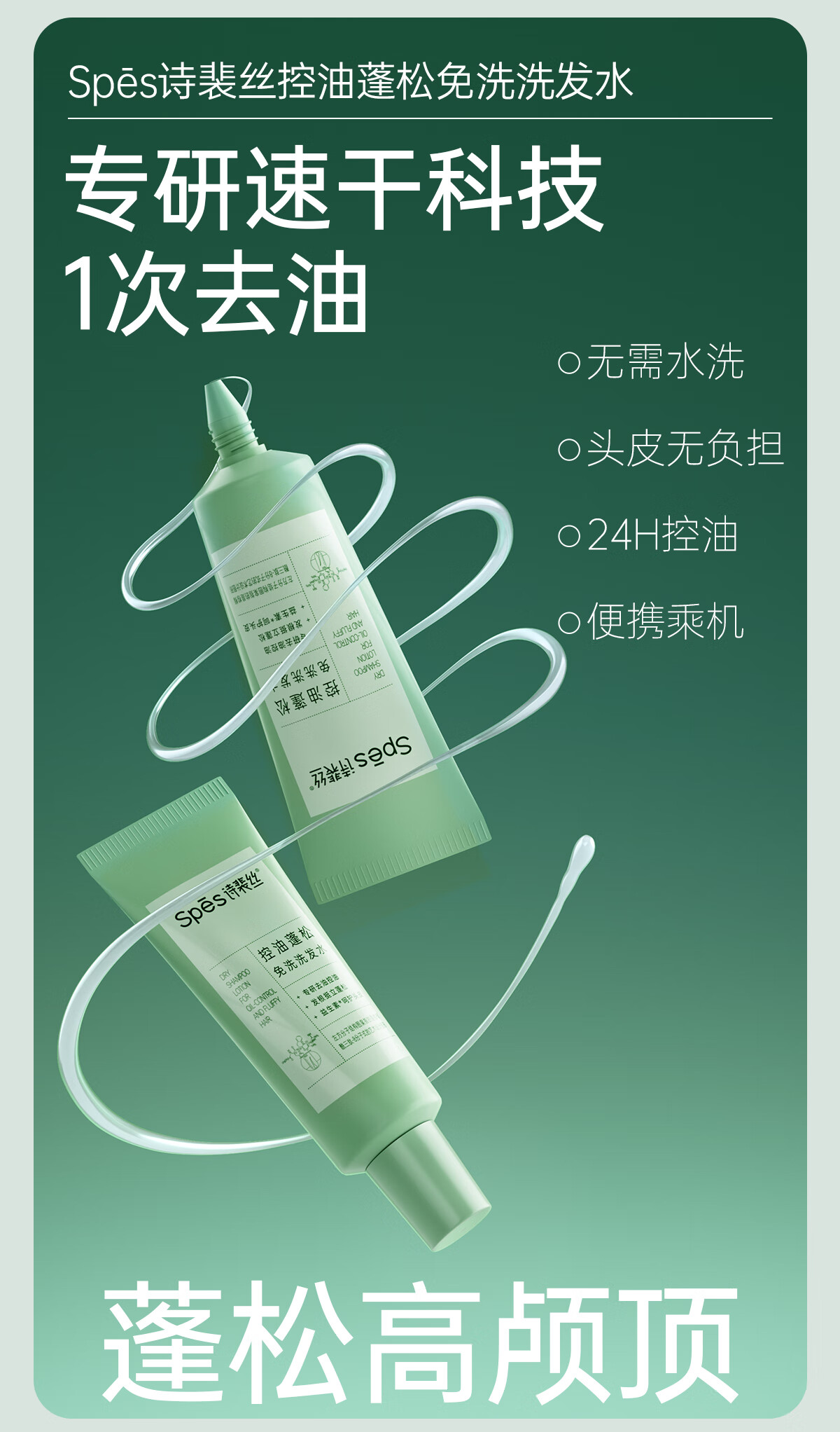 Spes诗裴丝去油止痒控油持久蓬松京东自营便携乘机免洗洗发水80ml*2