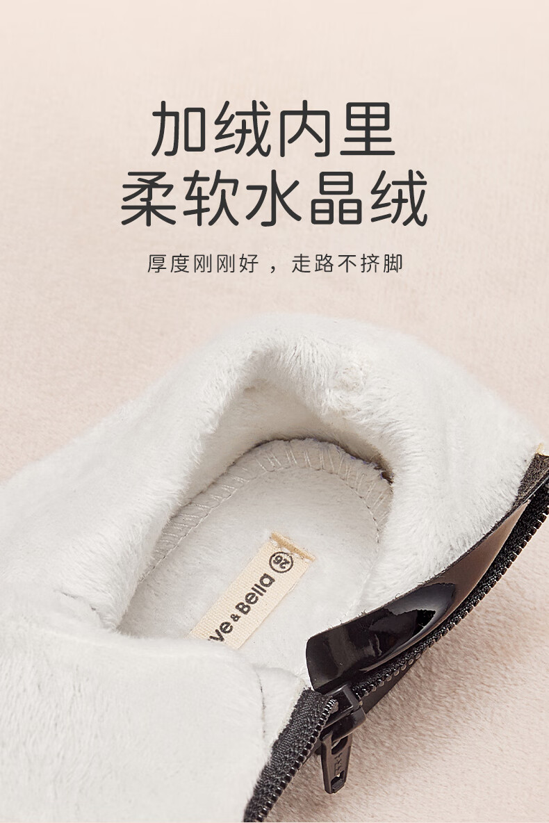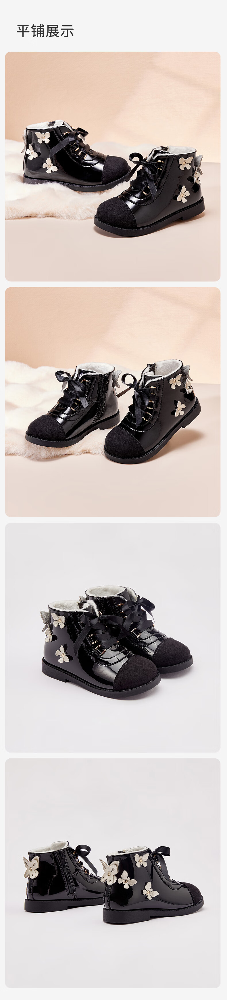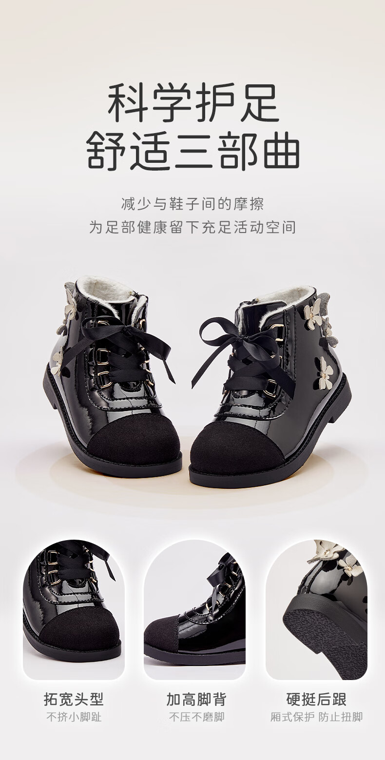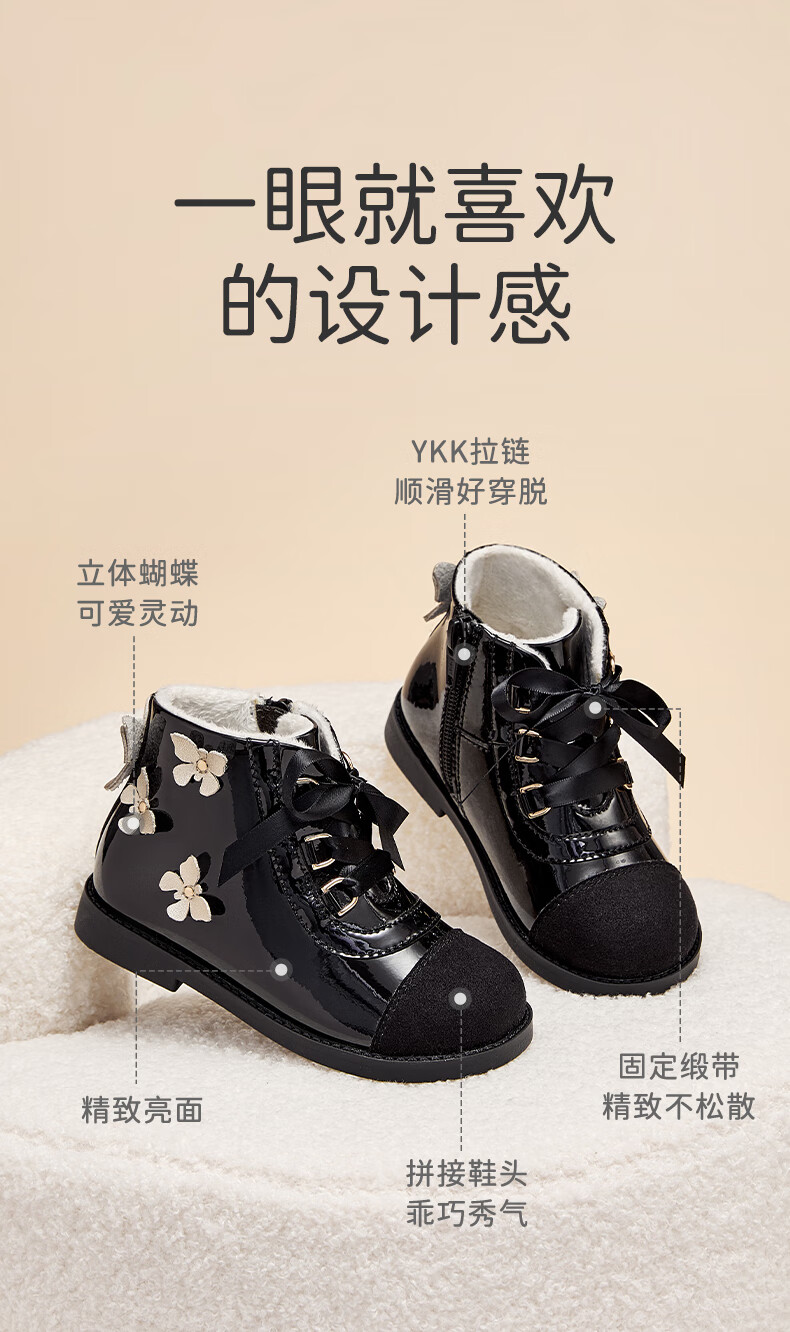 戴维贝拉(DAVE&BELLA)儿童马丁靴洋气女童靴子小童学步鞋加绒童鞋冬季新款宝宝休闲鞋 黑色【现货】 30码