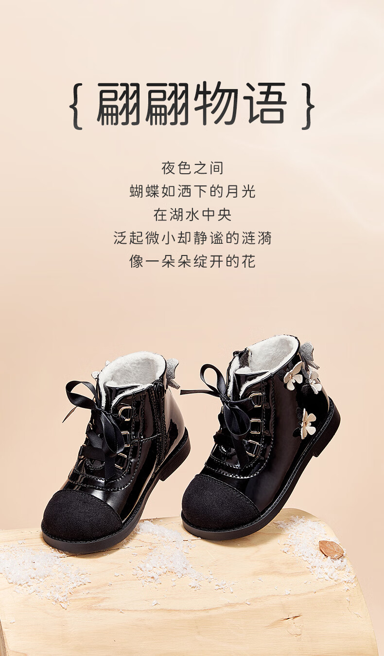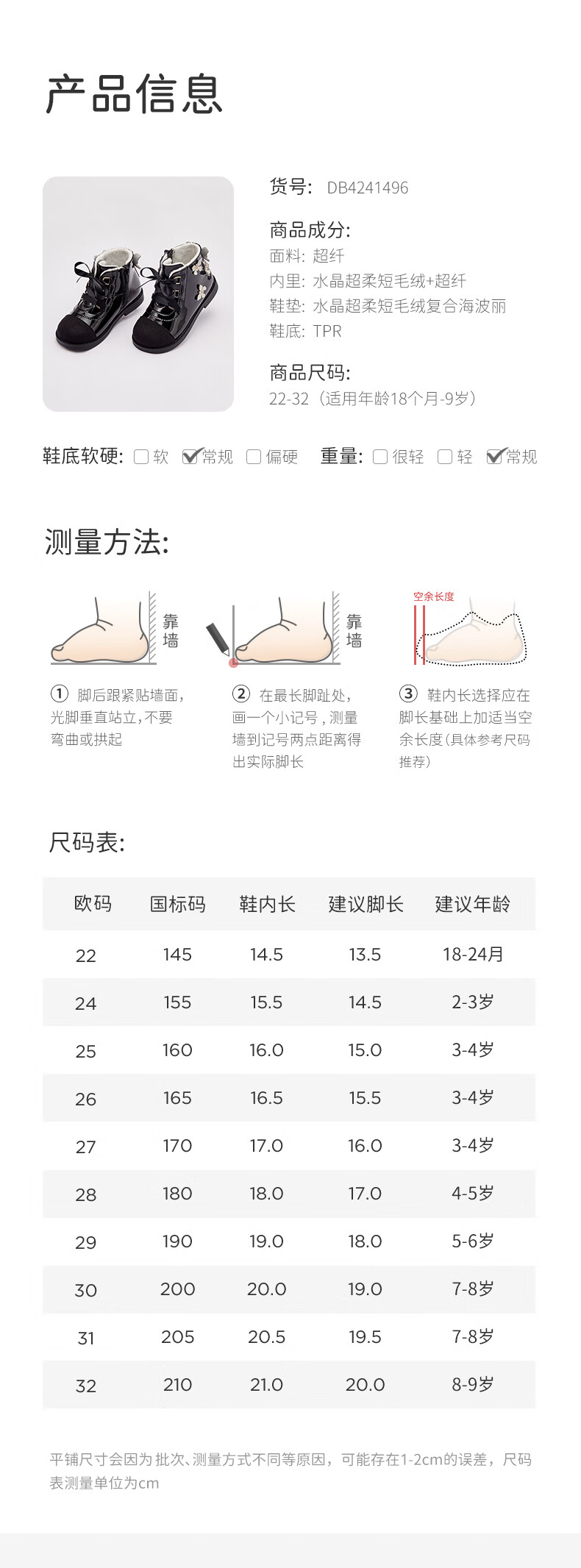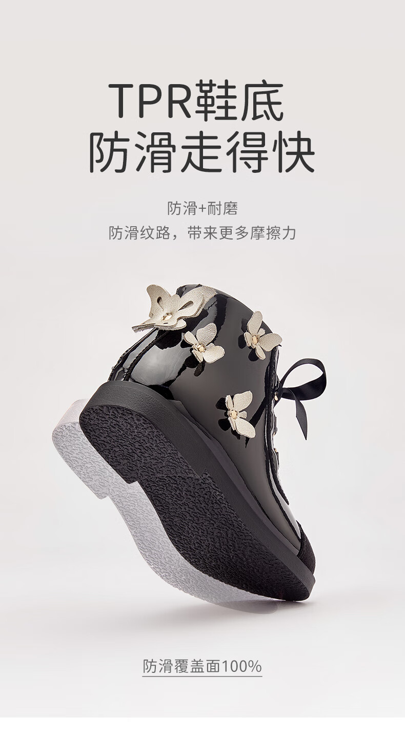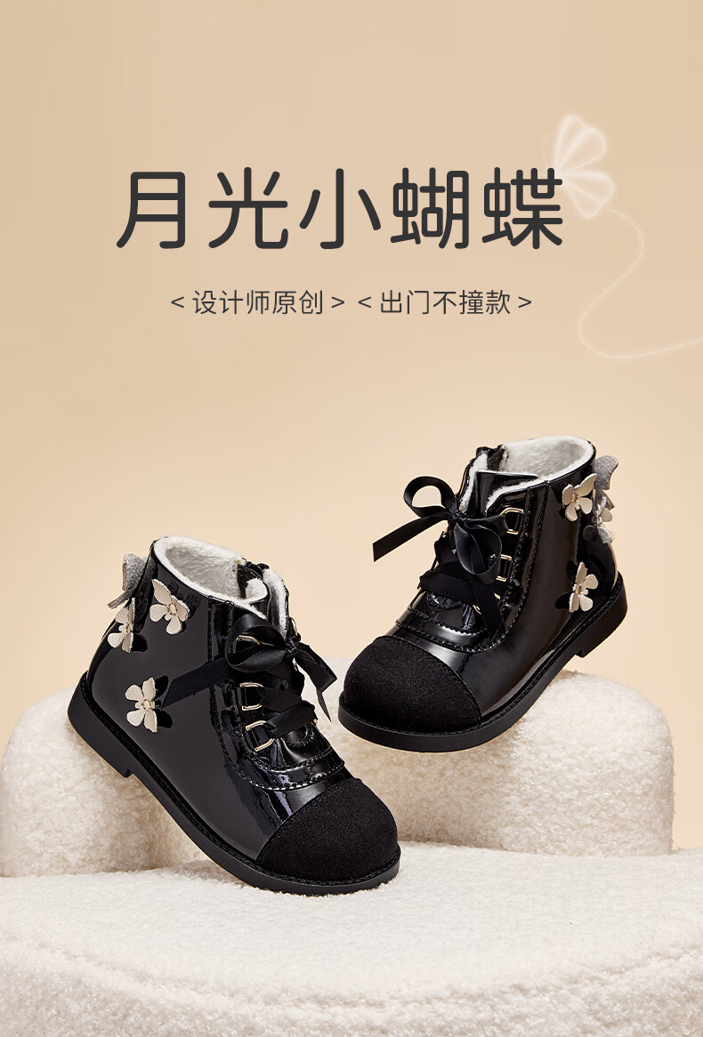 戴维贝拉(DAVE&BELLA)儿童马丁靴洋气女童靴子小童学步鞋加绒童鞋冬季新款宝宝休闲鞋 黑色【现货】 30码