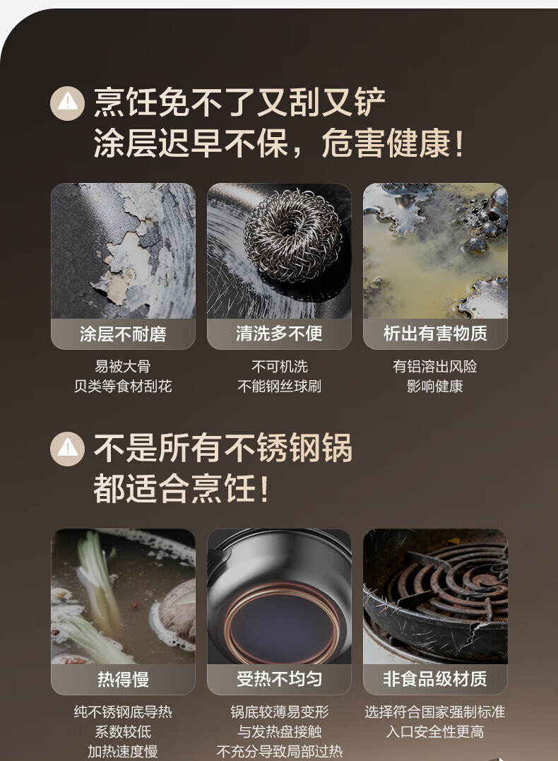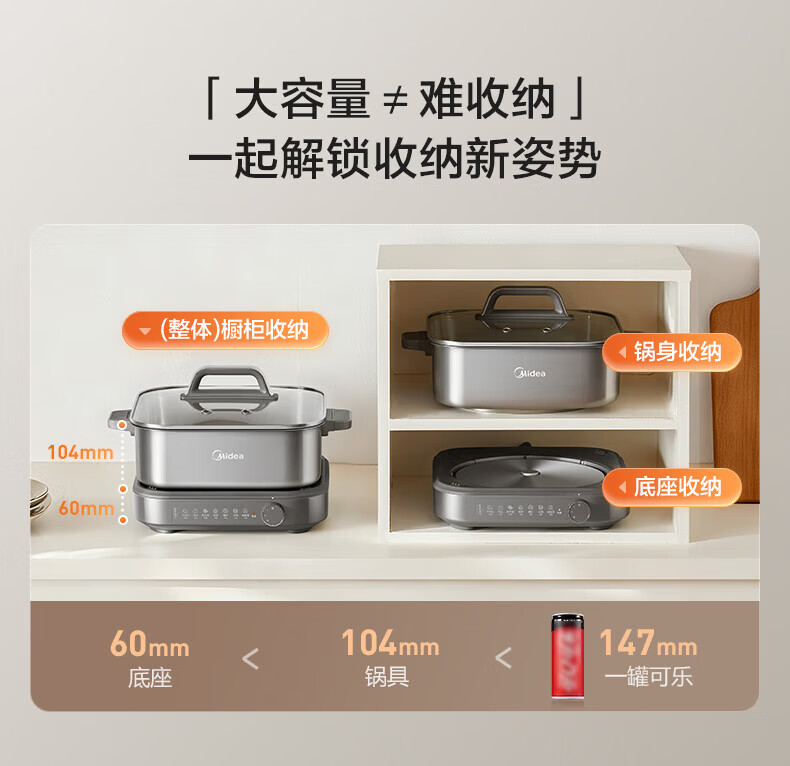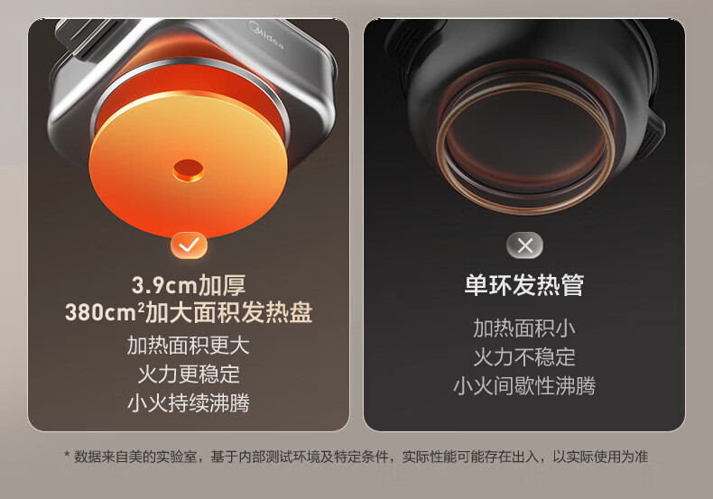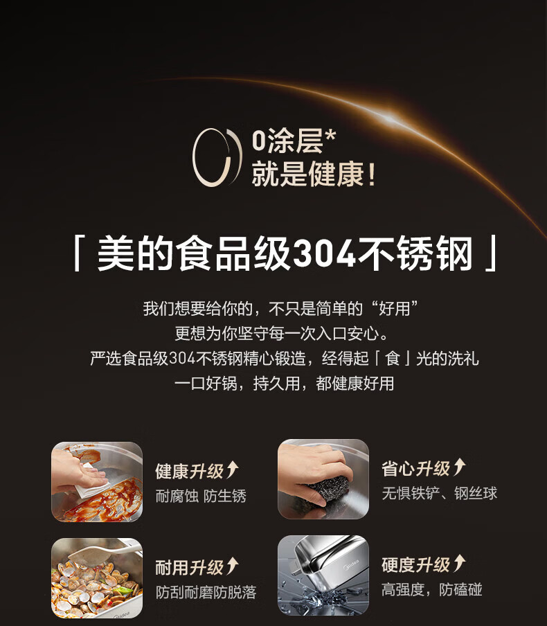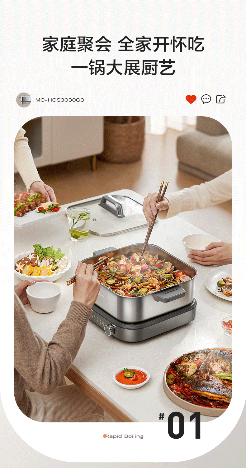 美的(Midea)0涂层电火锅电煮锅不锈钢速沸火锅专用锅分体可拆电热锅多功能锅7L多功能锅HGS3030G3