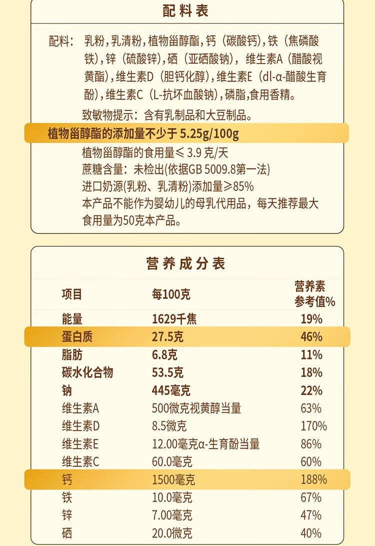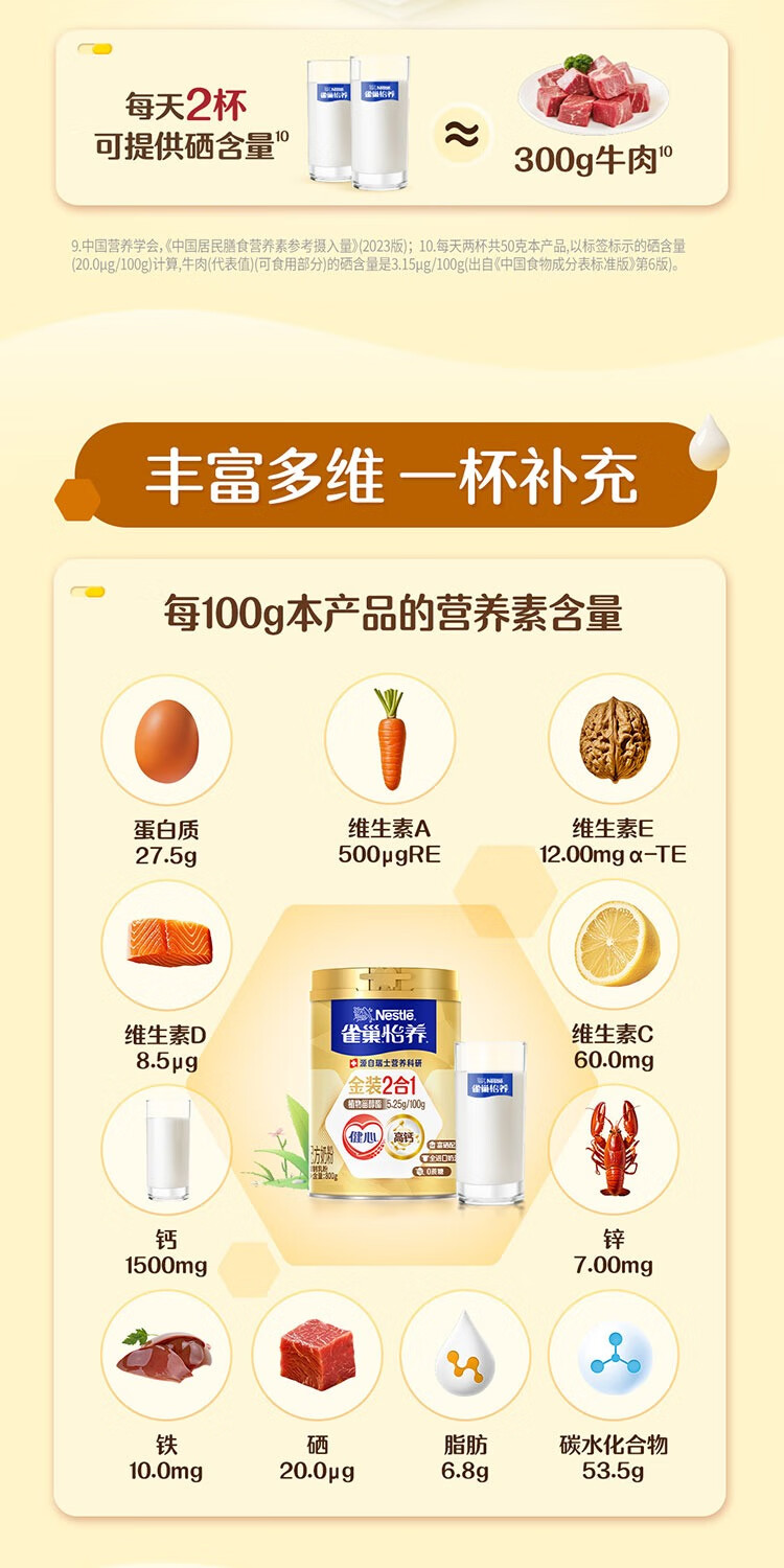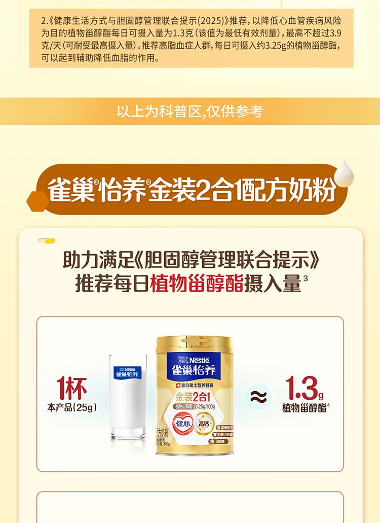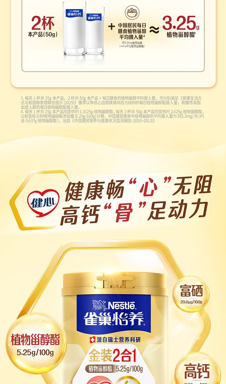雀巢(Nestle)【侯明昊推荐】怡养金装健心中老年低GI奶粉礼盒800g植物甾醇酯