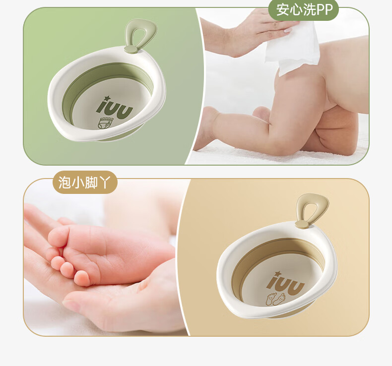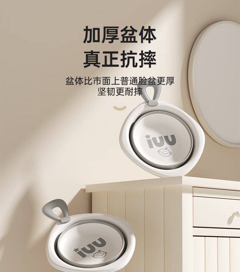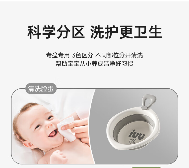 iuu 婴儿洗脸盆 新生儿宝宝洗屁股洗脚盆 儿童专用品可折叠小盆子 【三个装】加厚可折叠脸盆 材质:食品级PP原料+TPE软胶