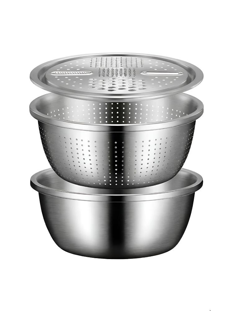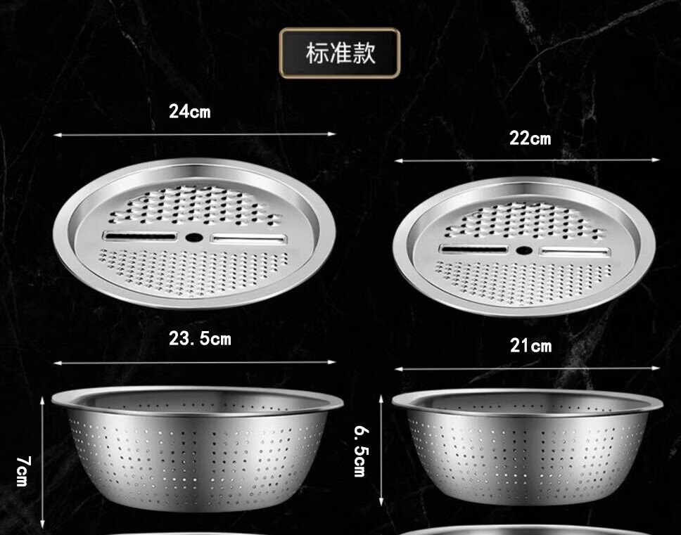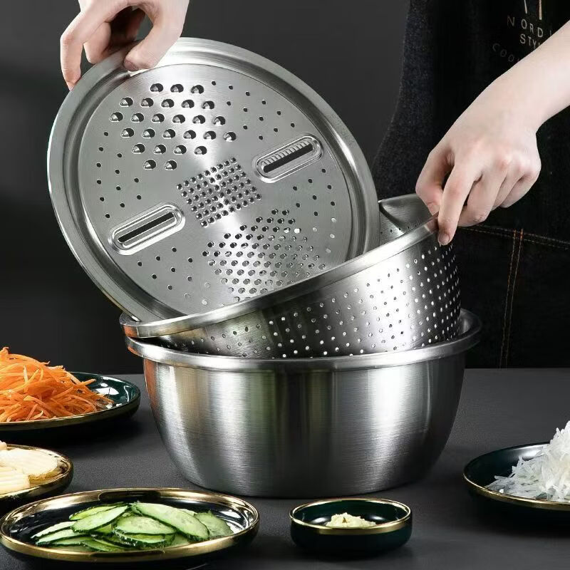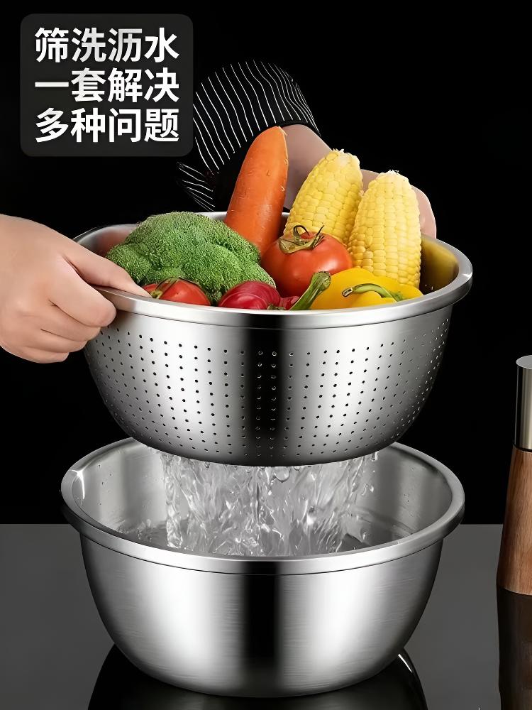 金汤银饺沥水篮厨房用品不锈钢洗菜盆三件套家用厨房用品沥水篮收纳盒 22cm刨丝盆