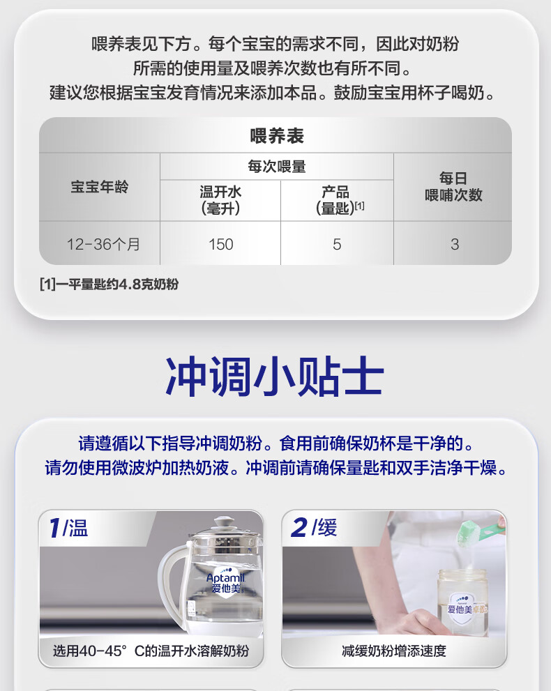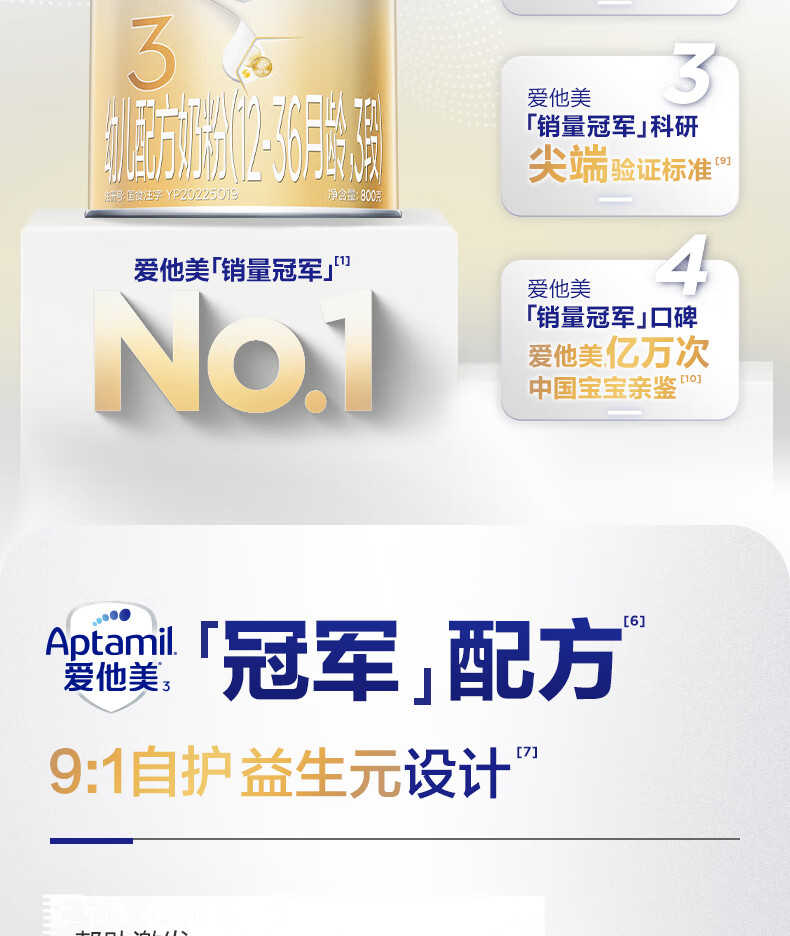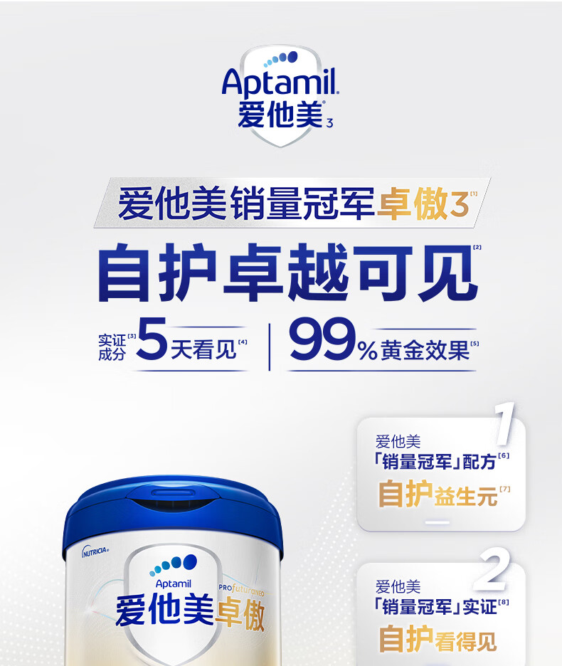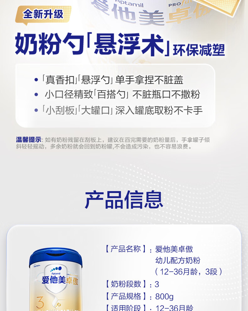 爱他美(Aptamil)卓傲3段幼儿配方奶粉(12—36月) 800g*3罐(0元入会)