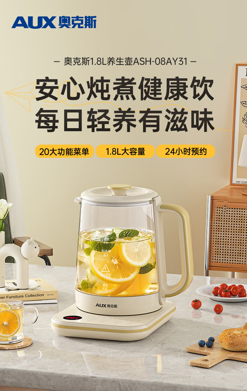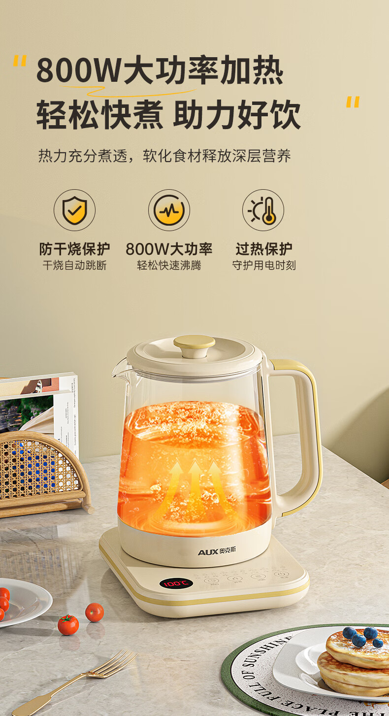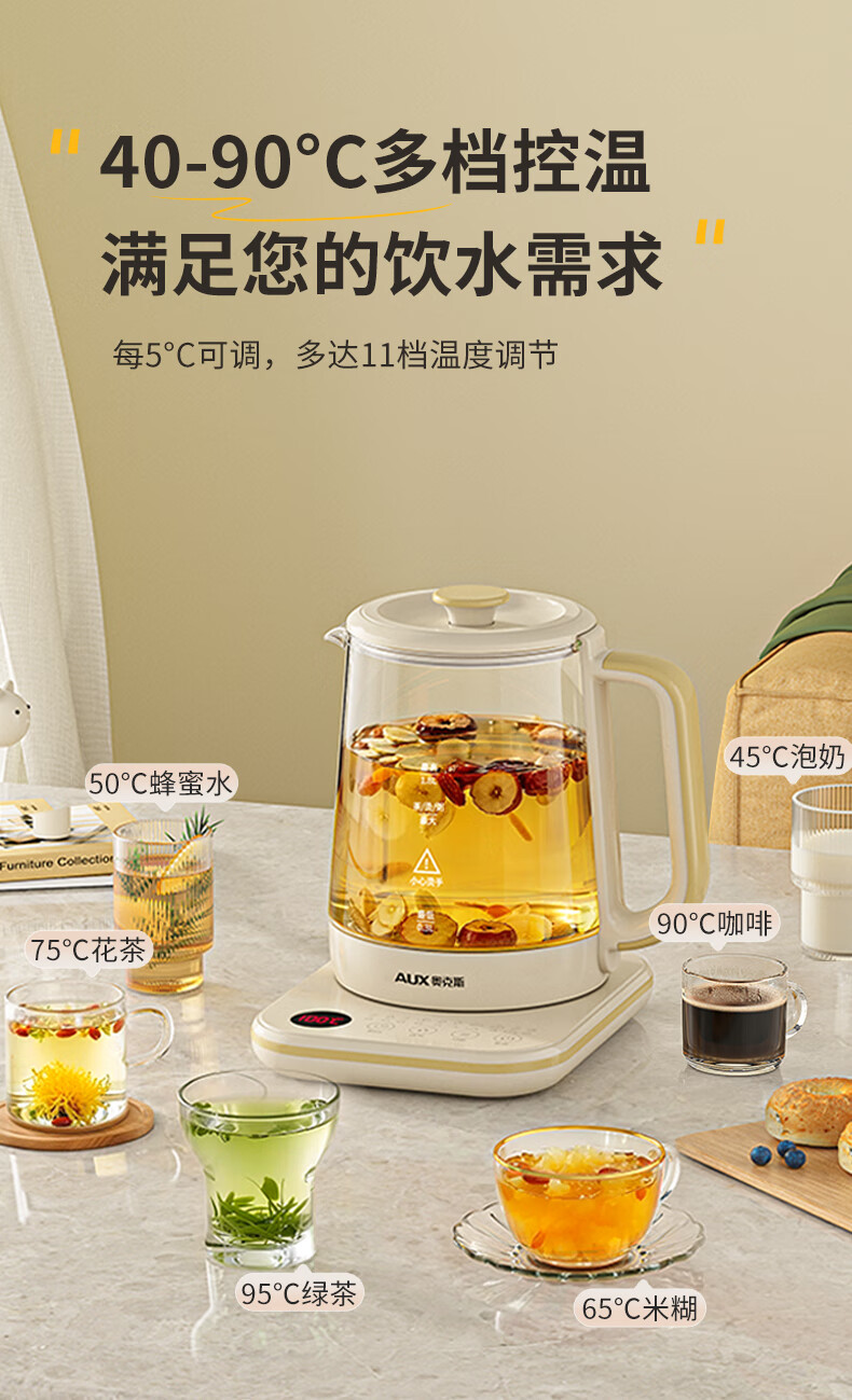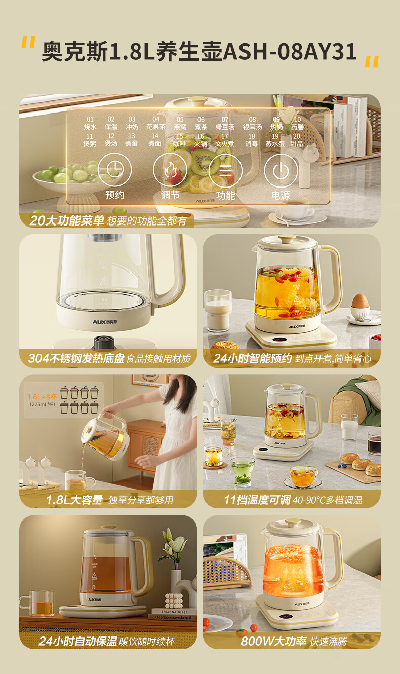 奥克斯(AUX)养生壶煮茶壶电热水壶开水壶恒温水壶保温智能电热水壶花茶壶烧水壶1.8L大容量ASH-08AY31