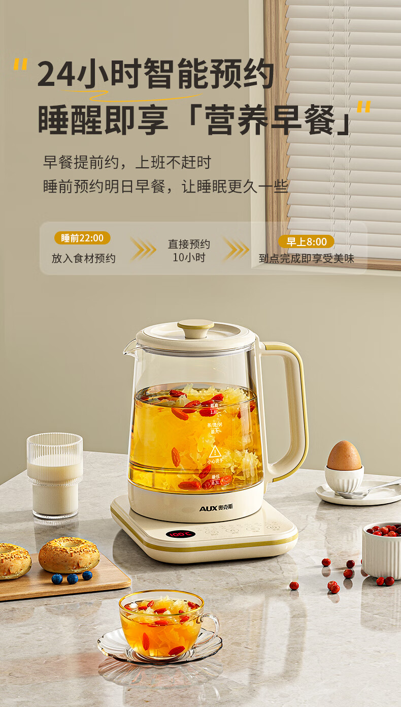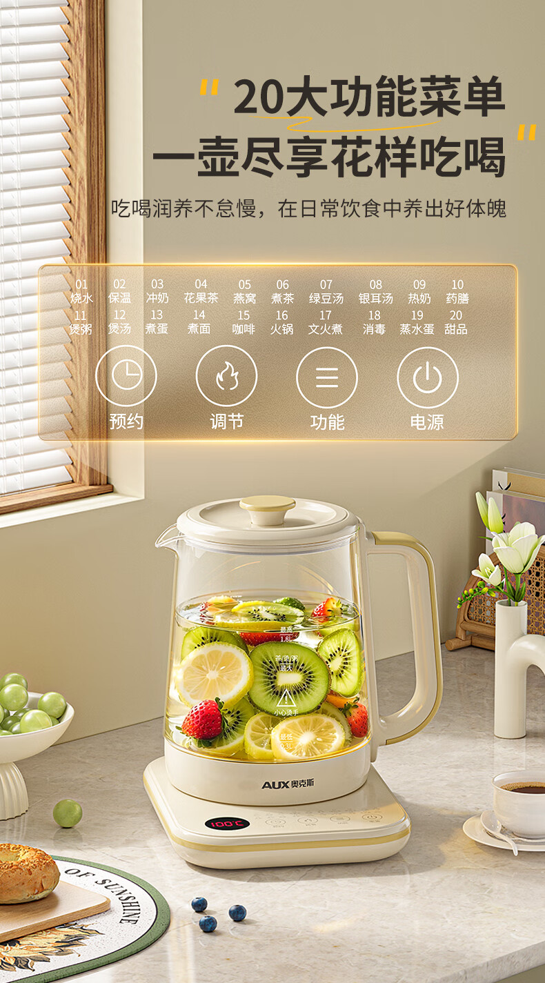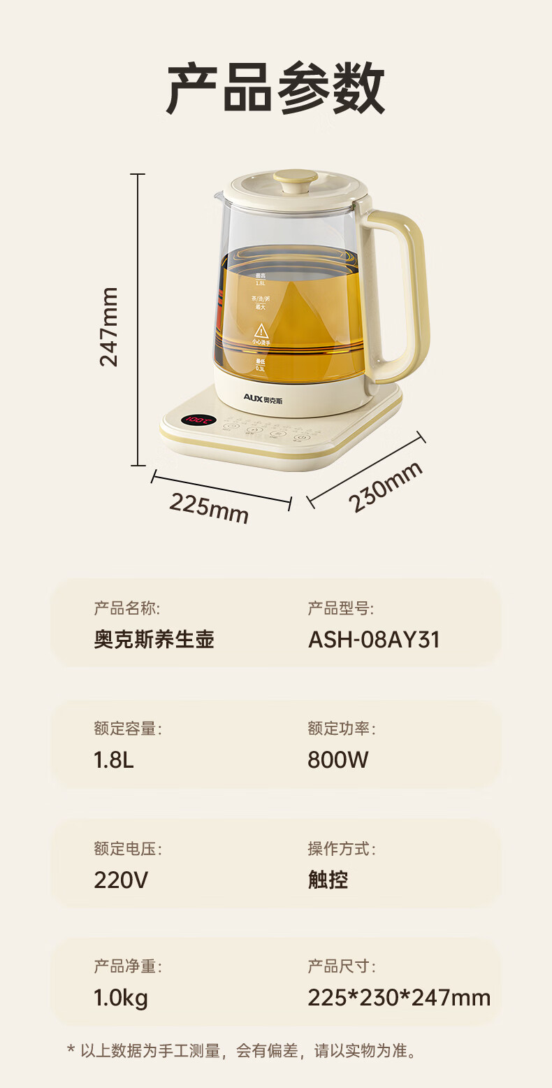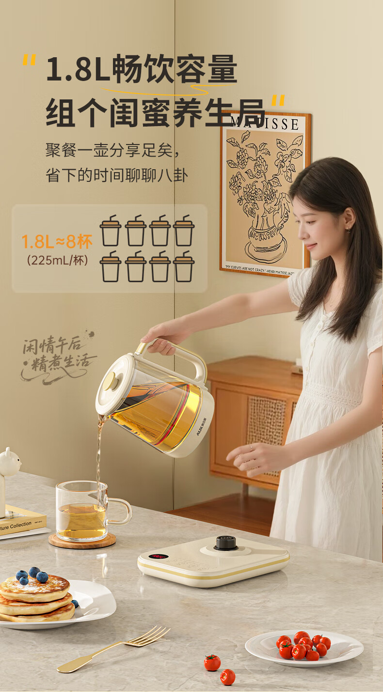 奥克斯(AUX)养生壶煮茶壶电热水壶开水壶恒温水壶保温智能电热水壶花茶壶烧水壶1.8L大容量ASH-08AY31