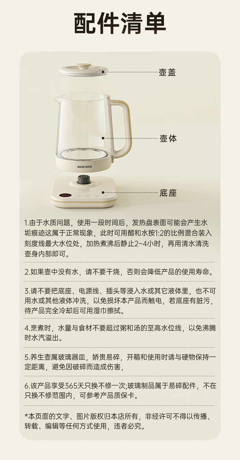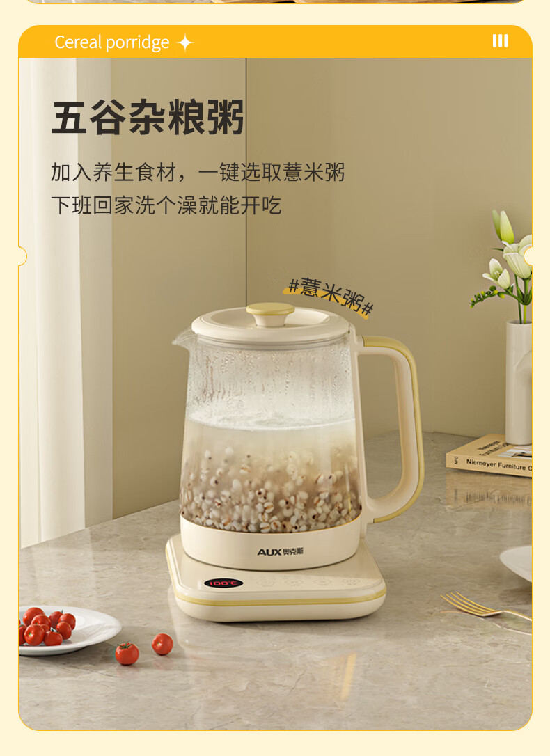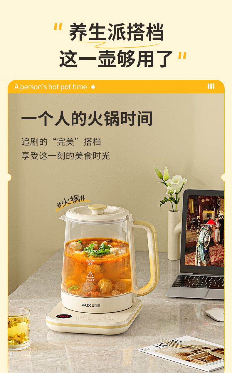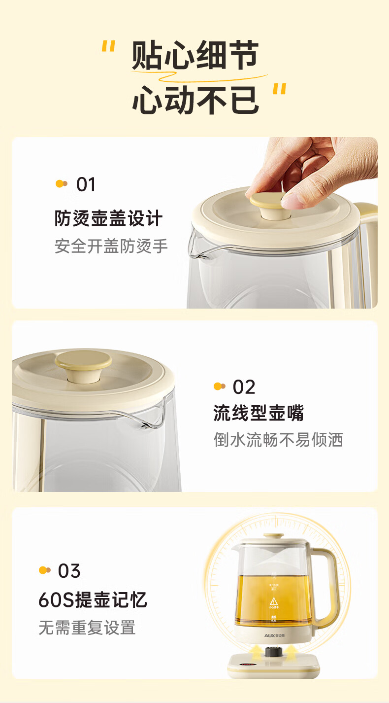 奥克斯(AUX)养生壶煮茶壶电热水壶开水壶恒温水壶保温智能电热水壶花茶壶烧水壶1.8L大容量ASH-08AY31
