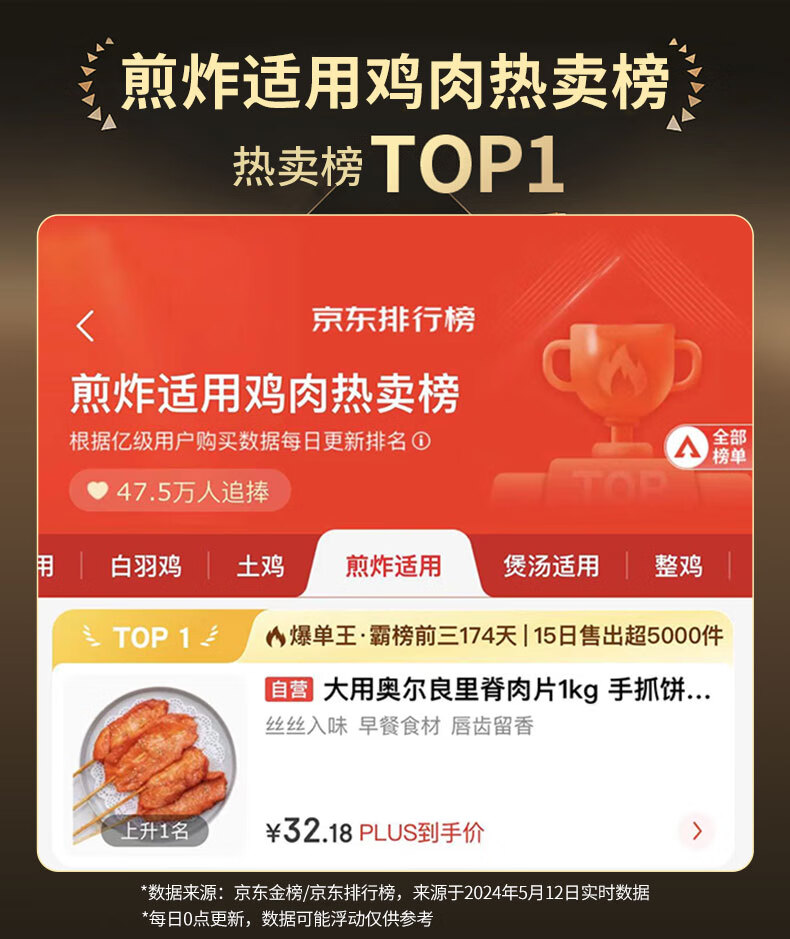 大用奥尔良里脊肉片2斤 手抓饼炸串 早餐食材 铁板里脊肉串烧烤年货节