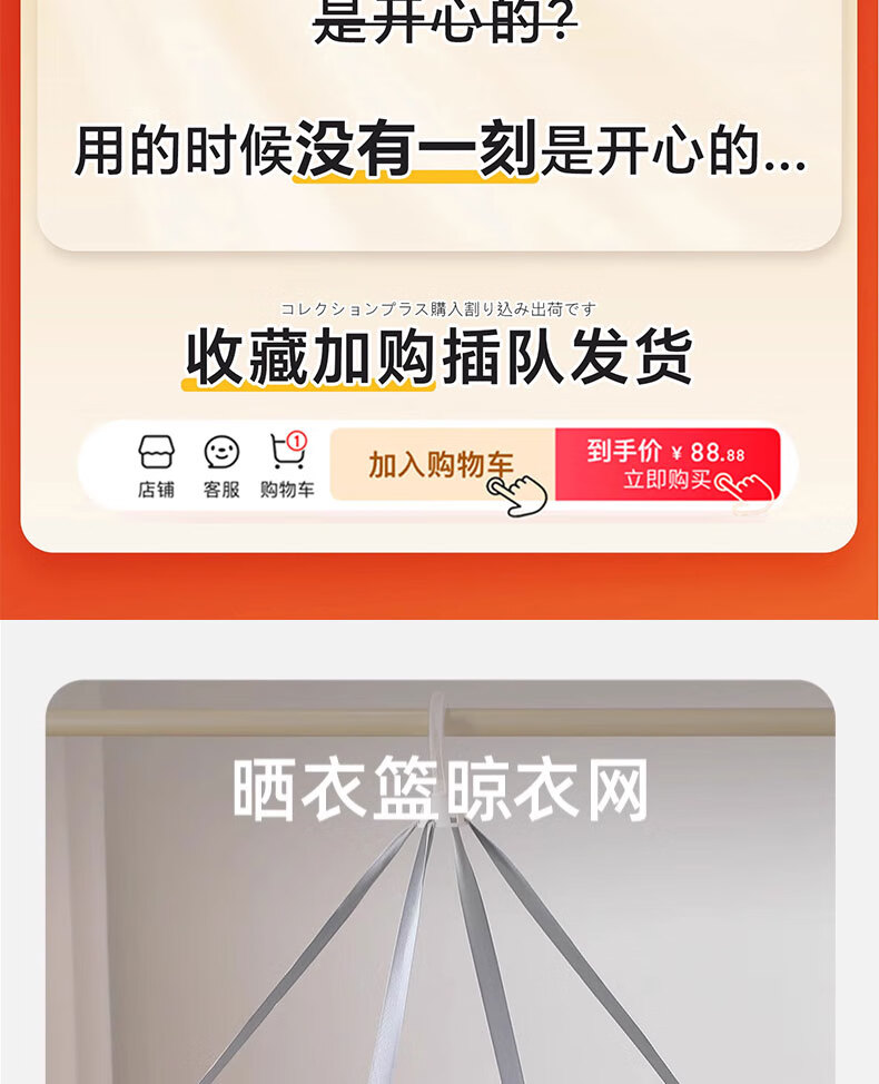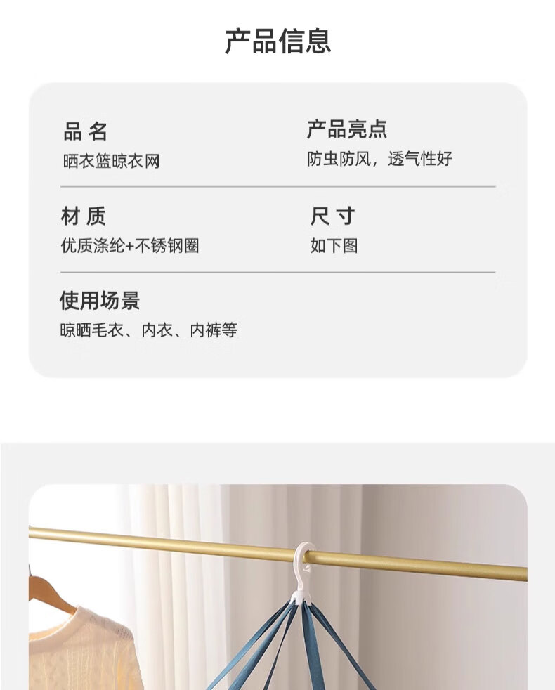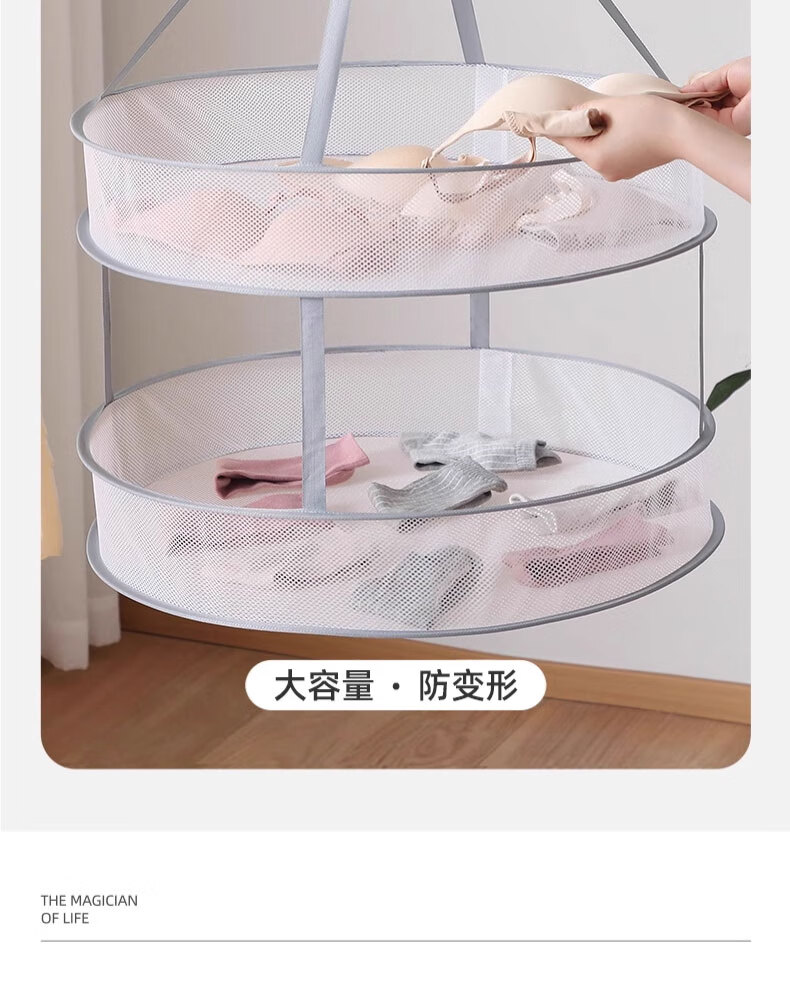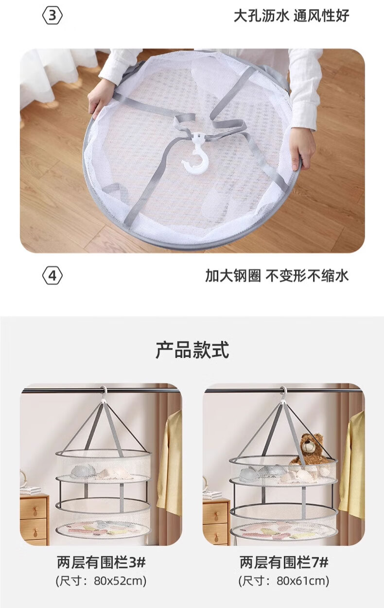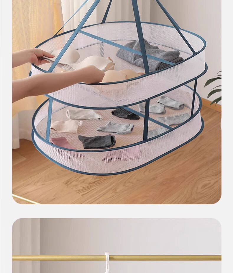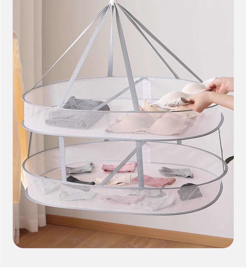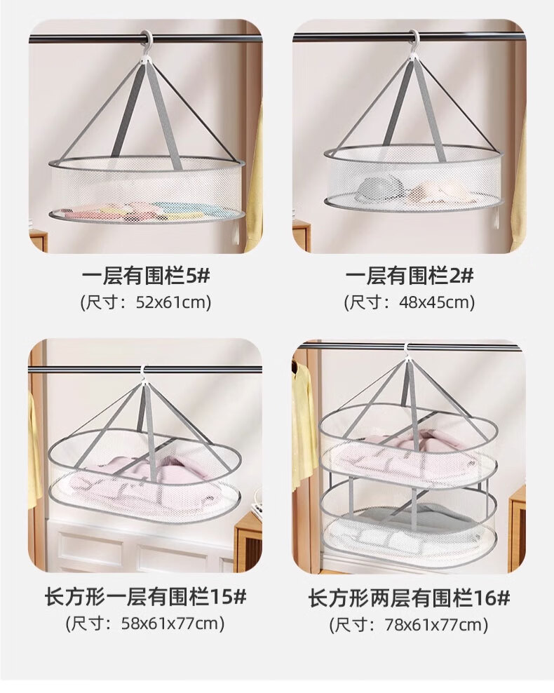 吱凡日本羊毛衫平铺晾衣架毛衣晾晒神器专用折叠挂篮晾晒网兜收纳袋 【大号-双层】61cm【防风-快速晾干】