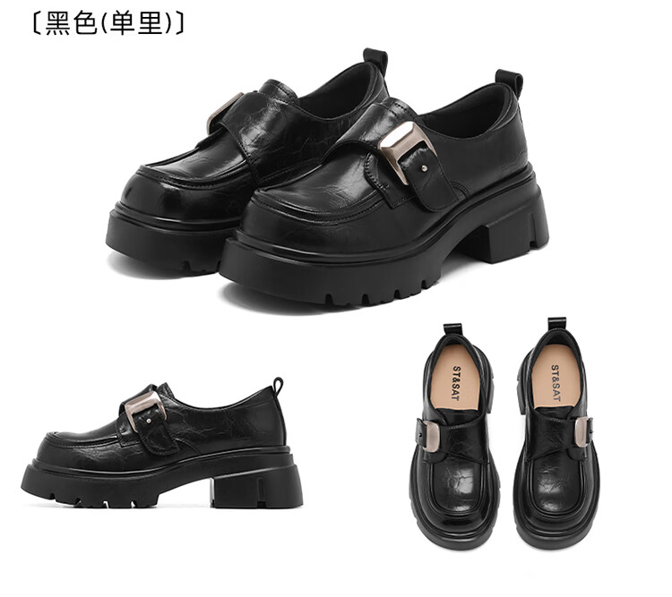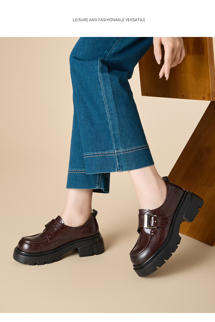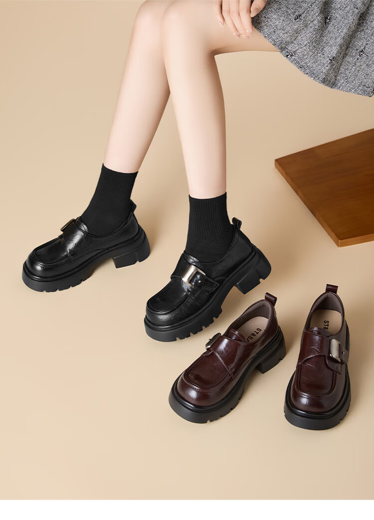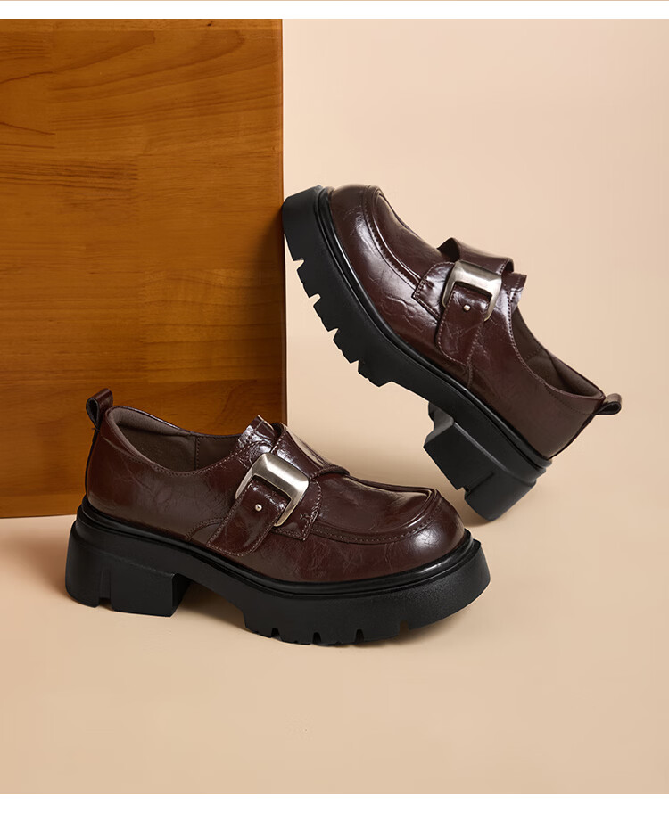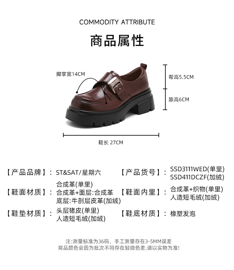 星期六加绒乐福鞋女2025冬季新款黑色保暖英伦风小皮鞋毛毛棉鞋子 红棕色(加绒) 【冬季保暖】 35