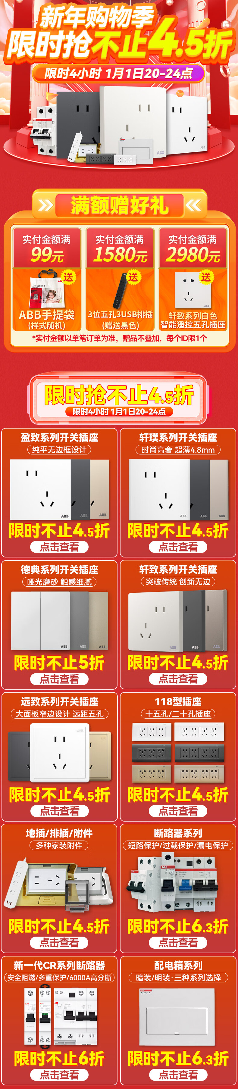 ABB开关插座面板 德典系列皓月灰 磨砂哑光奶油风 无边框 86型电源 斜五孔插座