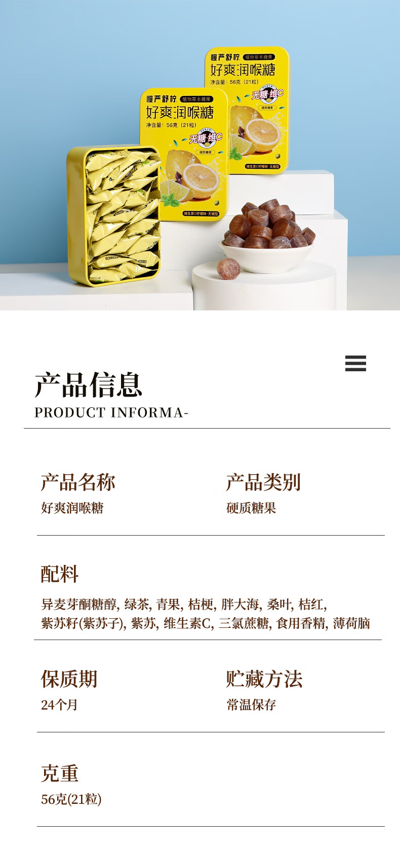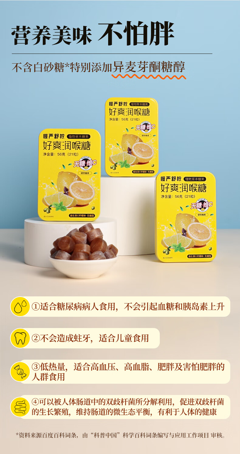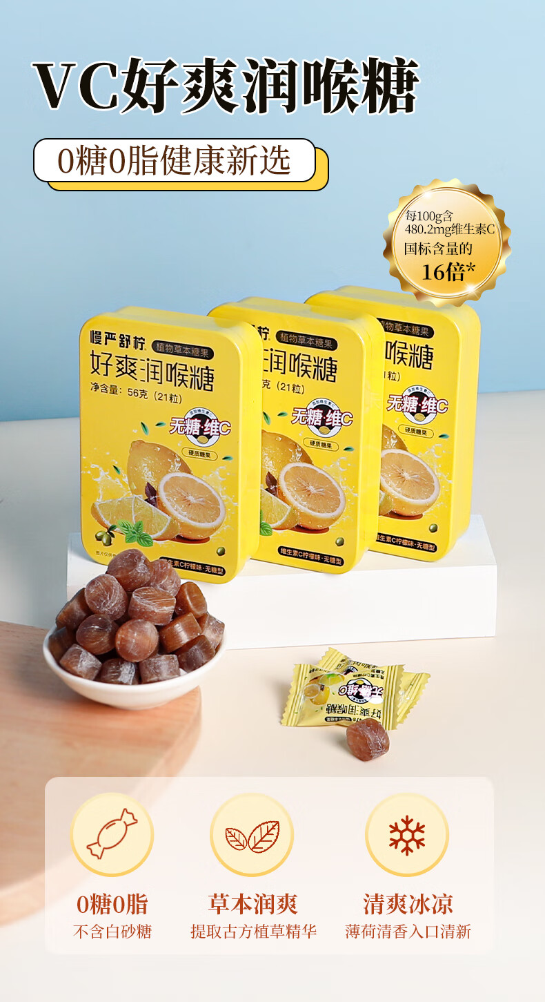 慢严舒柠润喉糖草本糖薄荷糖开学护嗓主播教师礼盒零食糖果 无糖VC润喉糖 56g*3盒