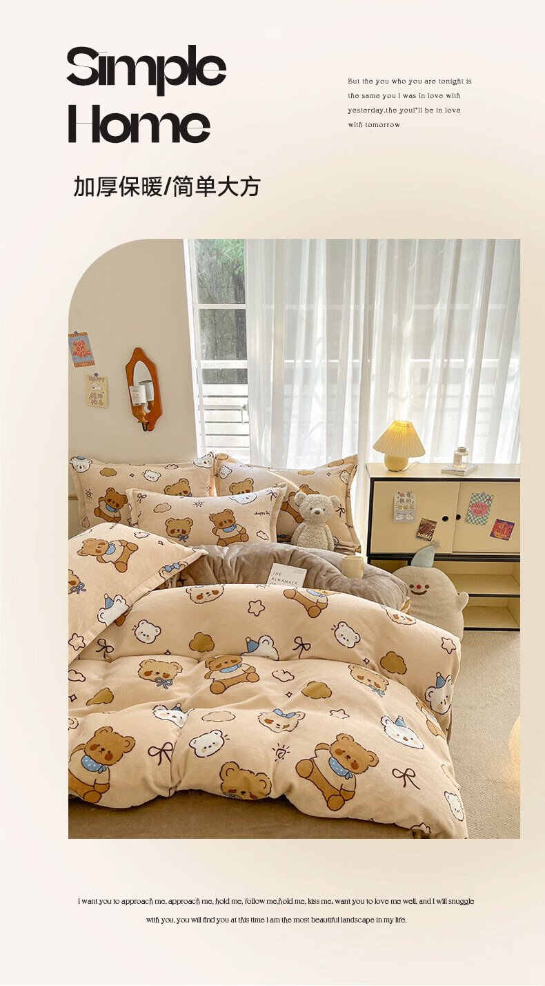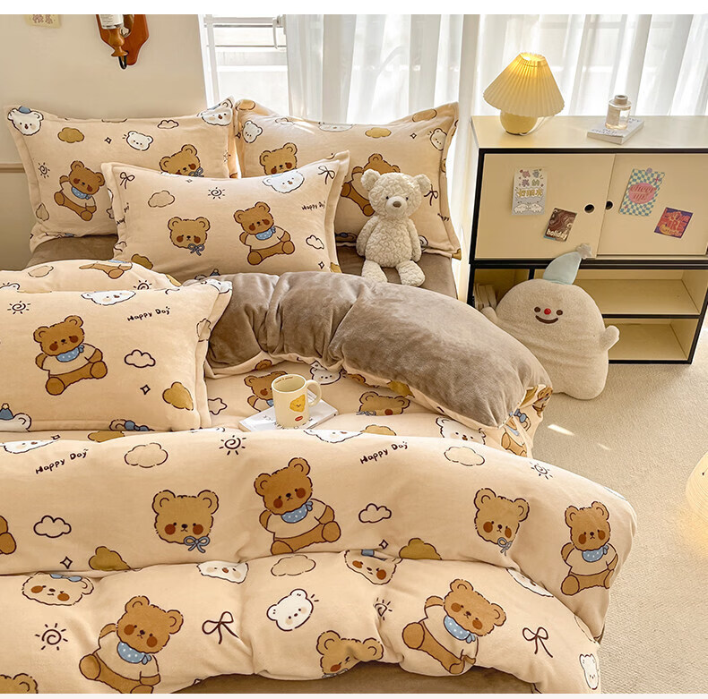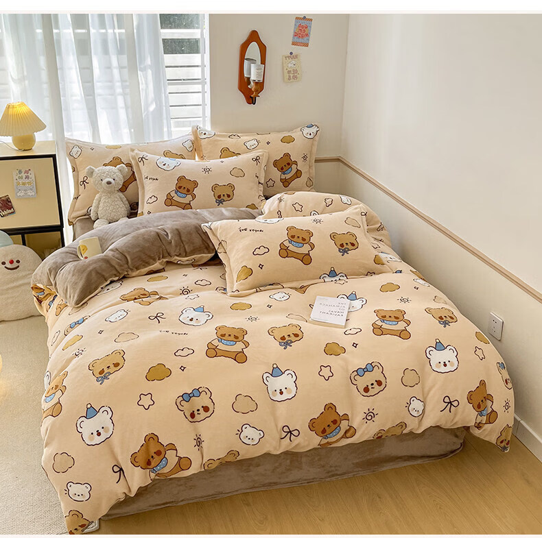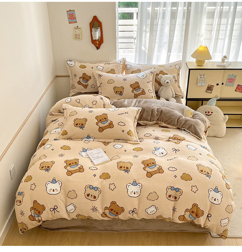猫人(MiiOW)冬季保暖牛奶绒床上四件套珊瑚绒卡通床单被套罩床品宿舍三件套 布朗尼熊【加厚牛奶绒丨亲肤保暖】 0.9m 床单款 三件套-150*200cm被套