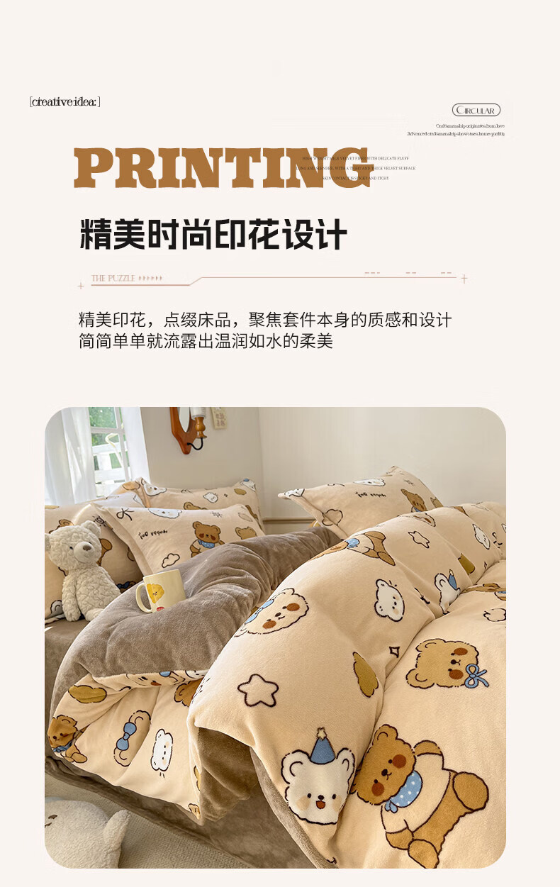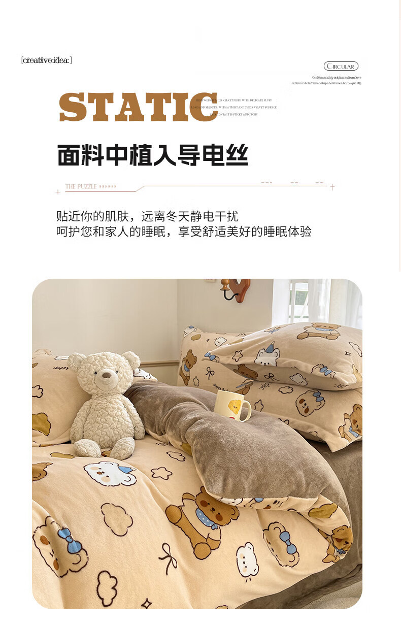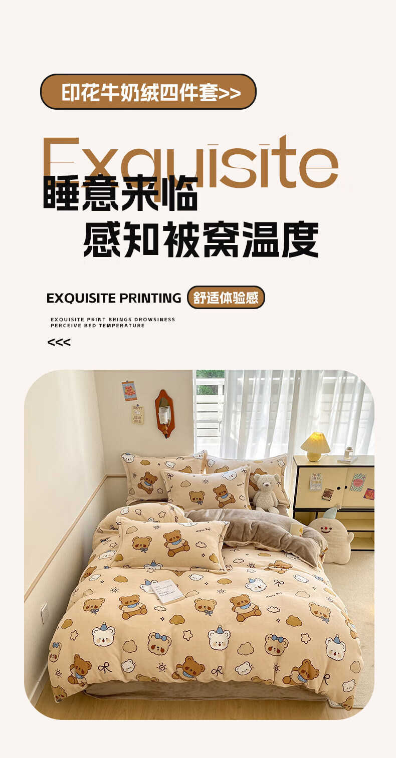 猫人(MiiOW)冬季保暖牛奶绒床上四件套珊瑚绒卡通床单被套罩床品宿舍三件套 布朗尼熊【加厚牛奶绒丨亲肤保暖】 0.9m 床单款 三件套-150*200cm被套