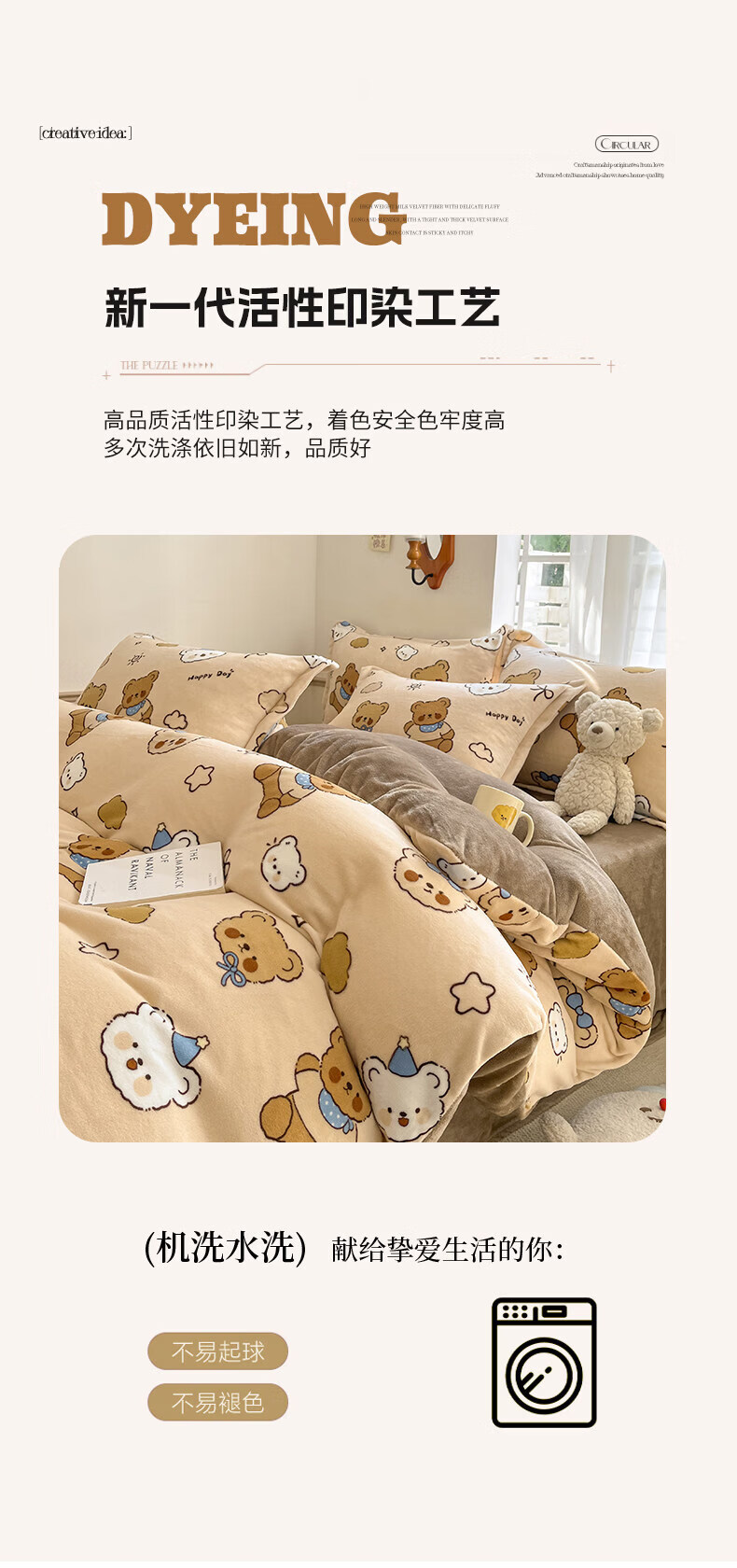 VJE水洗棉床单四件套2025新款四季通用被罩被套卡通三件套床上用品4 奶茶-海盐冰蓝 【三件套】1.2m 床单款 -被套150*200cm